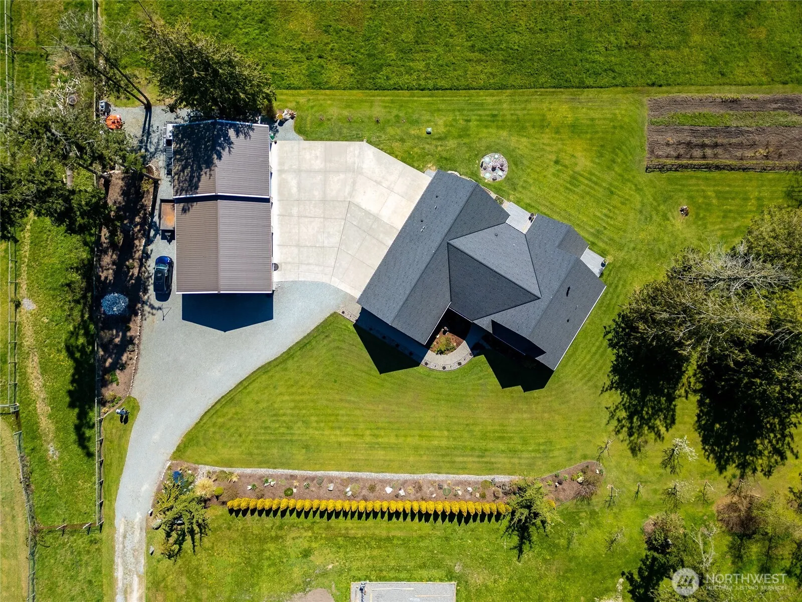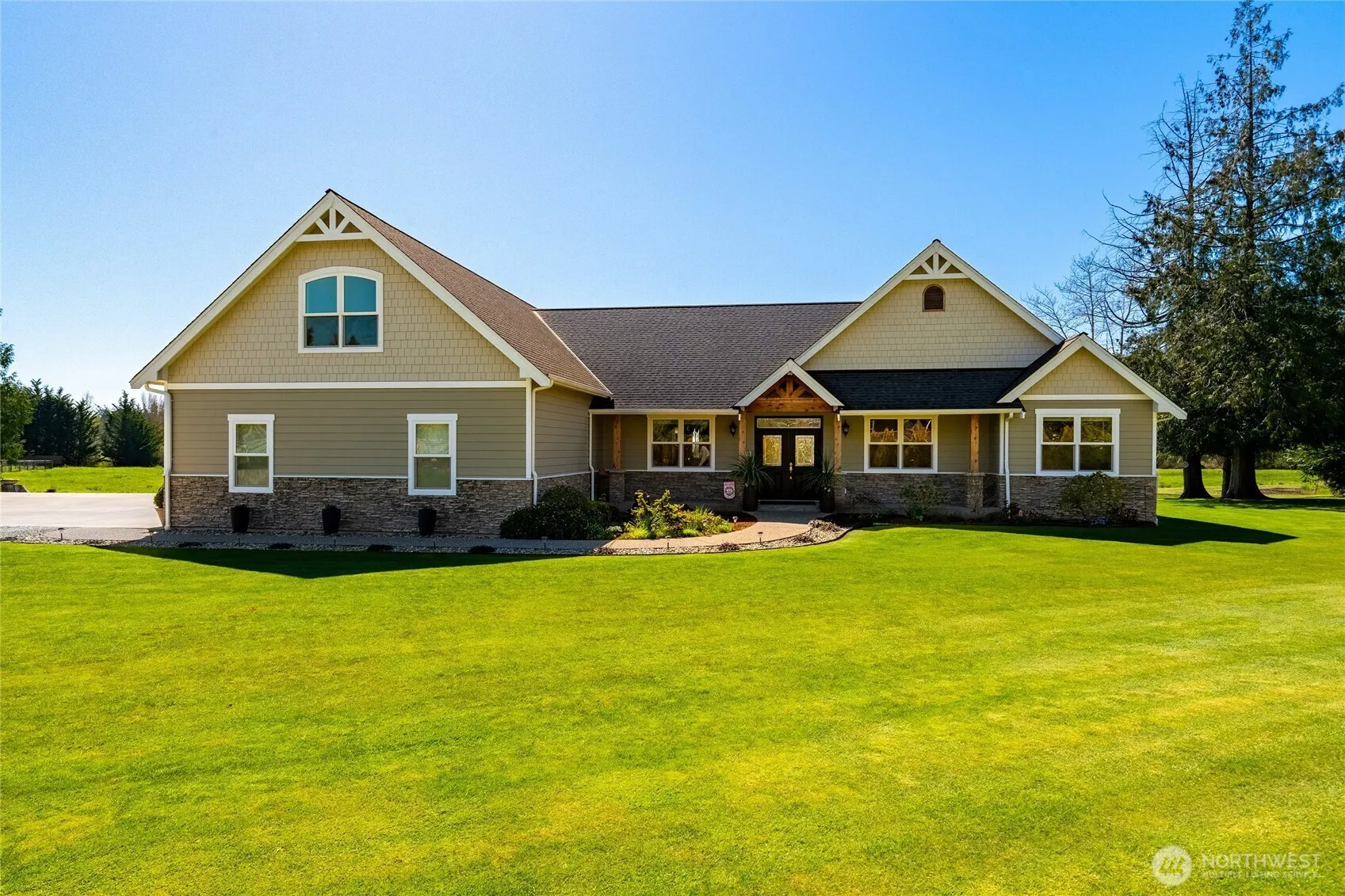Set on 2.57 acres in a rural setting, this exceptional property blends refined living with everyday functionality. Thoughtfully designed with high-end finishes throughout, the home features an open-concept layout that seamlessly connects the kitchen, dining, and living areas—perfect for entertaining & comfortable daily living. Large windows invite in natural light & showcase the surrounding landscape, while premium materials & craftsmanship elevate every space. The well-appointed kitchen offers upscale appliances, quality cabinetry, and generous workspace for any culinary enthusiast. Main level primary suite includes soaking tub with bubbles, ADA walk in shower, double sink plus 2 walk in closets. 2 guest bedrooms plus full bath on opposite end of home for privacy. Office off front door with glass french doors & built in desk area. Upstairs two bonus rooms for storage, rec room etc. Outside, the property truly shines, enjoy wide-open space with room to roam, complemented by a substantial shop ideal for hobbies, storage, plumbed & area framed for bathroom if you wish to finish or add an ADU inside the shop. Dedicated RV parking provides convenience for travel enthusiasts along with onsite dump to septic The acreage offers endless possibilities for gardening, or simply enjoying the privacy and quiet of country living. This is a rare opportunity to own a home that combines luxury, versatility, and the freedom of rural life.