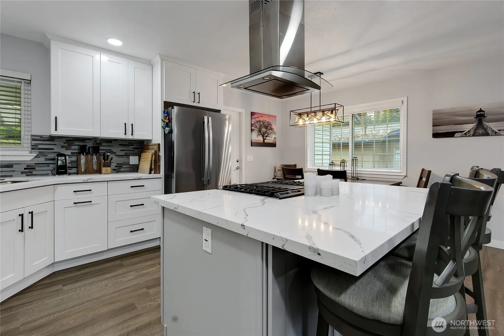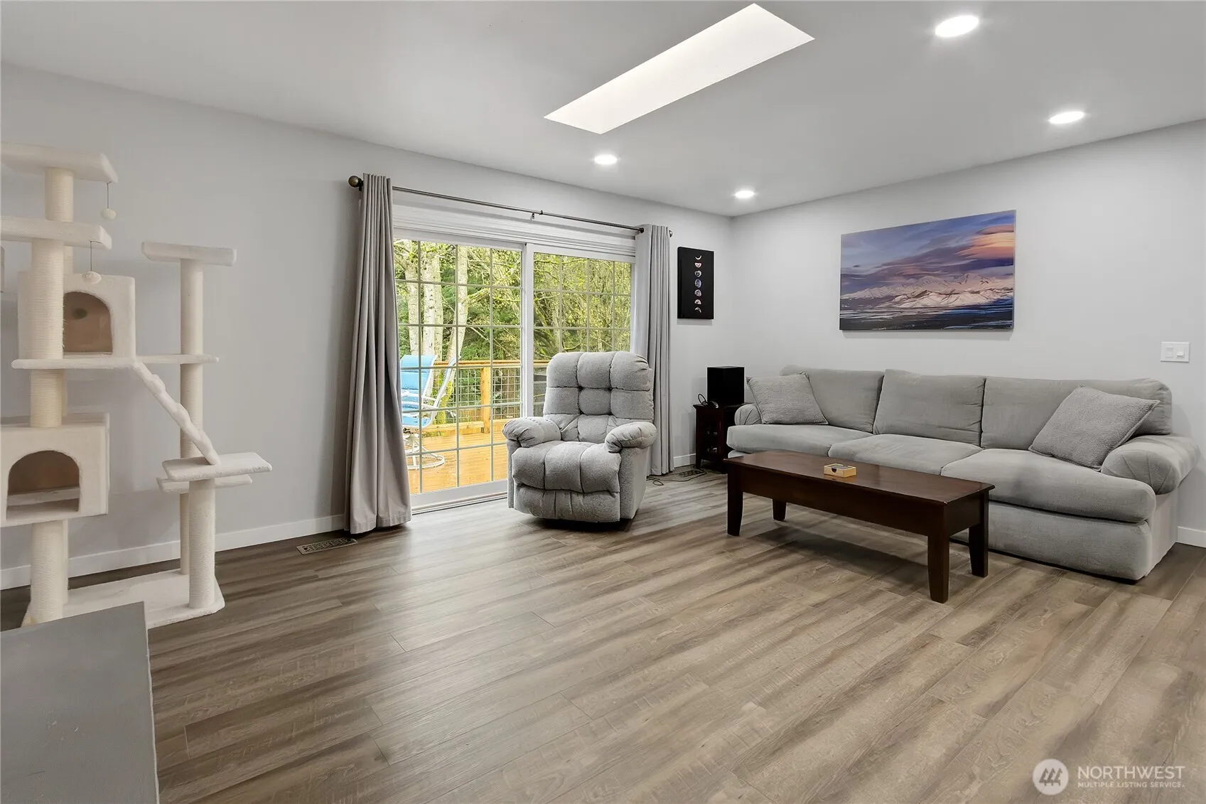 Don’t let first impressions fool you—this spacious 4-bedroom, 2.25-bath rambler with a finished basement offers around 2,200 square feet of flexible living space, perfect for a variety of needs. Situated on a corner lot with mature landscaping and a fully fenced backyard, the home provides both privacy and convenient access to freeways, shopping, and schools. This home features numerous upgrades throughout. The open-concept, gourmet-sized kitchen is perfect for entertaining–allowing you to cook while staying connected with guests. Enjoy stainless steel appliances, updated countertops, backsplash, flooring, and fresh interior paint. Charming farmhouse-style all-wood cabinetry, updated lighting, and wood-wrapped windows add warmth and character. Natural light fills the home thanks to skylights, creating a bright & inviting atmosphere. The finished basement offers excellent potential for an ADU or MIL setup, ideal for multi-generational living or additional income opportunities. Step outside to a low-maintenance deck with durable Trex-style decking-no painting required. With its smart layout and generous space, this home delivers a big-home feel in a comfortable, manageable footprint. This home also comes with free access rights to Mirror Lake, which is stocked with fish and is great for kayaks and other non gas powered water craft, and there is a dog park nearby!