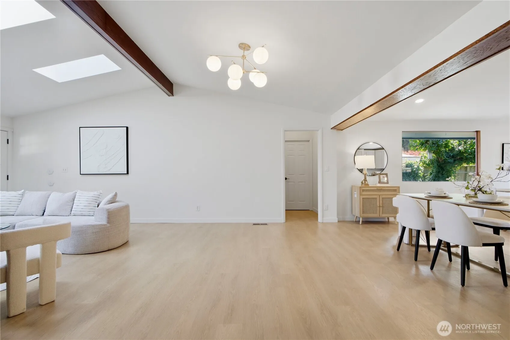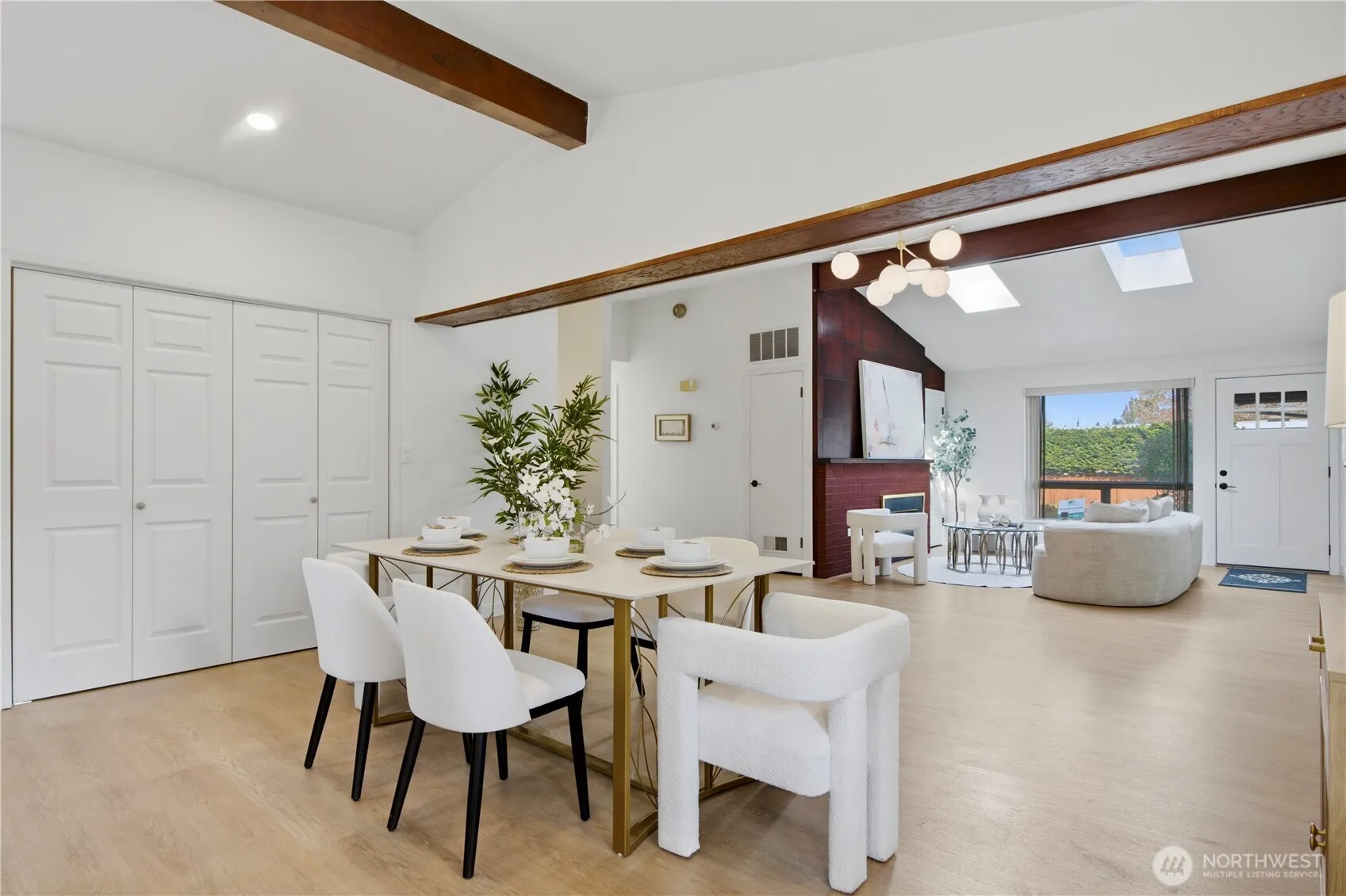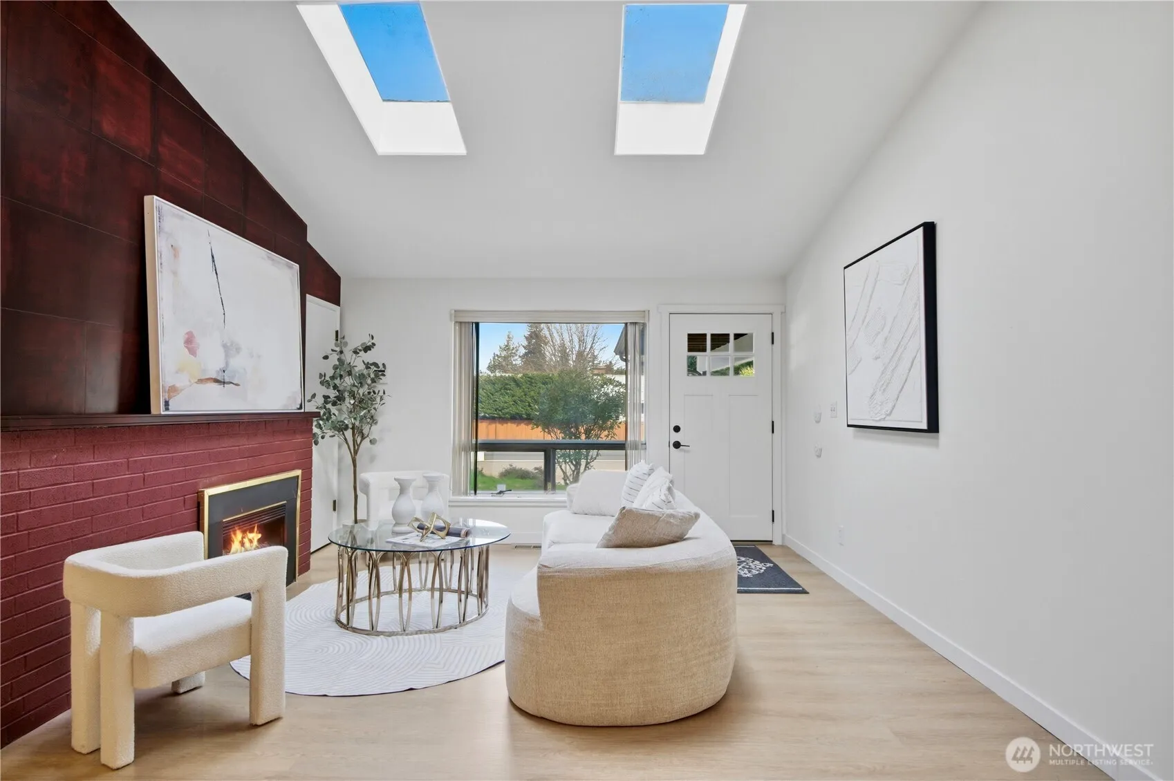 Turnkey one-level bungalow on a huge, flat lot in the heart of Shoreline, offering comfort and endless potential. Fully remodeled with designer finishes, this 3-bedroom home features a sunlit, vaulted living room with skylights and cozy gas fireplace. The open-concept kitchen shines with sleek quartz countertops, new stainless steel appliances, and flows into a bright, spacious dining area. The generous primary bedroom includes a sitting area and overlooks the backyard, while two additional bedrooms are very spacious and provide flexibility for guests or a home office. Tons of storage. Everything is new: interior and exterior paint, flooring, bathrooms, roof, crawlspace, appliances, and lighting. South-facing provides all-day sunshine. Outside, enjoy a fully fenced, pancake-flat lot with patio, lawn, and BBQ area. Carport accommodates RV parking. Excellent potential for an ADU or future expansion. Conveniently located near I-5, light rail, Costco, shopping, parks, and transit—an exceptional opportunity in Shoreline.