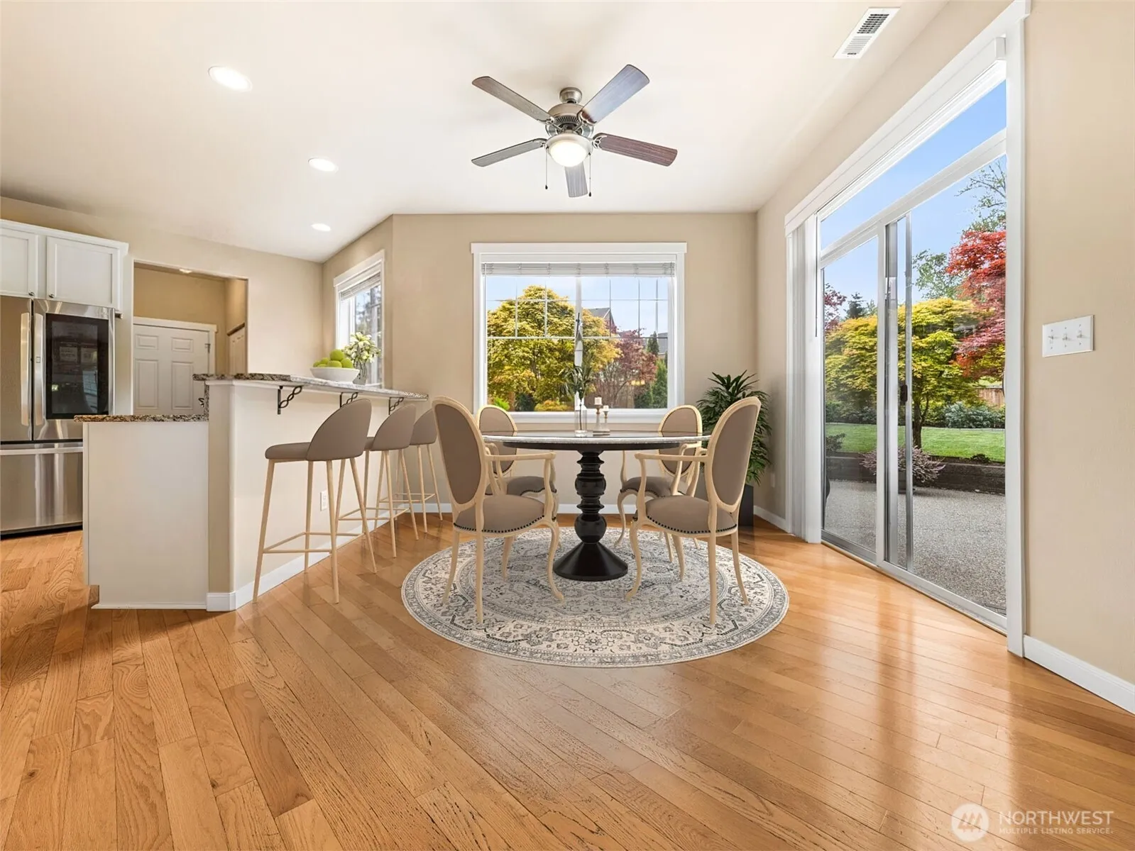Welcome to this beautifully maintained home, proudly owned and cared for by its original owners since built in 2012. Offering over 2,400 sq ft with 3 bedrooms and 2.5 baths, this home combines thoughtful design with everyday comfort. Custom features throughout set this home apart, including an inviting staircase, rich hardwood floors on the main level, and a well-appointed kitchen with granite countertops, 6″ backsplash, and ideal 30″ counter height. A custom mudroom door provides convenient access to the backyard, enhancing both function and flow. Step outside to a beautifully landscaped yard designed for peace and privacy, complete with a sprinkler system in both the front and back creating a serene setting that naturally attracts birds and wildlife. Recent updates including newer appliances, water heater, and A/C add comfort and peace of mind. Located with easy access to commuting options, including Federal Way’s recently expanded light rail offering service north through Seattle to Lynnwood, making travel throughout the region more convenient than ever. A rare opportunity to own a home where quality, care, and thoughtful upgrades truly shine!