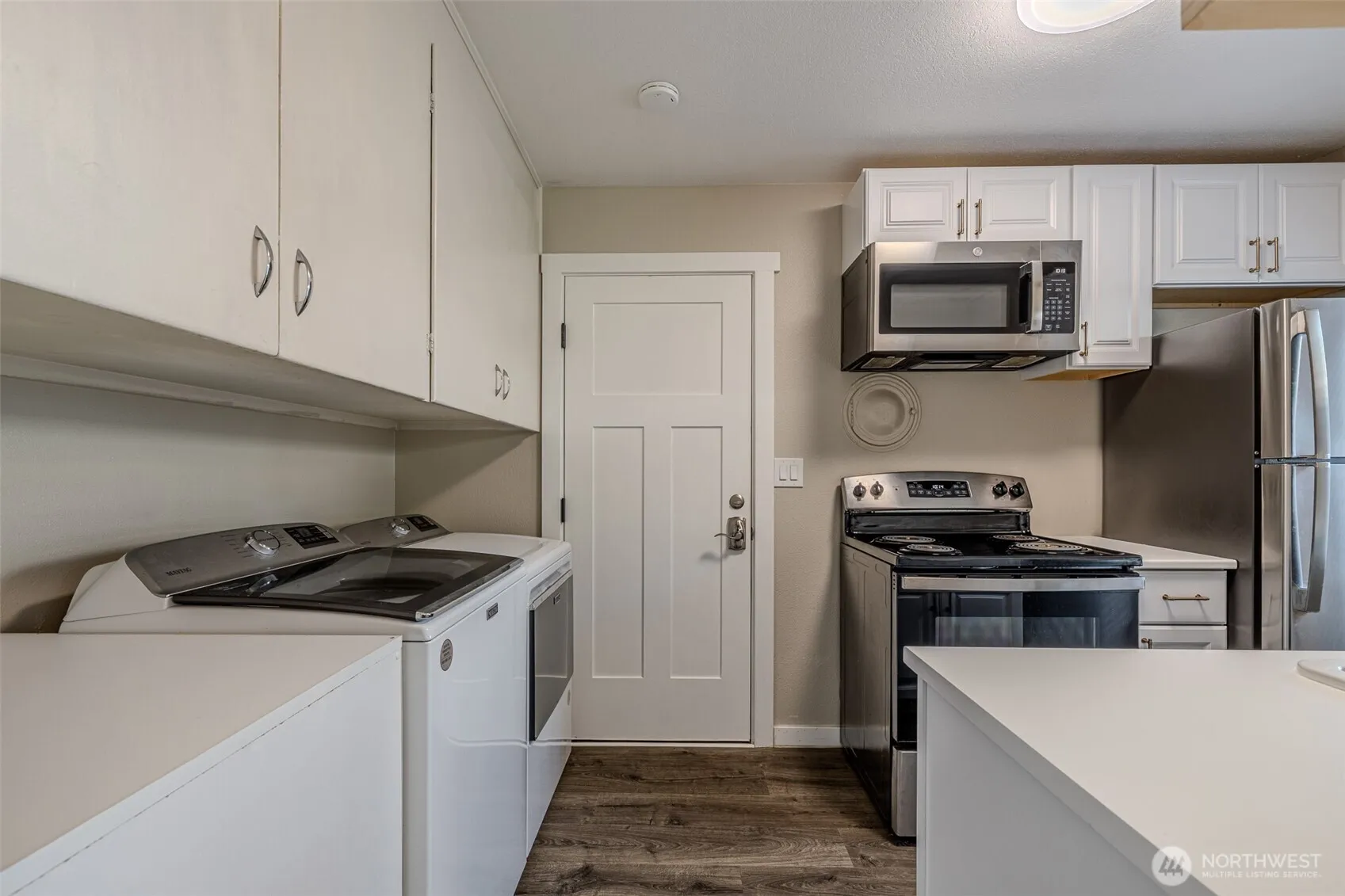 Lucky you—one tenant is open to vacating, giving you the option to owner-occupy or keep both units as income-producing rentals. This one-level duplex (2 bed, 1 bath each side) in a quiet neighborhood features central A/C, LVP flooring, and fully fenced backyards with sprinklers and low-maintenance landscaping -plus Saddle Rock views. The private 2-car carport is vacant and ready for YOU to use immediately or also rent for more income. One unit rents for $1,850 and the other for $1,950, with landlord covering water/sewer ($126/month). Smart home features include keypad entry and Google Nest thermostats. No HOA. Pre-inspected! Seller is a licensed real estate broker in Washington. ¡Qué suerte! Un inquilino está dispuesto a desalojar, dándote la opción de vivir en la propiedad o mantener ambas unidades como inversión. Este dúplex de un nivel (2 cuartos, 1 baño por lado) en un vecindario tranquilo cuenta con A/C central, pisos LVP, y patios cercados con riego y jardinería de bajo mantenimiento -más vistas a Saddle Rock. El carport privado para 2 autos está disponible para TU uso inmediatamente o también para rentar. Una unidad se renta en $1,850 y la otra en $1,950, con el propietario cubriendo agua y drenaje ($126/mes). Incluye entrada con teclado y termostatos Google Nest. Sin HOA. ¡Pre-inspeccionada! El vendedor es agente de bienes raíces con licencia en Washington.