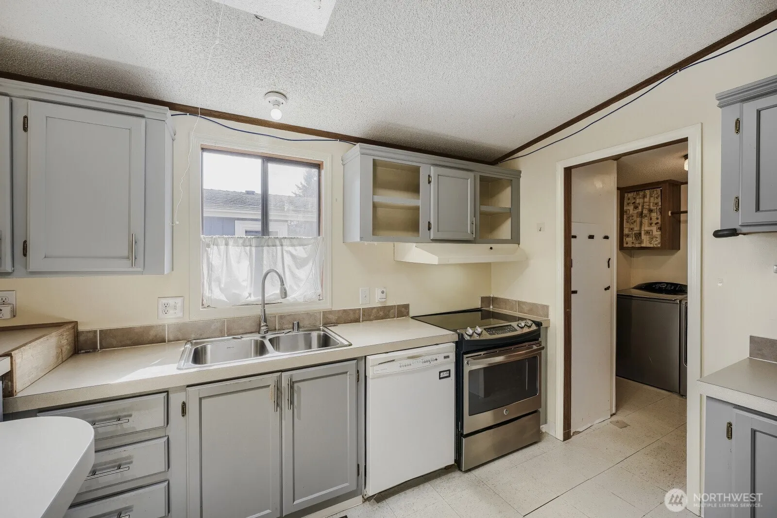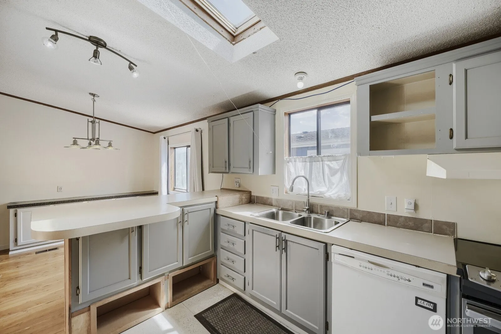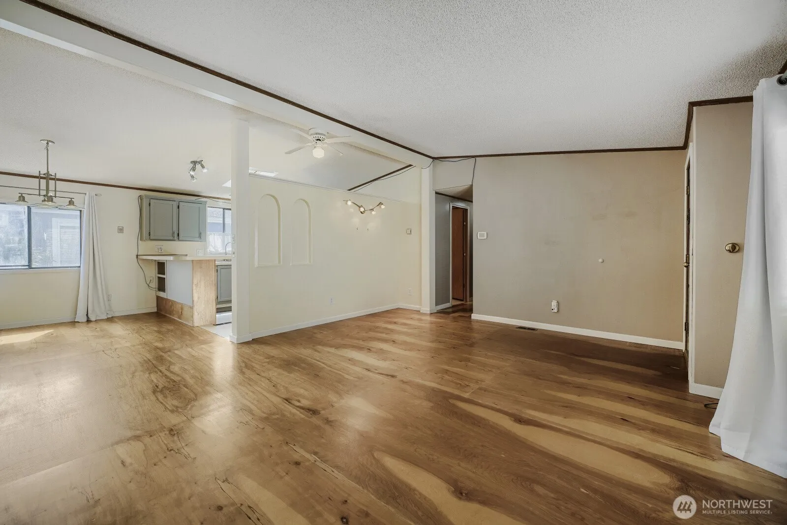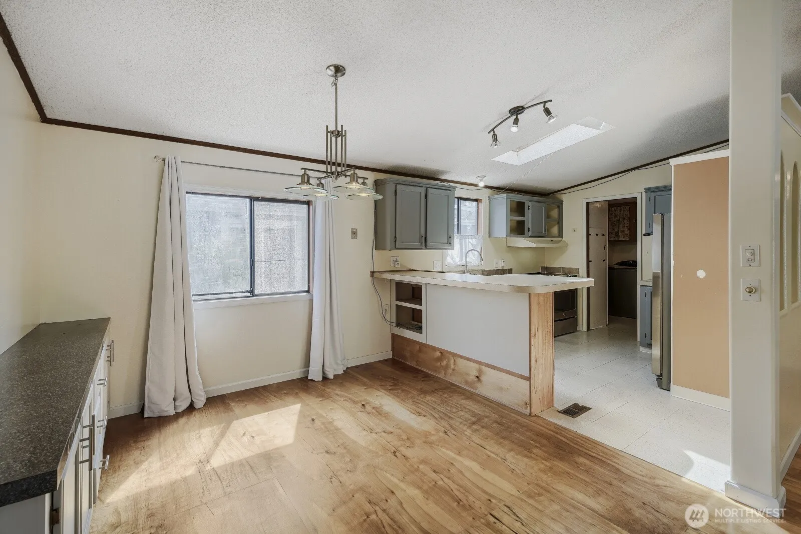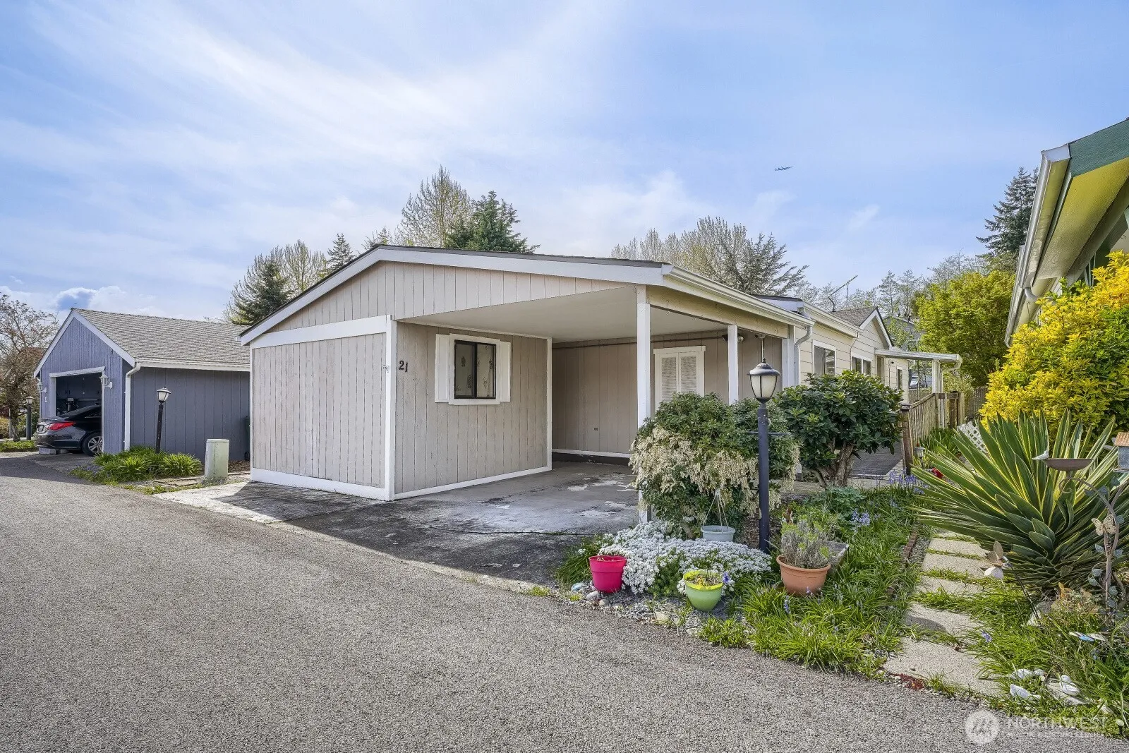 Welcome to this spacious and beautifully maintained home in the charming 55+ community of Parkwood Lane! A covered front porch invites you into a bright living area with vaulted ceilings and abundant natural light. The sun-filled dining room features a built-in buffet, while the cozy kitchen offers a skylight, open shelving, and a raised countertop—perfect for a breakfast bar or casual dining. Generously sized secondary bedrooms include custom closet systems for added storage and organization. The primary suite offers a private en suite bath with a walk-in shower and tile surround. Located in a gated community with an enjoyable community clubhouse, gazebo, BBQ area, and green space for gatherings and activities. great amenities and convenient access to shopping, dining, major highways, and light rail.