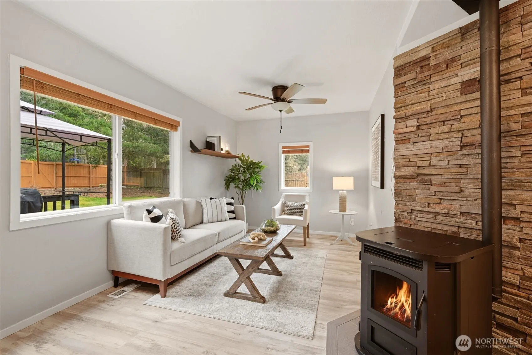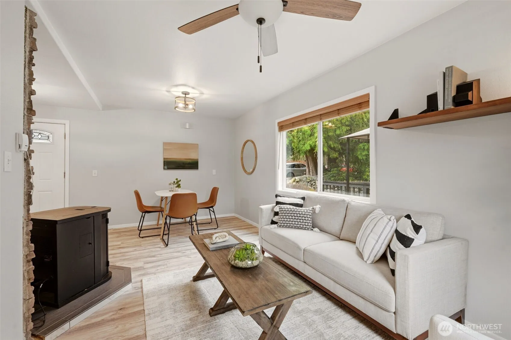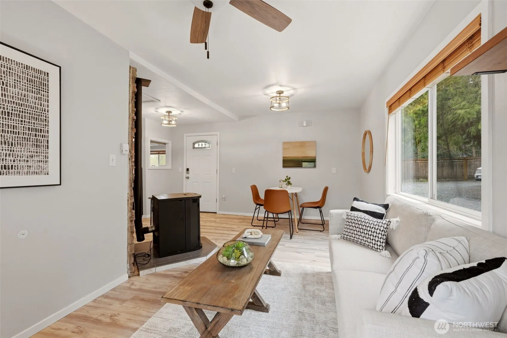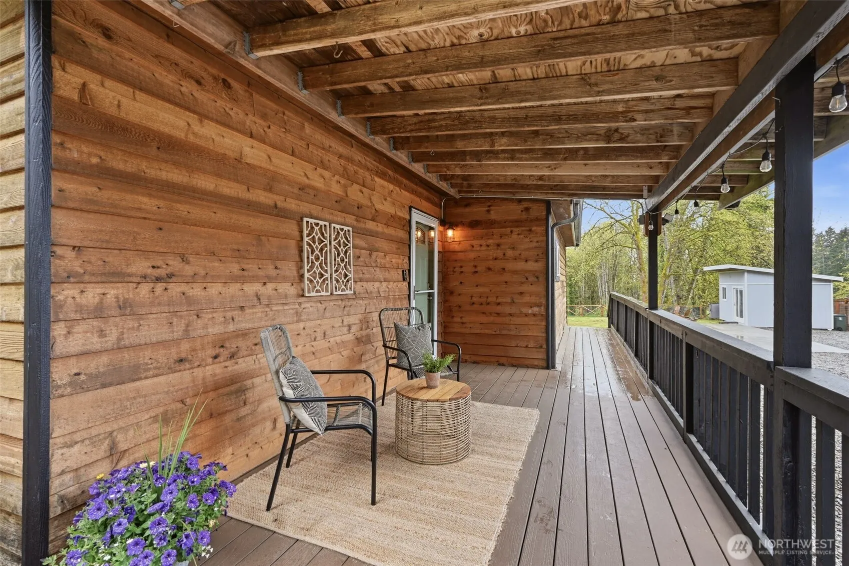 Welcome to your cozy cabin in the city. Wrapped in cedar siding and framed by towering evergreens, this 2-bed, 1-bath Kent retreat sits on 1.463 acres across two separate tax parcels — room to spread out and still have green space to spare. The covered wraparound deck with exposed beam ceiling and string lights sets the tone instantly — whether it’s morning coffee, an evening around the fire pit, or simply soaking in the peaceful surroundings. The fully fenced backyard offers room to roam, the expansive gravel lot handles RV, boat, and trailer parking with ease, and a detached outbuilding adds storage or workspace. Inside, fresh LVP flooring, granite countertops, stainless appliances, a spa-inspired bath, and knotty pine barn doors make it warm and move-in ready. Immaculately maintained and lovingly cared for, every detail has been tended to. The pellet stove keeps you cozy all winter long. Steps from Lake Youngs Reservoir and miles of trails, yet minutes from shopping, dining, and commuter routes. Properties like this — truly one of a kind — rarely come to market. City convenience. Don’t miss out on this one!