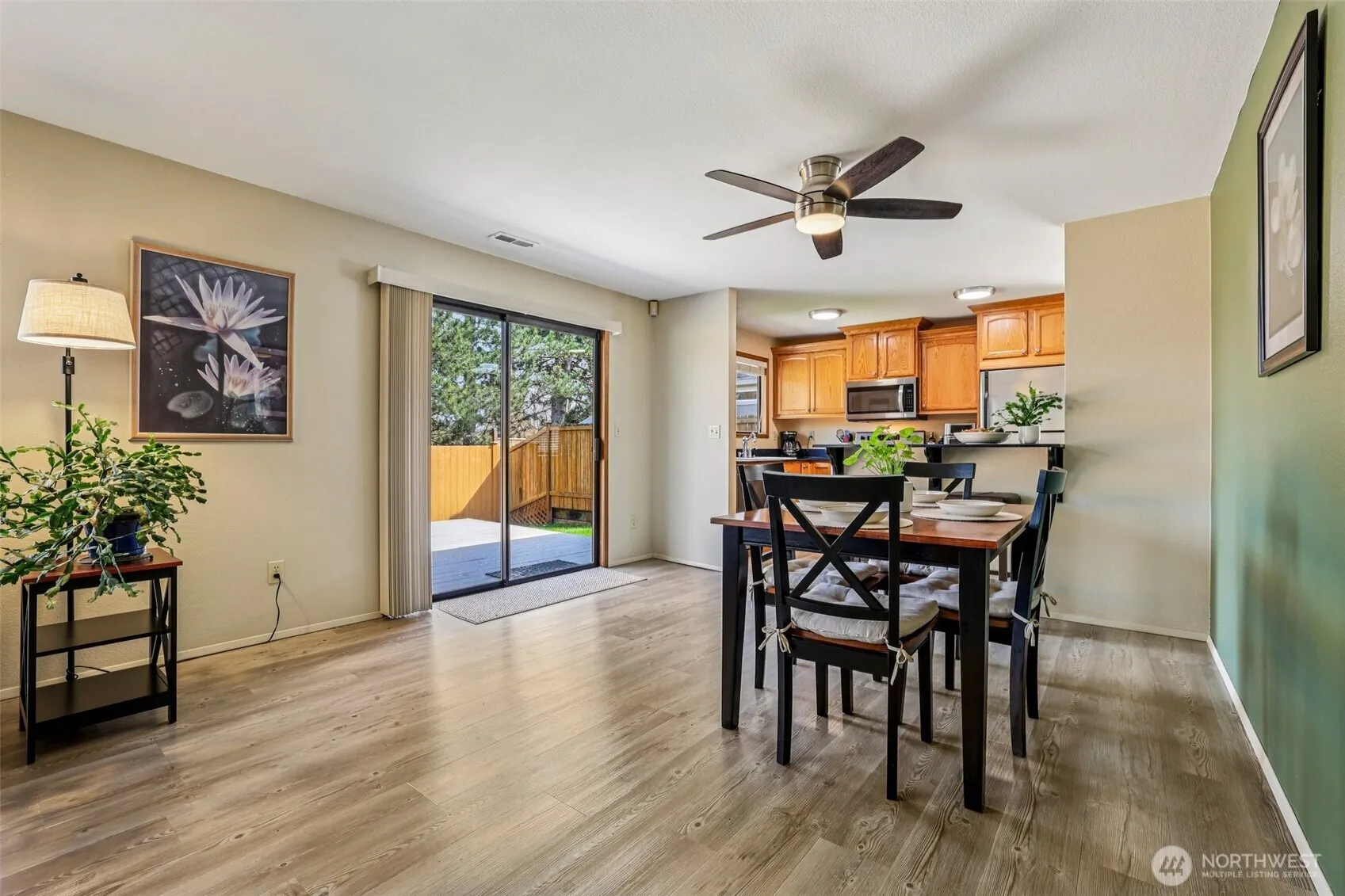 Enjoy single-level living with added privacy in the desirable Kent East Hill neighborhood. This charming 1-story home offers 3 bedrooms and 2 bathrooms and is move-in ready with fresh exterior paint and a new deck. The large, fully fenced backyard is perfect for summer BBQs, entertaining, or relaxing outdoors. Inside, enjoy great natural light, air conditioning, and a cozy fireplace for year-round comfort. The primary bedroom includes an ensuite bathroom and a spacious walk-in closet. West to northwest exposure brings warm afternoon and evening light to the front, with morning light in the backyard. Conveniently located near parks, shopping, dining, and major commuter routes, offering an easy drive to Boeing, Seattle, and surrounding areas.