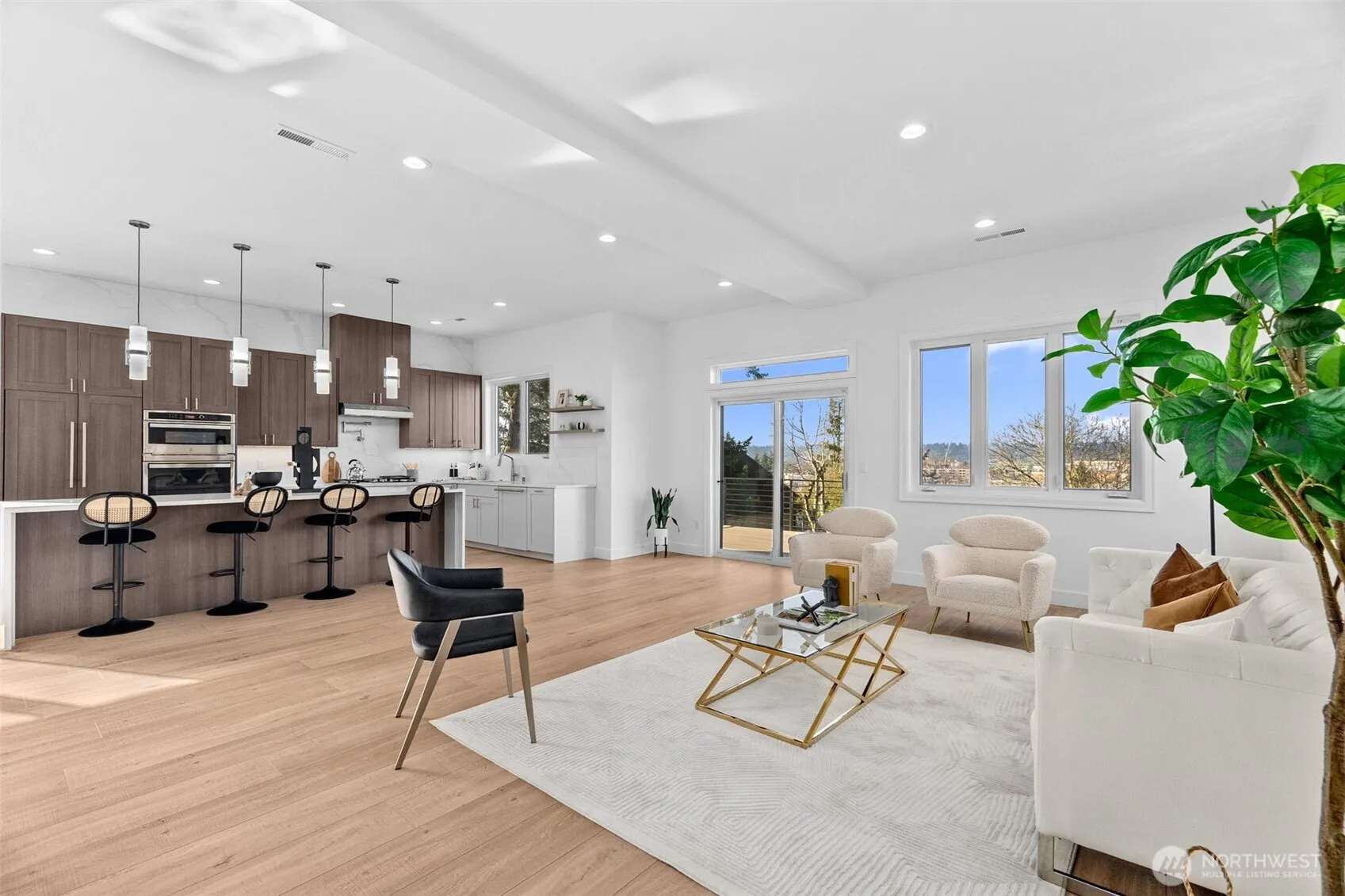 *Seller is offering a credit that may be applied toward closing costs, rate buy-down, or upgrades* Not your average new construction. This elevated home was designed to stand apart. Perched above the Kent Valley with sweeping territorial views, this contemporary home delivers premium selections and intentional design rarely found in South King County. Flooded with natural light, the open-concept layout showcases wide-plank flooring, oversized windows, and a true chef’s kitchen featuring quartz countertops, a statement island built for gathering, custom cabinetry, and built-in appliances that elevate both style and function. The seamless flow from kitchen to dining and great room extends to an expansive elevated deck, perfect for entertaining above the valley. The spa-inspired primary suite offers dual vanities, designer tile finishes, and generous walk-in storage. Three additional bedrooms provide flexibility for guests, office, or bonus space. The oversized lower-level garage isn’t just parking, it’s opportunity. Create a home gym, workshop, studio, or future theater room. Professionally designed landscaping, durable exterior materials, and thoughtful storage throughout complete this standout home. Minutes to Kent Station, parks, and major commuter routes. Modern design. Elevated living. A rare opportunity.