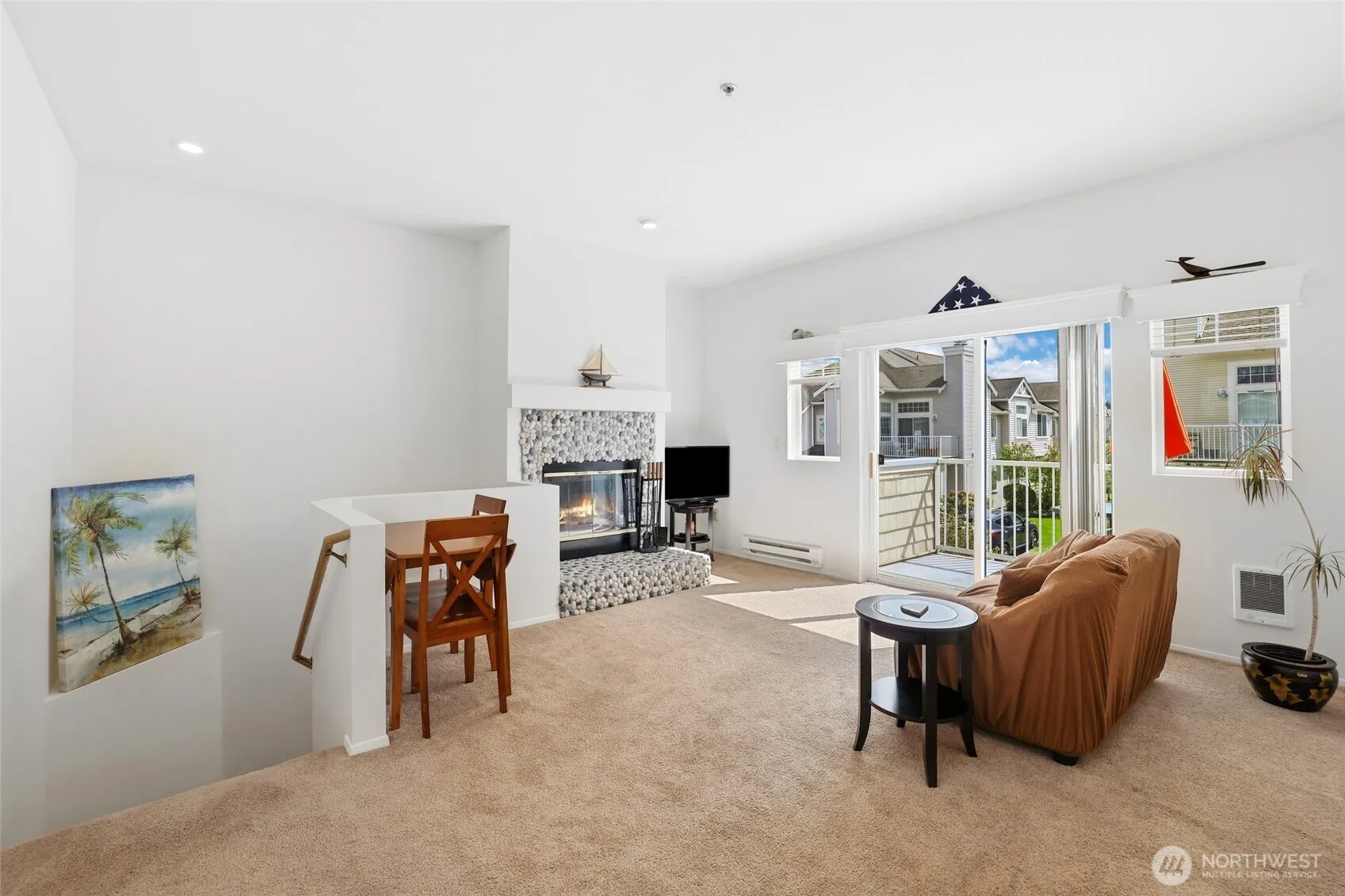 Welcome to this light and bright townhome style condo in West Bay at The Lakes! Thoughtfully designed with tall ceilings and very functional floor plan. Features an open concept great room highlighted by the custom stone, wood burning fireplace. Lovely kitchen with plenty of cabinet and counter space. Large bedroom and walk-in closet. Spacious full bath and in-unit washer & dryer. All appliances stay. Relax on your balcony in this peaceful community. Attached garage has extra storage space plus plenty of guest parking available. Updates include: newer roof, entry way tile, kitchen faucet, bathroom sink & faucet, blinds in living room & kitchen, garage door opener and paint in most rooms. No Special Assessment. Clubhouse with kitchenette and entertaining space, fully equipped gym & sauna. Enjoy all that The Lakes in Kent has to offer, with sidewalks to stroll the grounds and nearby views of Mt. Rainier, wildlife, beautiful landscaping, spring flowers and fall color. Close proximity to I-5 and HWY 167, Interurban trail, transit, Light Rail and Sounder, Kent Station, Riverbend golf complex, ShoWare Center and Kent Valley Ice Center. Mortgage savings may be available for buyers of this listing.