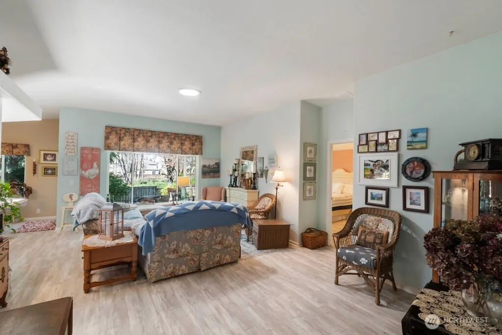 Welcome to this super cute and well-cared-for manufactured home located in a desirable park setting! This charming 3-bedroom, 2-bathroom home features durable and stylish LVP flooring throughout, creating a modern and cohesive feel. Enjoy peace of mind with a newer roof, newer SS appliances and newer hot water tank. The spacious primary suite offers a relaxing retreat, complete with a luxurious 5-piece bathroom. Step outside to your very private backyard, where you’ll find a large, covered extended patio—perfect for entertaining or simply enjoying quiet mornings. The home backs to a serene greenbelt, adding extra privacy and a beautiful natural backdrop. Situated in a great location, this home combines comfort, convenience, and charm—ready for its next owner to move in and enjoy!