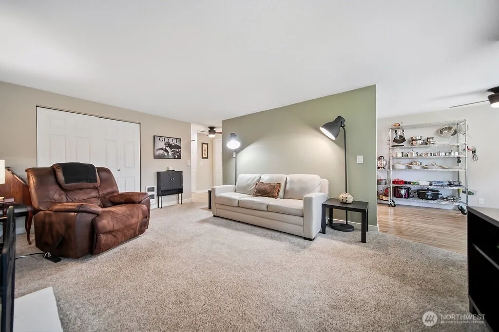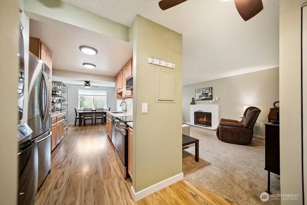 Beautifully updated 1 bed, 1 bath condo in the Vikings Crest community just minutes from downtown Poulsbo. This 832 SF unit features modern finishes, quartz countertops, updated cabinetry, newer laminate flooring, and newer carpet with upgraded pad. The kitchen stove to be replaced with a new similar stove. The home also features a newer water heater. Bright, functional layout with territorial views from the living room, dining area, and sunny deck perfect for growing plants and enjoying morning sun. Ample closet storage. Community amenities include seasonal pool, sauna, exercise room, clubhouse with kitchen, and EV charging. Close to Liberty Bay, Fish Park, Heritage Park, shopping, dining, and commuting routes. HOA covers current assessments.