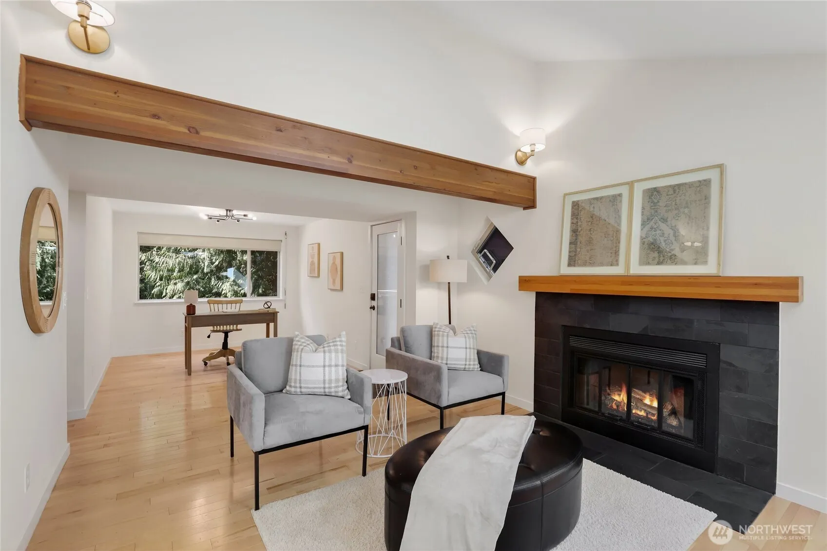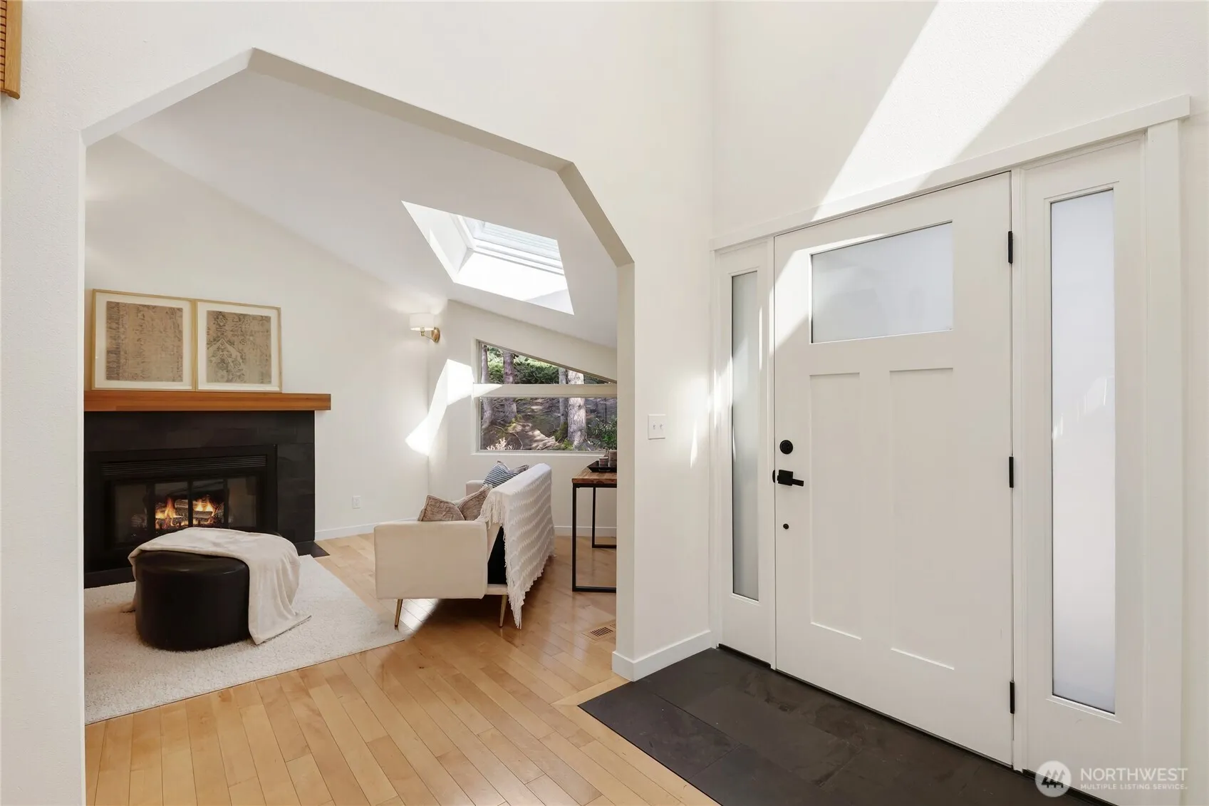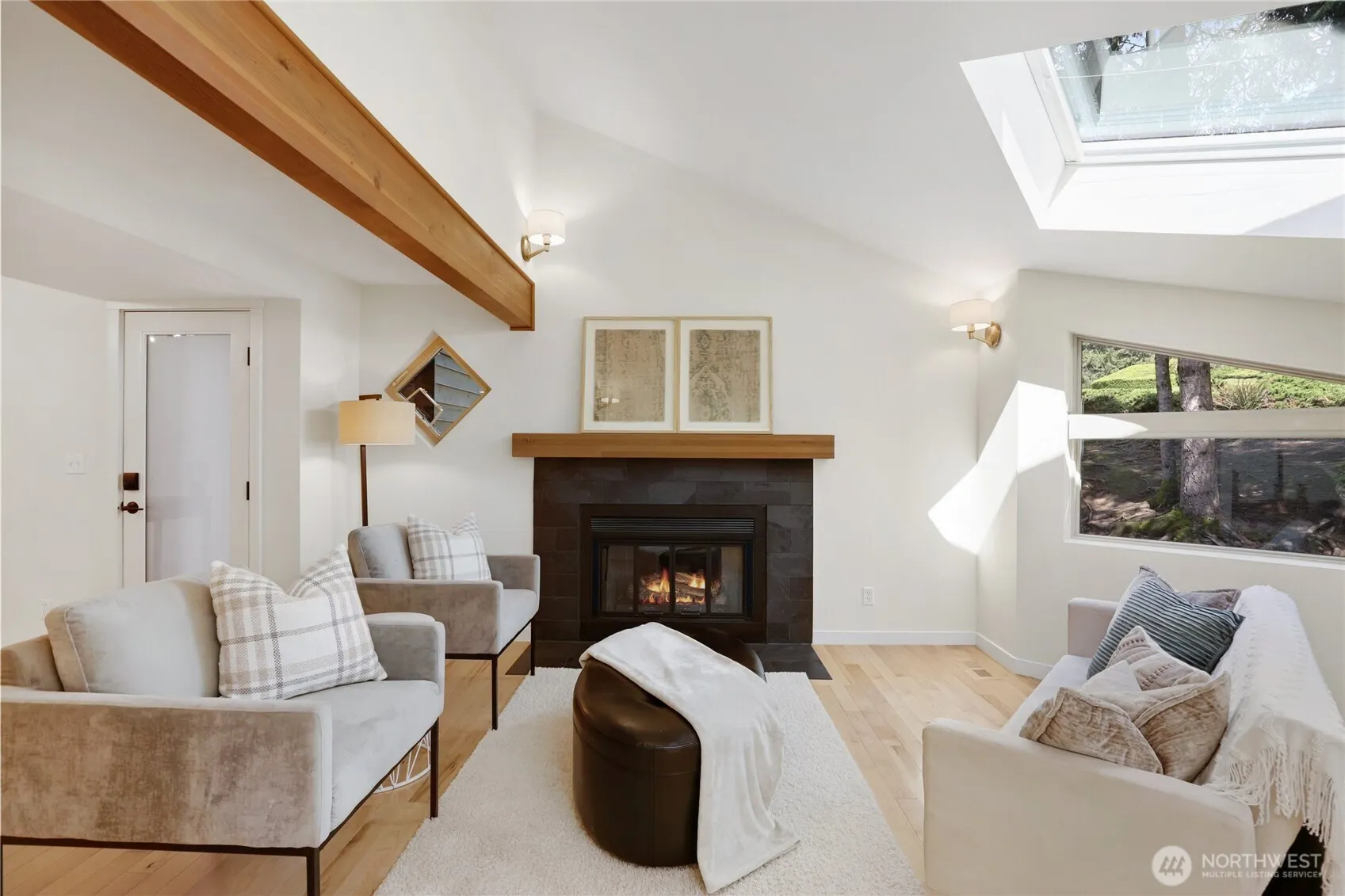 Experience Northwest living at its finest in this contemporary Poulsbo home set on a serene 1.1-acre lot. Featuring 3 bedrooms and 3 baths, this thoughtfully designed residence offers a bright and inviting atmosphere with vaulted ceilings and skylights that fill the space with natural light. The living room centers around a cozy wood-burning fireplace, creating the perfect gathering space. The open kitchen is equipped with stainless steel appliances and flows seamlessly into the dining area, which leads to a sunlit seating nook surrounded by windows. The spacious primary suite includes an en-suite bath, a walk-in closet with built-in organizers, and a slider opening to a peaceful seating area. The lower level expands the home’s versatility with a generous family room, additional bedroom, 3/4 bath, and a laundry area with extra space for storage or a home gym. Step outside to enjoy the large deck, ideal for relaxing or entertaining while taking in the surrounding natural beauty. Tucked away for privacy, yet conveniently located just minutes from shopping, dining, and everyday amenities, this property offers the perfect balance of comfort and convenience.