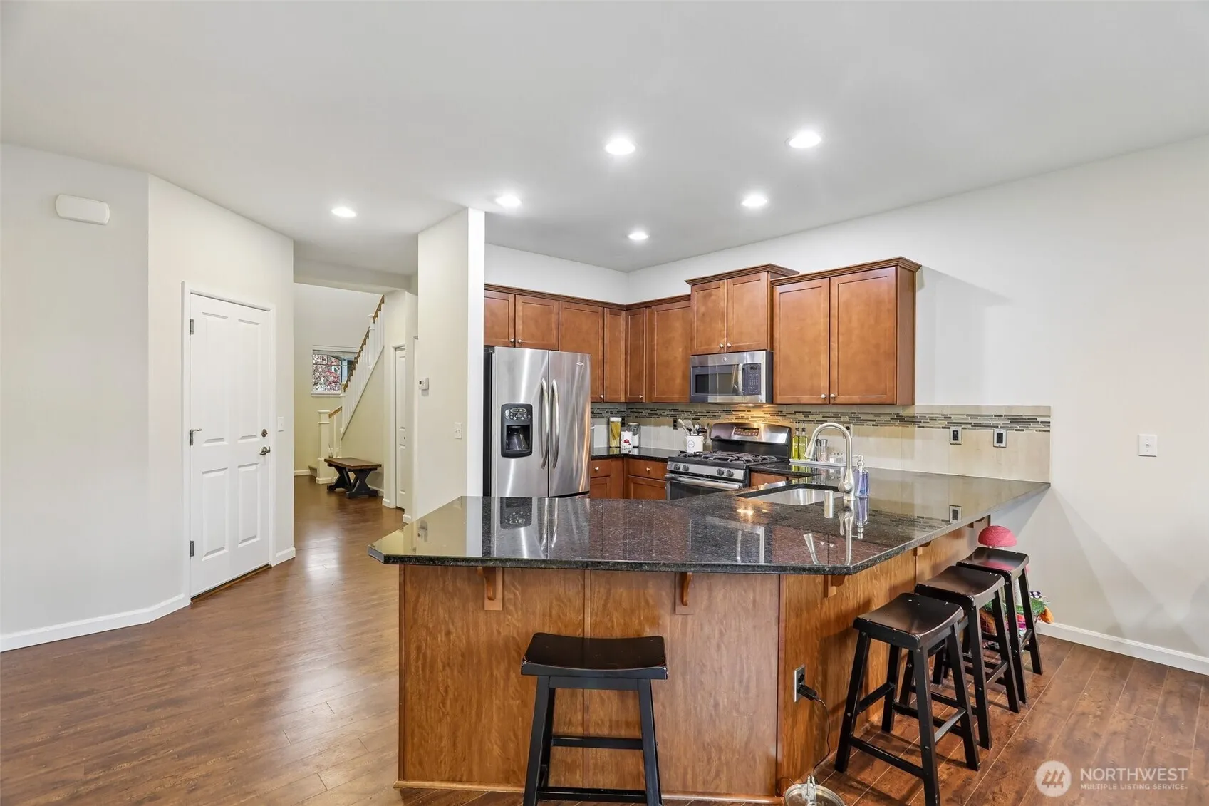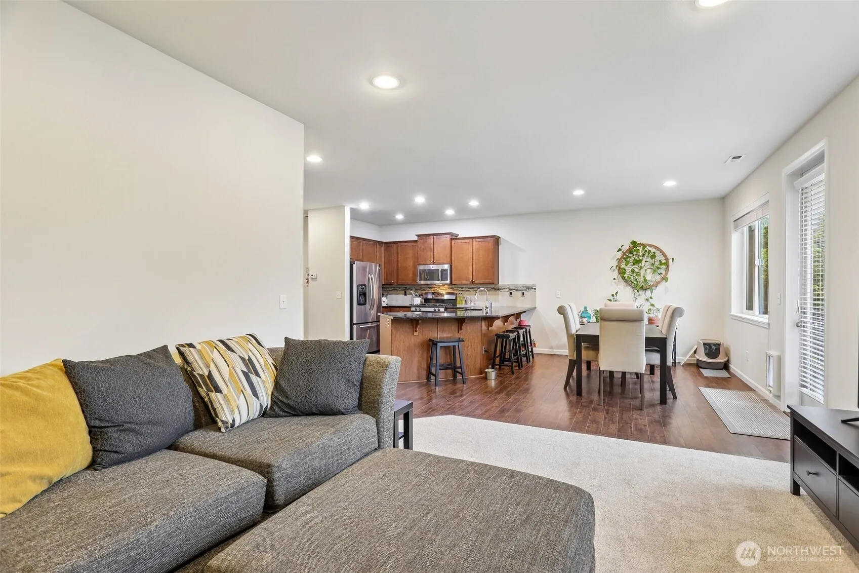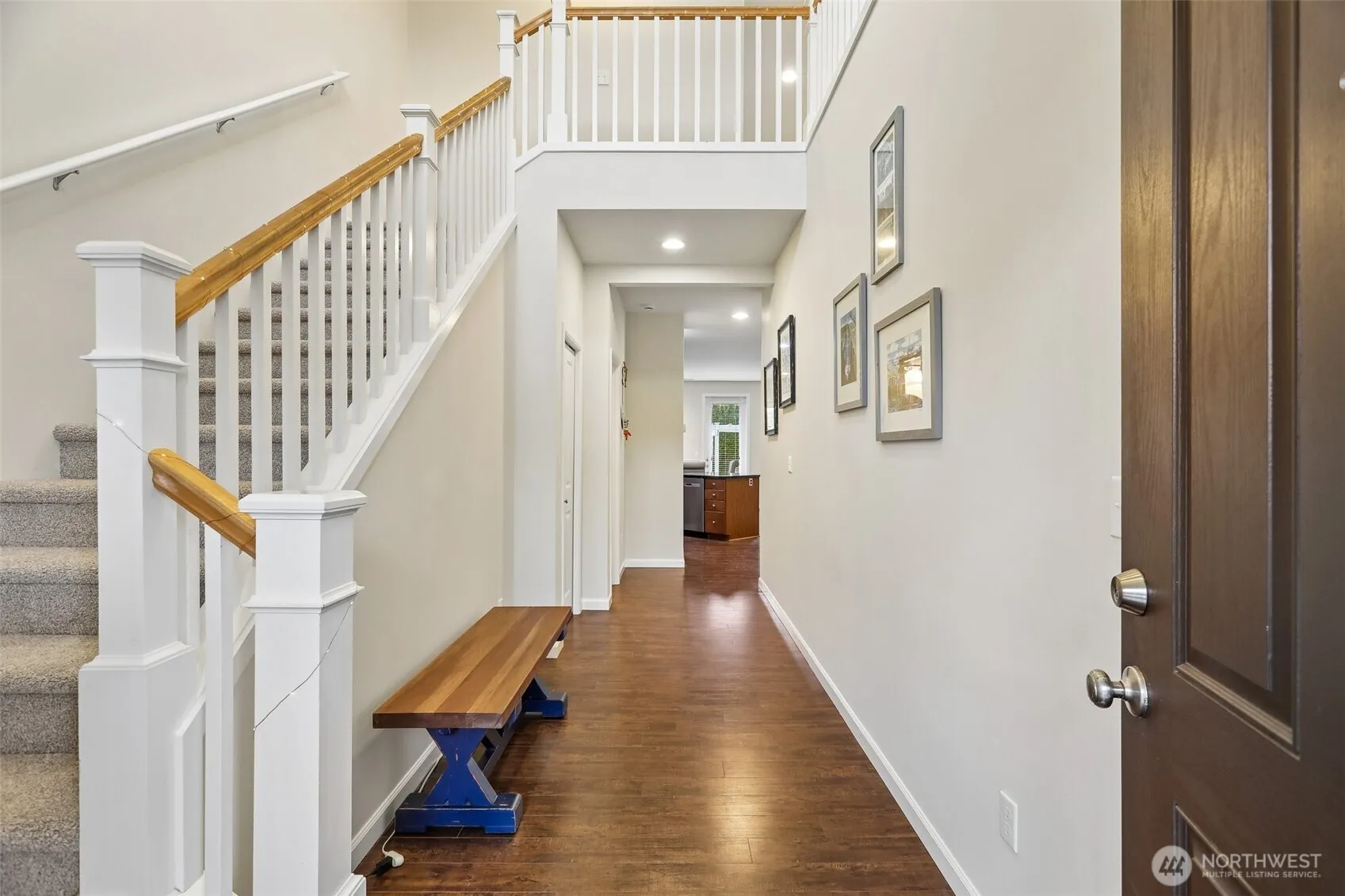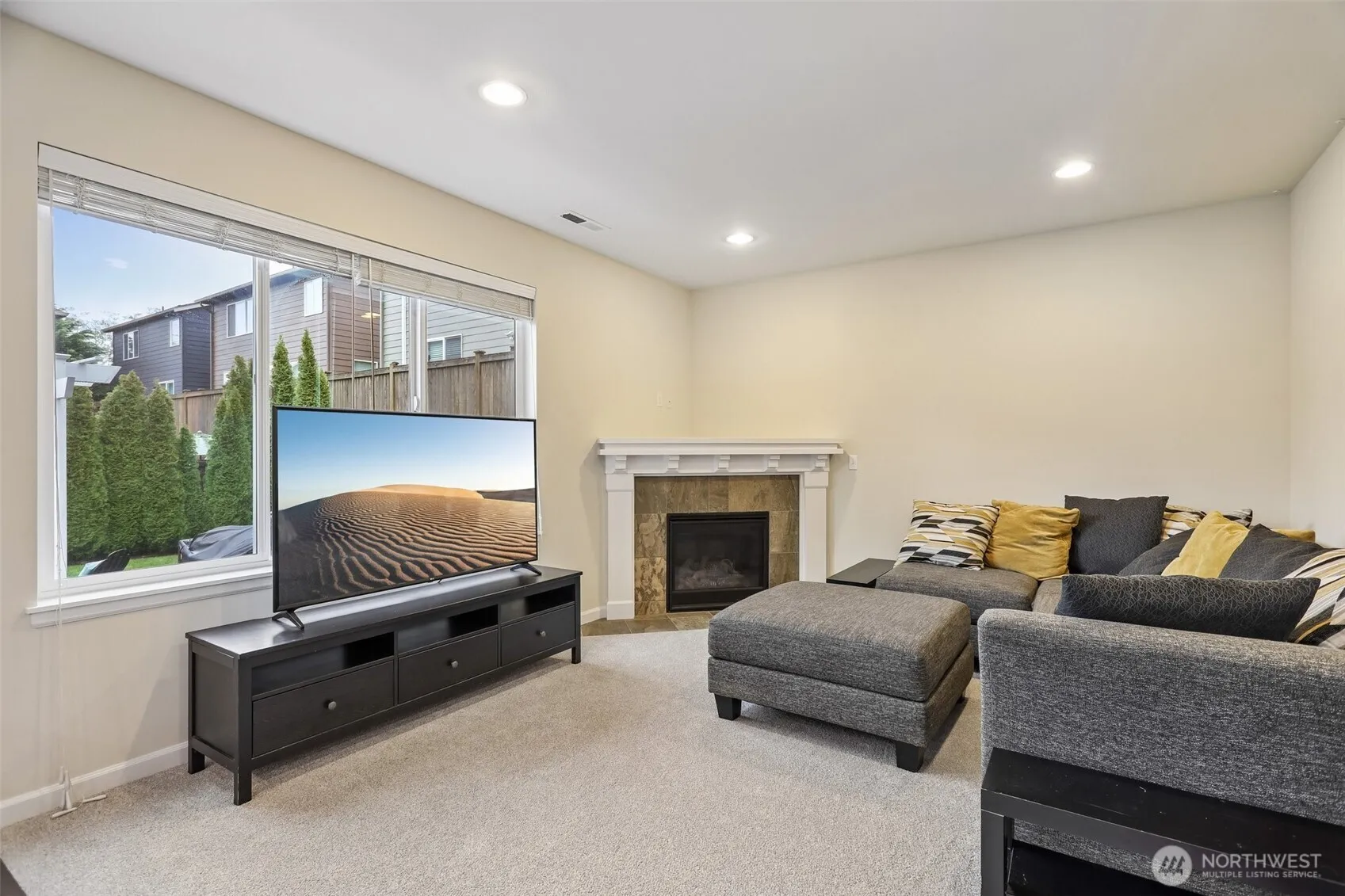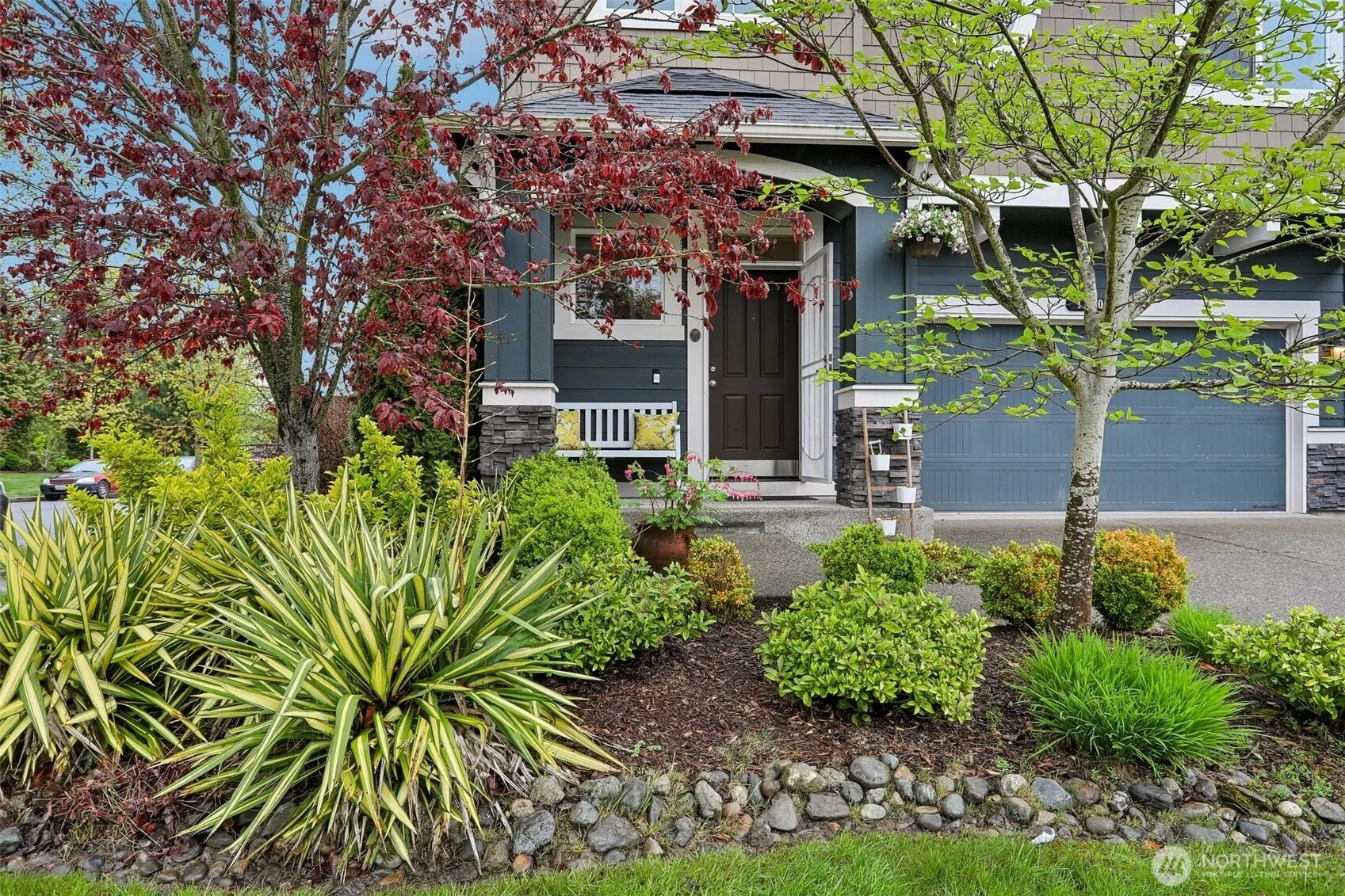 Located in the desirable Stonebriar neighborhood of Lake Stevens, this well-maintained two-story Craftsman home offers a thoughtful layout, modern comfort, and a spacious corner lot with generous outdoor living space. Fresh interior paint and brand-new carpet (April 2026) give the home a clean, move-in-ready feel throughout. The main level features a flexible den, a half bath, and open living areas finished with a mix of durable LVP and carpet flooring, creating a functional flow for everyday living and entertaining. Upstairs, all bedrooms are conveniently located together, along with a dedicated laundry room right by the bedrooms. The primary suite includes a large walk-in closet, dual sinks, and a separate tub and shower. A highlight of the property is the backyard. Enhanced by a flagstone patio, pergola, and in-ground fire pit, this functional outdoor space is ideal for gatherings, play, or relaxing at home. A small dog door with exterior stairs adds a practical touch for pet access. Single-owner home with clear pride of ownership throughout.