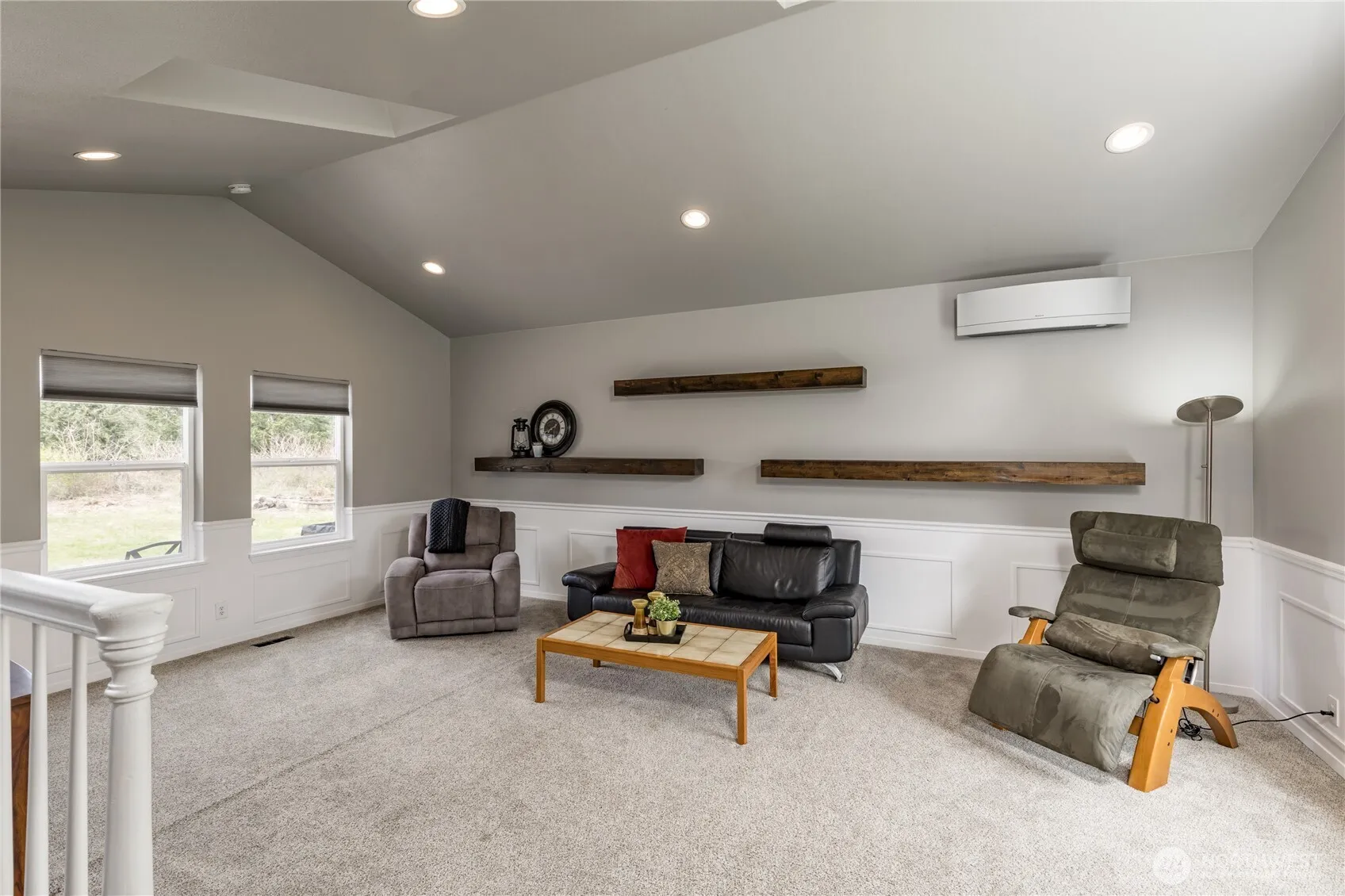 Escape to your own private 1-acre sanctuary at the end of a quiet road. This well maintained retreat blends Northwest charm with modern luxury, highlighted by a professionally-designed, sound-proofed cinema. The 17-speaker immersive system features an 83″ Sony OLED UHD TV and premium components from Anthem, Emotiva, Klipsch, REL, and Oppo – plus a curated library of 1,000+ movies for a true at-home theater experience! The flexible floor plan of this home adapts to your lifestyle. Enjoy quiet moments in the vaulted living room or main floor office and entertain with ease with the spacious kitchen and fireside wet bar. The generous main level primary suite provides a peaceful retreat with a walk in closet and dual vanity bath. Upstairs, a versatile bonus room is perfect for a guestroom, playroom, gym, or creative studio. Outside, the natural landscape offers privacy and frequent wildlife sightings. Take in the surroundings from the wraparound deck, custom crafted from timber harvested on the property. With a private well, multiple mini split systems, excellent storage, and ample RV/boat parking, this turnkey estate delivers comfort, independence, and serenity.