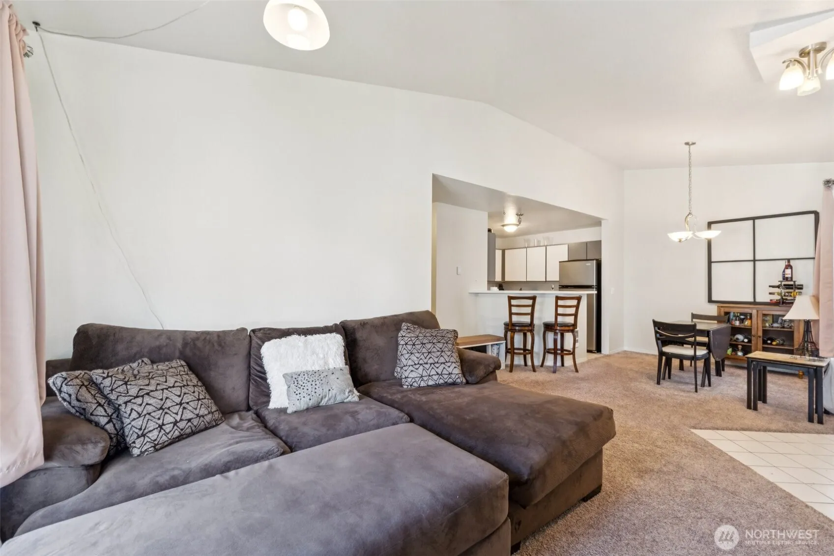 Enjoy easy living in this light and bright top-floor corner condo in highly desirable Lake Stevens. With no upstairs neighbors and a single-level layout, this home is filled with natural light thanks to vaulted ceilings and large windows throughout. The open-concept living area features a cozy wood-burning fireplace and an inviting layout perfect for everyday living or entertaining. The kitchen offers a breakfast bar and abundant cabinetry, plus all appliances stay, including the washer and dryer.The spacious primary suite includes double sinks, a walk-in closet, and a walk-in shower. Both bathrooms have been refreshed with new vanities, LVP flooring and are freshly painted. Additional conveniences include a private front patio with space for seating to enjoy the outdoors, a storage closet and your own covered parking space located just outside the steps to your front door. Ideally located for great walkability near shopping, restaurants, and everyday conveniences, with easy access to public transportation, Davies Beach, and sought-after Lake Stevens Schools. Community amenities include a clubhouse, exercise room with equipment, hot tub, and ample visitor parking. Comfortable, convenient living in a terrific community!