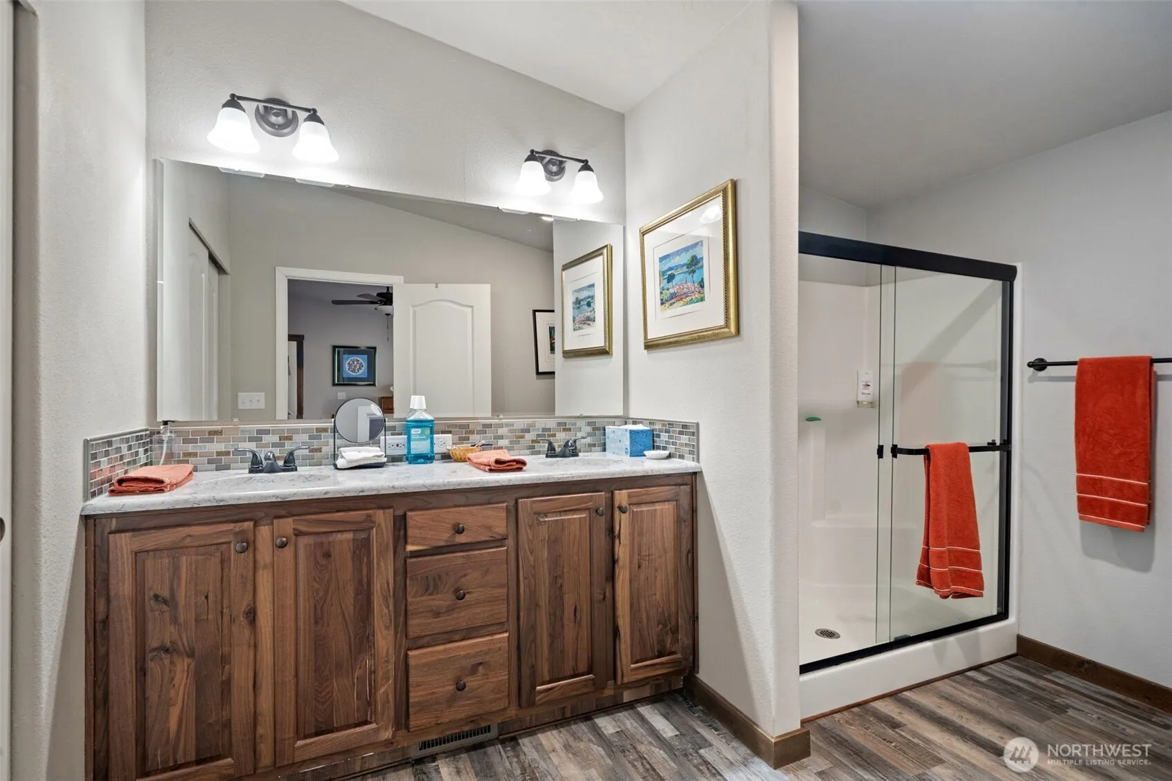 Just minutes from Walmart, Home Depot, and 6 minutes to downtown Poulsbo, this 15-acre property features a 3,200+ sq ft single-story home with a 3-car garage, Mt. Rainier views, wooded surroundings, and a 300x 50′-70’+ pond that extends onto adjacent parcel to East. Off the spacious entry is an ensuite third bedroom. The home opens into a true great room with vaulted ceilings, a quartz wet bar with cabinetry on one side, and a large quartz island with seating for eight, walnut cabinetry, and a hidden door to a large pantry/office on the other. The north wing hosts the primary suite with dual ¾ baths, a large walk-in closet, and private access to a south-facing covered deck. Another bedroom and full bath sit in the southwest corner.