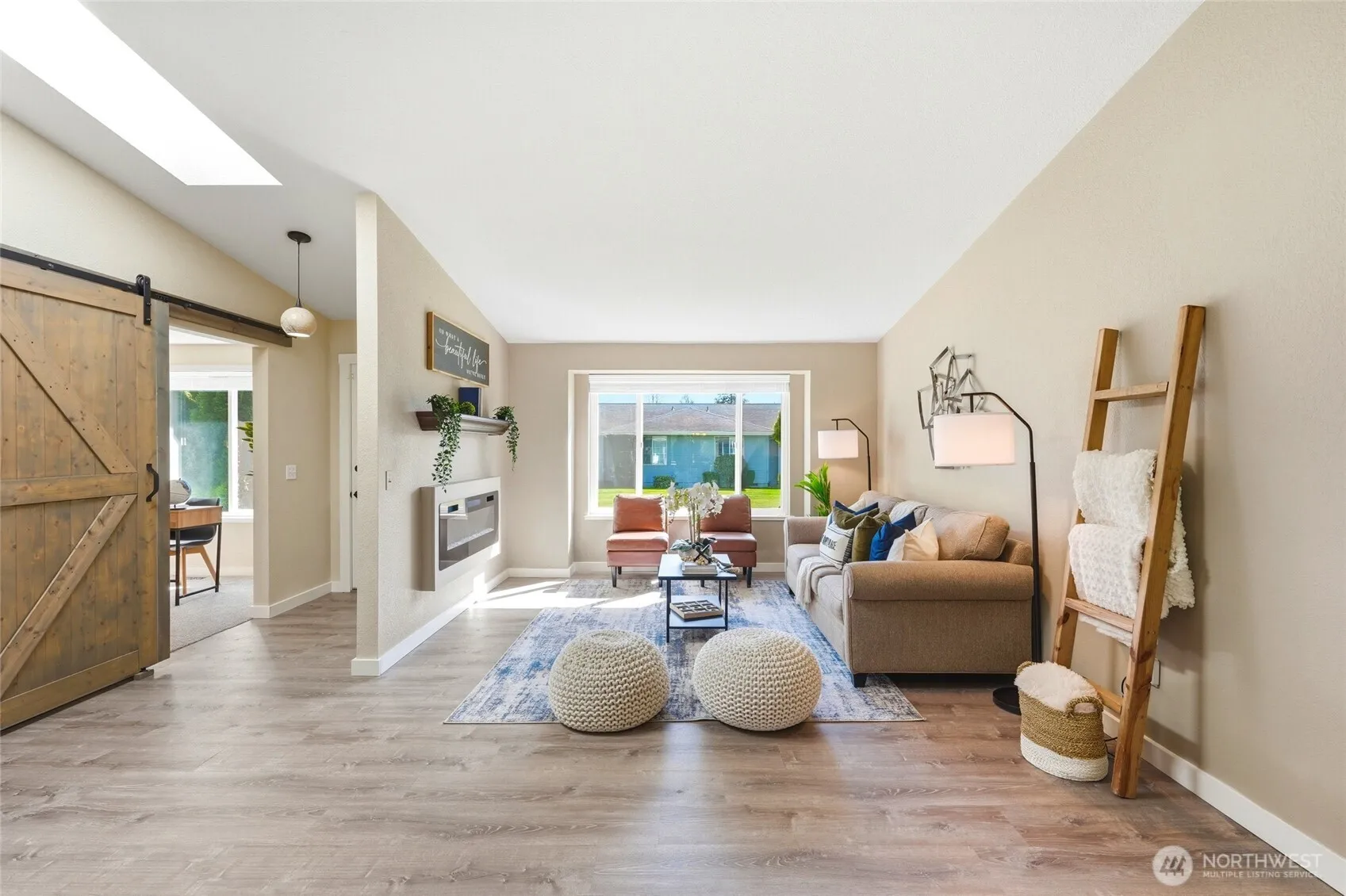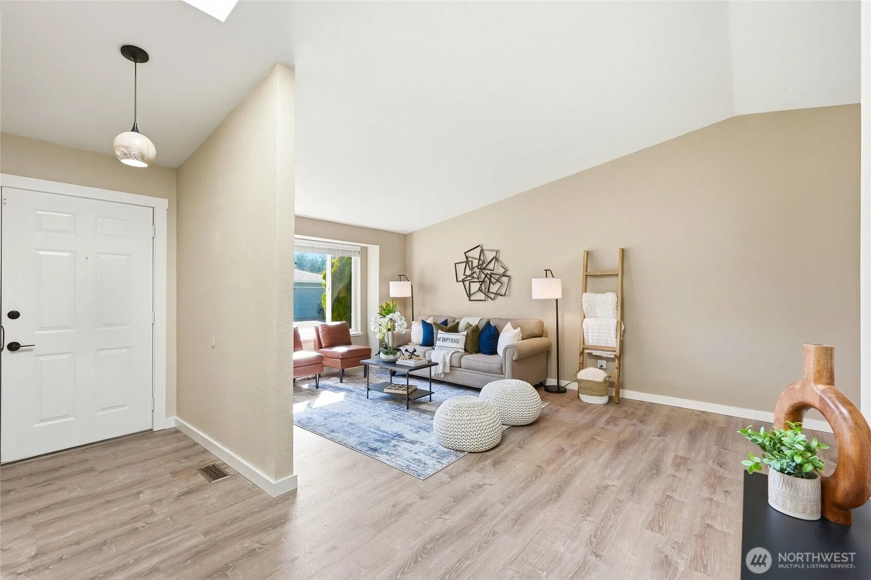UPDATED and move-in ready, this beautifully maintained END-UNIT home truly has it all! Featuring A/C, updated flooring, fresh interior paint, beautifully renovated bathrooms, and a skylight that fills the home with natural light, this home offers comfort and style with convenient ONE-STORY LIVING. Enjoy three bedrooms, soaring vaulted ceilings, and a bright, open layout designed for everyday living. The primary suite offers a LARGE WALK-IN CLOSET and an updated ensuite bathroom with new flooring, light fixtures, sink, shower with wand, and a bidet. You’ll love the abundance of storage throughout, including multiple hallway closets, a LARGE PANTRY, and garage cabinetry for added organization. Step outside to your PRIVATE BACK DECK surrounded by peaceful woods, where you may even spot deer while enjoying your morning coffee. The TWO-CAR GARAGE and full driveway provide ample parking, and the quiet neighborhood is known for its friendly neighbors and welcoming atmosphere. ALL APPLIANCES STAY, making for an easy transition into your new home. Conveniently located just minutes from College Way shopping, dining, and everyday amenities. The WELL-MANAGED HOA includes water, sewer, garbage, Xfinity/cable TV, general landscaping, and exterior maintenance, along with fantastic community amenities including a playground, picnic area, clubhouse, HEATED INDOOR POOL, and exercise room. COME TOUR THIS ASAP!