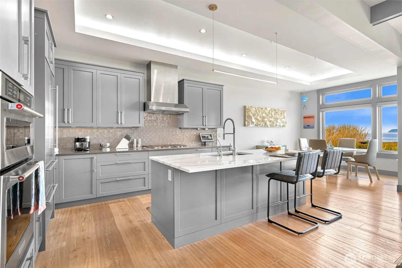 Discover a rare waterfront retreat in an exclusive gated enclave: elegantly furnished, separate casita/ADU, 2-car garage with EV charging. This 4-bed, 3.5-bath, 3050 sq ft residence showcases refined design, premium appliances, quartz countertops, hardwood floors, custom closets — quality at every turn. Enjoy ever-changing panoramic views of Boundary Bay, Gulf Islands, and White Rock from the covered seaside patio with fireplace. Steps from a world-class resort, spa, and marina; minutes to Semiahmoo Golf & Country Club and the Canadian border. Miles of scenic walking trails. Sail, kayak, or simply savor your environs, framed by a bird sanctuary and dazzling sunsets. This turnkey haven is ideal for the buyer who expects the exceptional.