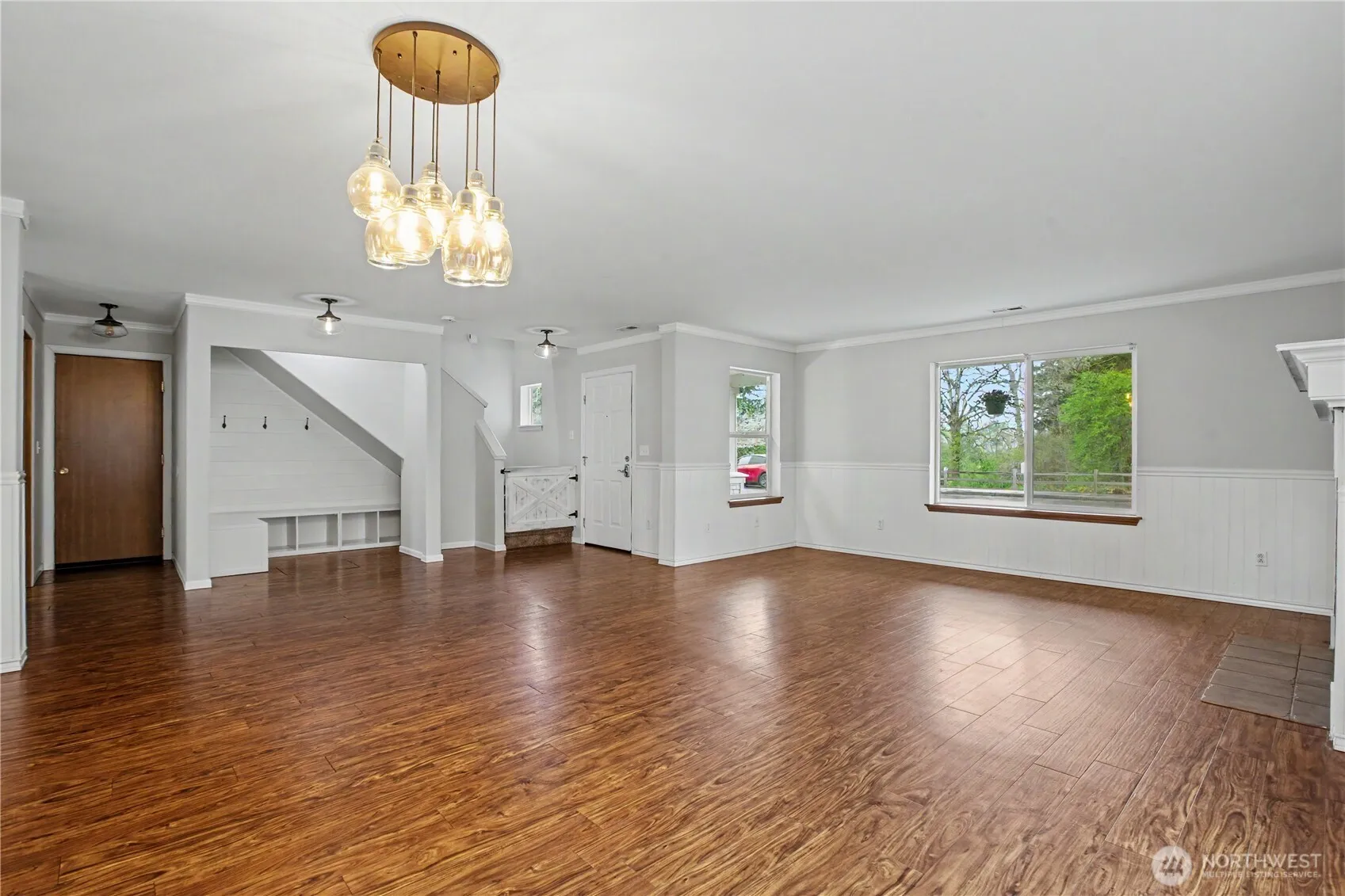 Welcome to this beautifully refreshed 4-bedroom, 2.5-bath home offering exceptional space, comfort, and functionality. From the moment you arrive, the expansive front porch creates a warm and inviting first impression—ideal for relaxing mornings or evening gatherings. Inside, you’ll find a thoughtfully updated interior featuring hard surface flooring throughout and a fresh coat of paint that enhances the home’s bright, clean aesthetic. The crown molding and wainscoting add a touch of sophistication to the main living areas, while the spacious layout offers flexibility for both everyday living and entertaining. The kitchen is designed with convenience in mind, featuring a large pantry, new quartz countertops, tile backsplash, newer sink, and updated hardware on cabinets and drawers. The inviting living room showcases built-in shelving and a stylish shiplap accent wall, with easy access through french doors leading to the fenced backyard and outbuilding/shed, providing additional storage. Upstairs, a versatile bonus room offers endless possibilities for a home office, media room, or play area. The generously sized primary suite includes a 5-piece ensuite bath and an impressive walk-in closet. The additional 3 bedrooms are well-proportioned and each offer walk-in closets for ample storage. A/C window units provide added comfort. This move-in ready home combines space, style, and practicality—designed to accommodate a variety of lifestyles.