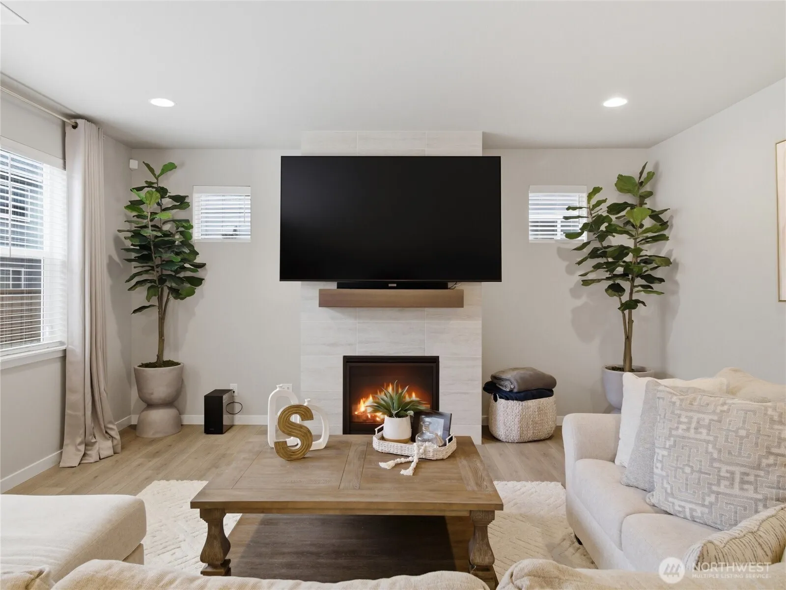 Beautiful, better than new 2022-Rush built home in upscale Spanaway neighborhood, offering 4 bedrooms & office and over 2,800 sq ft of modern living. This thoughtfully designed home features an open-concept layout with a spacious kitchen showcasing custom cabinets, quartz countertops, a large island, and durable LVP flooring throughout the main level. Stay comfortable year-round with an energy-efficient heat pump. Upstairs, enjoy generously sized bedrooms including a luxurious primary suite with walk-in closet and private bath. Fully fenced yard and covered patio w/fireplace provides space for outdoor entertaining or relaxation. Conveniently located near JBLM, shopping, and everyday amenities—this move-in-ready home checks all the boxes.