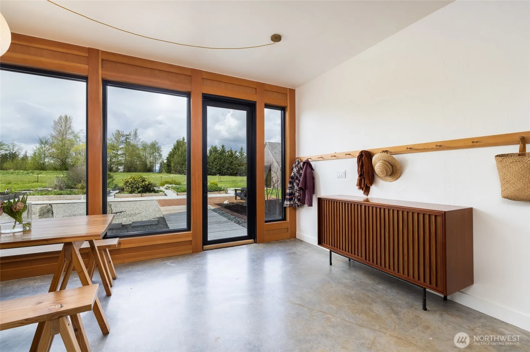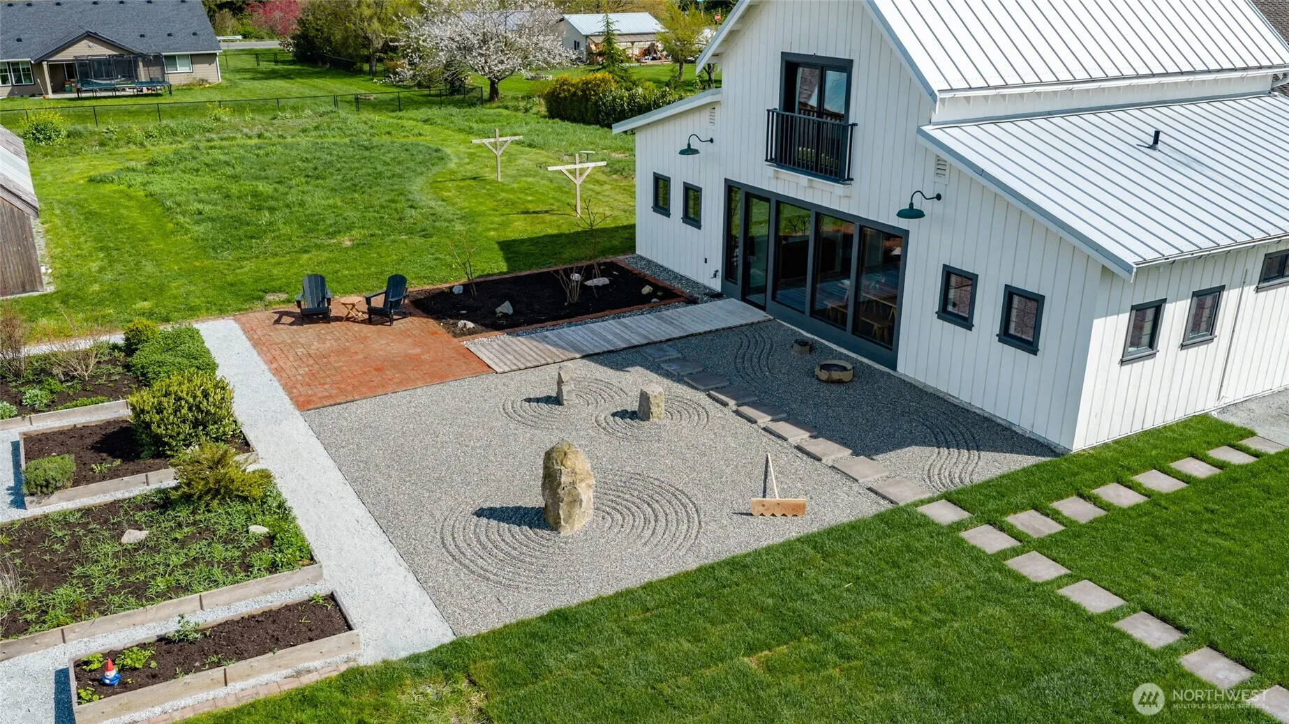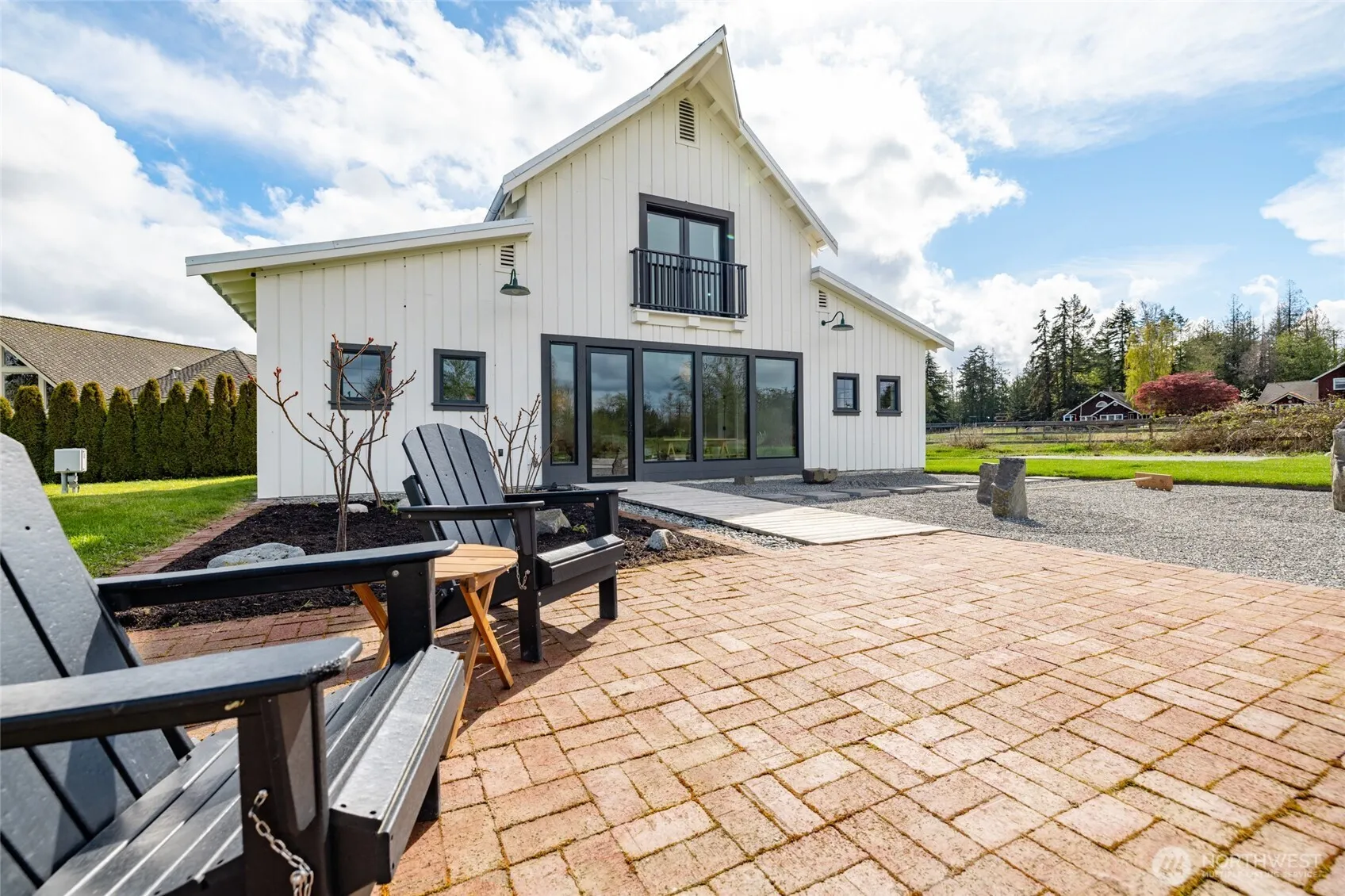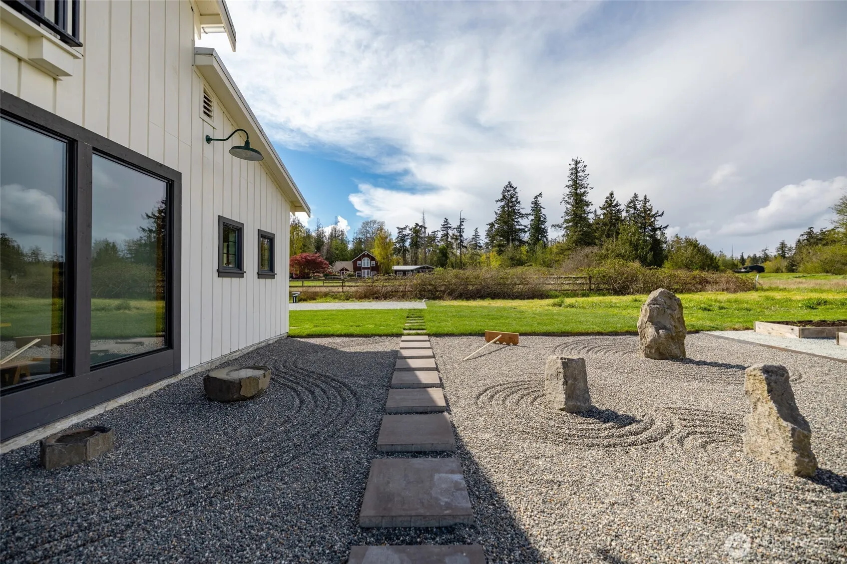 Inspired by the warmth and clarity of Scandinavian and Japanese design, as well as the agrarian architecture of Skagit Valley, this charming home sits on .6 acres on desirable Pleasant Ridge with views of Mount Baker. This “Goldilocks” lot is not too big, not too small—it’s just right. A dramatic wall of North-facing windows fills the airy great room with natural light and frames peaceful pastoral, valley, and mountain views. Just outside, a Zen garden extends the sense of serenity and connection to nature. Effortlessly stylish, the main floor offers an open living and dining space, a sunny country kitchen with open storage, a cozy theater room with surround sound, a guest bedroom, a home office (or second guest room), and a beautifully tiled bathroom. Upstairs, the expansive loft-style primary suite provides room to create your dream retreat, with abundant space for a sitting area and a future en-suite bath. The minimalist style throughout embraces dual-use furniture that maximizes storage. A charming greenhouse/studio—with brick floors, glass front, water, and power—creates the perfect haven for artists, craftspeople, or gardeners. Raised beds filled with rich Skagit Delta soil invite you to grow your own food or flowers, and the meadow offers room to breathe, play, or simply be still. Just minutes from La Conner, Mount Vernon, and Conway—close to amenities yet perched above the floodplain in one of Skagit County’s most picturesque and sought-after settings.