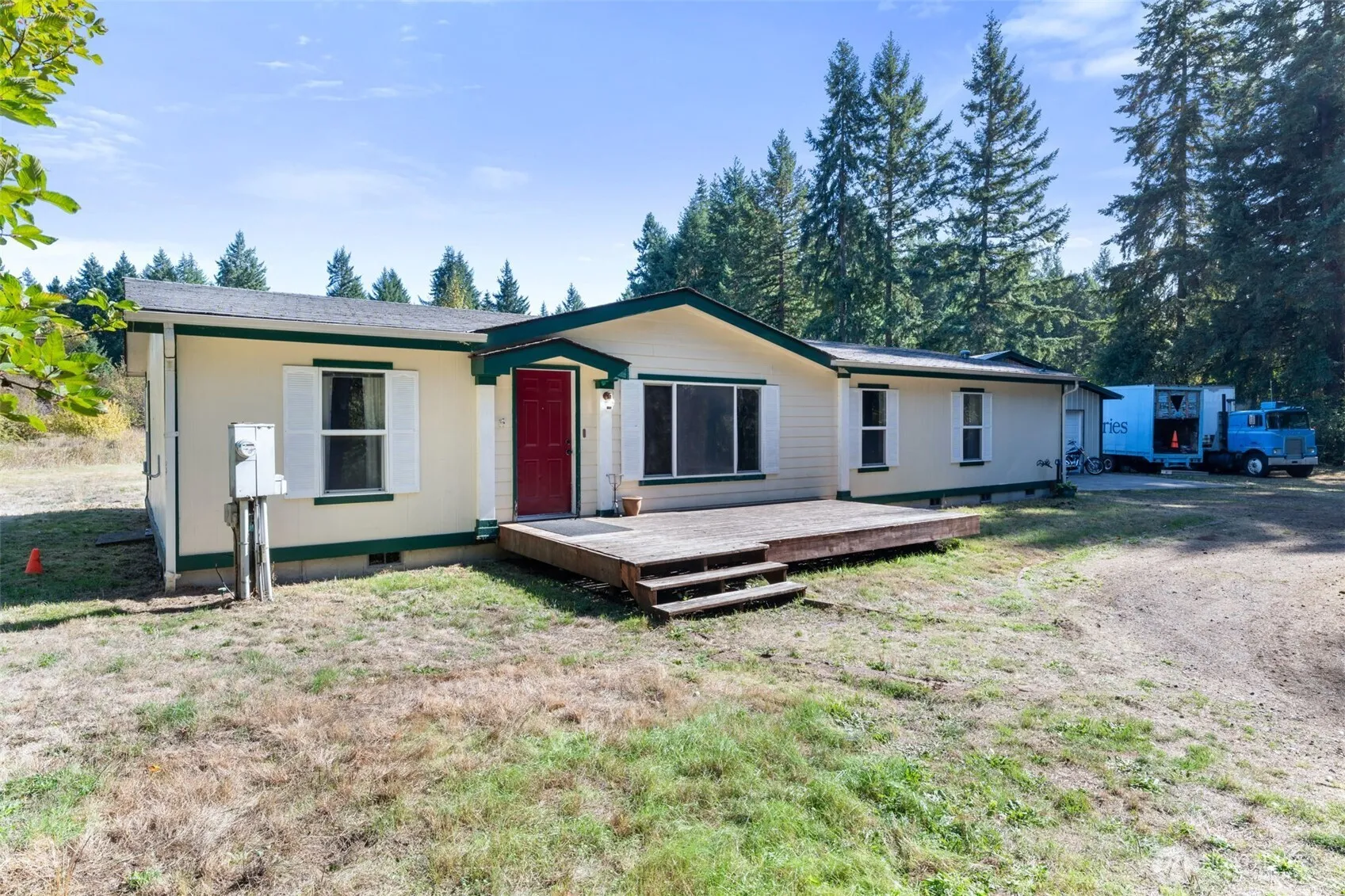 Country Comfort on 3.36 acres in Yelm! Spacious 3-bedroom, 2-bath manufactured home, offering 1,620 sq. ft. with a split-bedroom floor plan, large kitchen with tons of storage, spacious living room and open concept dining area. Primary bedroom includes extra space for office or sitting area, plus a corner soaking tub in the primary bathroom. Enjoy year-round comfort with a heat pump and relax on the two large decks—front and back, perfect for soaking in the peaceful setting. The 28×36 propane-heated shop provides plenty of room for storage, hobbies, or projects. Lot includes RV parking with hook-ups. With room to set up for animals, this property offers space, functionality, and country charm, all ready for its new owner!