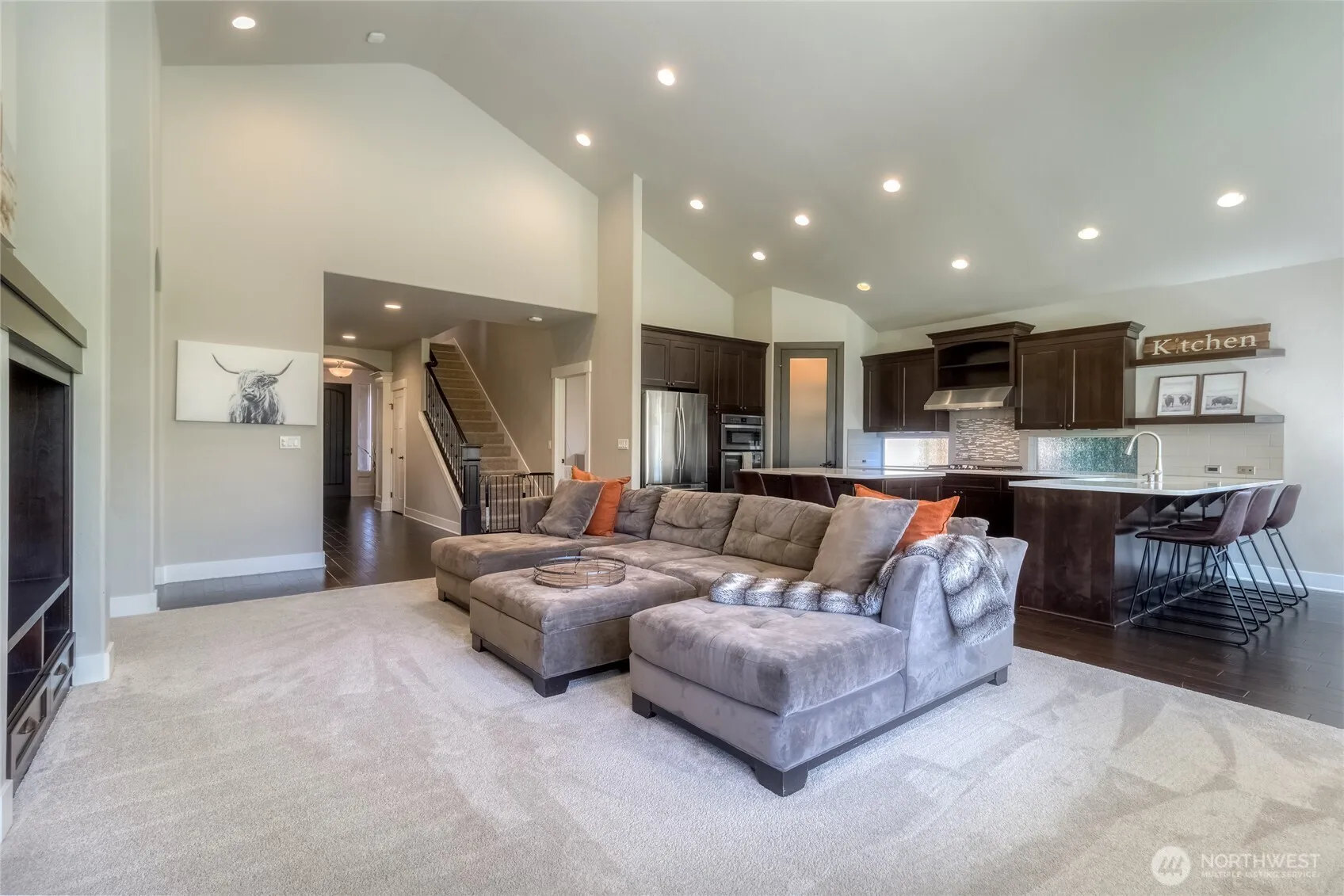 Welcome to Provenance! This beautifully designed home features an open-concept great room w/ vaulted ceilings, gas fireplace, & custom built-ins, seamlessly flowing into a gourmet kitchen w/ dual eating bars & a generous dining space. Nestled in a peaceful, secluded neighborhood w/ walking paths & meandering creek, this home offers a blend of tranquility & lifestyle. The main level is anchored by a stunning great room featuring vaulted ceilings, expansive windows that flood the space w/ natural light, gas fireplace, & custom built-ins w/ floating shelves—seamlessly flowing into the gourmet kitchen. The primary suite offers vaulted ceilings, large windows overlooking the beautiful backyard, a dual sink vanity, soaking tub, separate shower & walk-in closet. Engineered flooring flows throughout the hallway, kitchen & dining areas. The kitchen is thoughtfully appointed w/ a island offering seating & storage, gas range, peninsula bar seating & a generous pantry. The dining rm connects directly to a covered patio, creating effortless indoor-outdoor living. Upstairs, a private secondary suite & office nook offers flexibility for guests or work-from-home needs. The fully fenced backyard features mature trees, shrubs, raised garden beds, UGS, access to the walking trail & creek. Close proximity to Tranche, where live music & seasonal bonfire gatherings create a vibrant neighborhood atmosphere, as well as Mill Creek Sportsplex w/ playground, lighted pickleball courts, & Bennington Lake