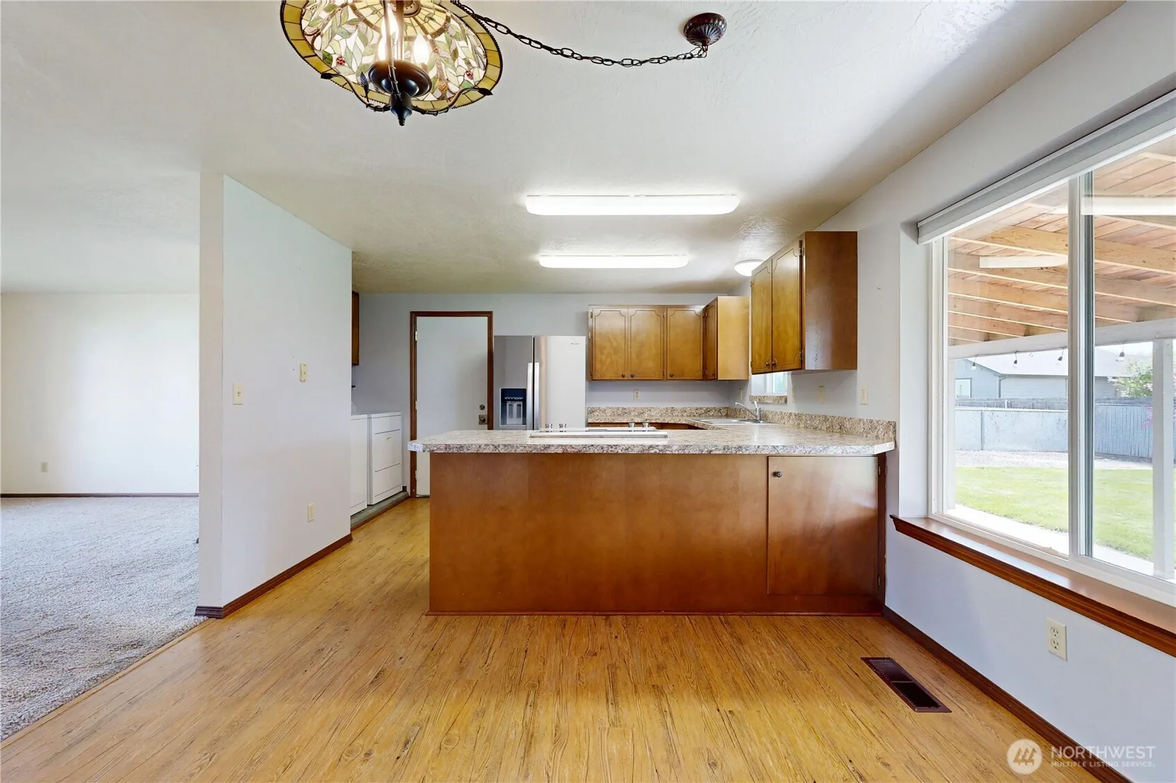 Welcome to this well-maintained 3-bedroom, 2-bath home offering comfort, functionality, and great outdoor space. The primary suite features an ensuite bathroom with walk in shower. The 2-car garage includes extra storage shelving, providing plenty of room for organization and hobbies. Step outside to a covered back patio—perfect for year-round entertaining or quiet evenings at home. The fully fenced yard offers privacy and space for pets, play, or gardening. Shed is a great place to store gardening supplies, lawn mower or bikes. Side RV parking.