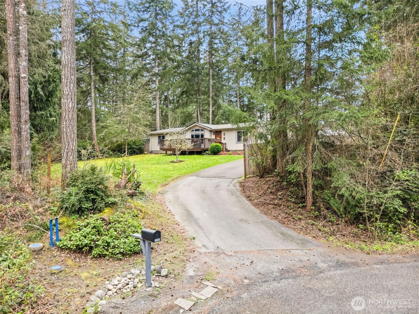 Spacious 3-bedroom, 2 full bath home on a level lot at the end of a cul-de-sac. The property has a private feel with tall trees, a fully fenced yard, and generous front and back outdoor space. A 12×24 deck and patio area provide room to gather, along with an 8×8 shed for additional storage. Inside, vaulted ceilings and large windows bring in natural light. The open layout connects the kitchen—featuring stainless steel appliances—to the dining and living areas. Bedrooms are well-sized with good closet space. The primary bedroom includes an en suite bath and a large closet, while the additional bedrooms and bath are situated on the opposite side of the home, making for a great split floor plan! A spacious utility/mud room offers plenty of shelving and access to the backyard. Driveway allows for ample parking, including space for RV or boat storage. Located close to shopping and with access to three community lake parks. HOA dues include water.