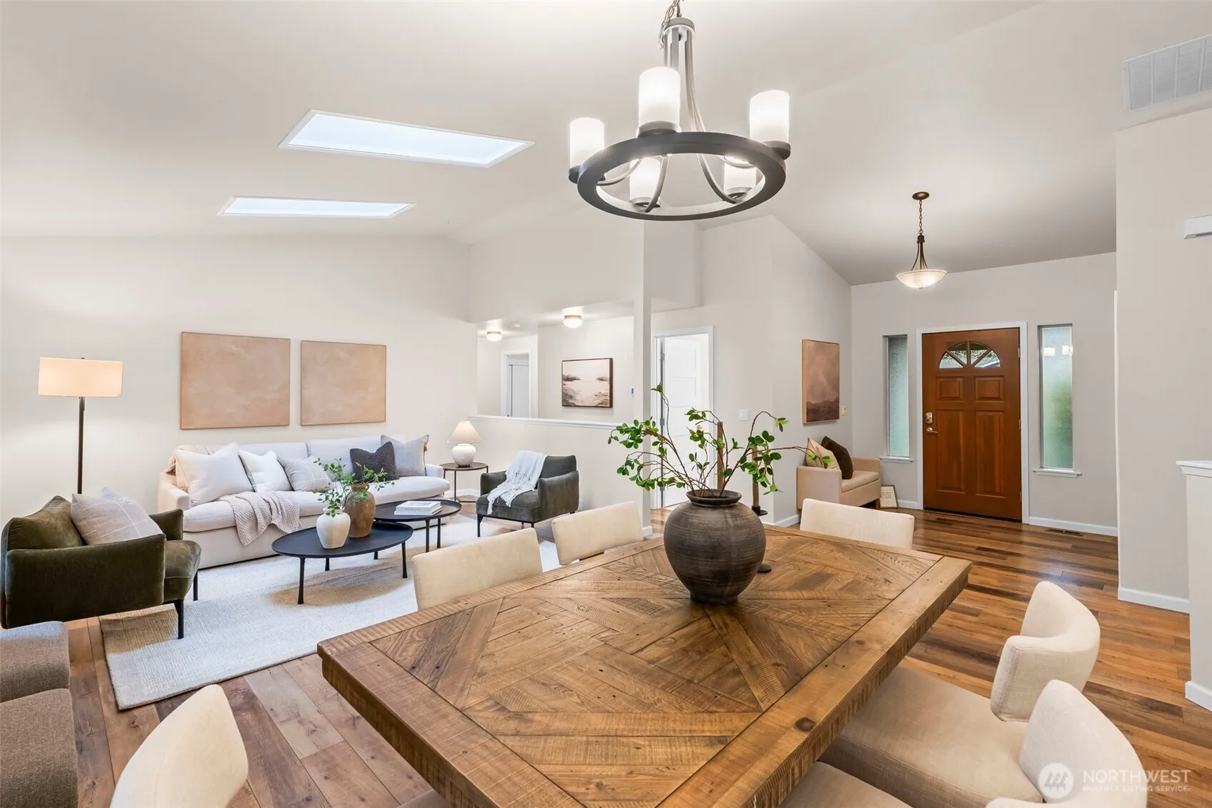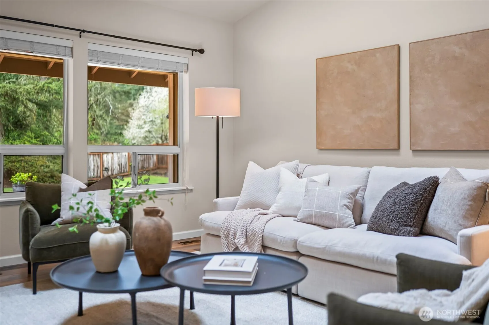 Tucked away on a quiet cul-de-sac in the established Woodridge neighborhood, this inviting 3-bedroom, 2-bath rambler offers comfort, convenience, and easy single-level living. Vaulted ceilings and abundant natural light create an open, airy feel throughout. The updated kitchen features ample cabinetry, a large island, stainless steel appliances, and great functionality for everyday living. New LVP flooring runs throughout the entire home, and a new roof adds peace of mind. Two separate living areas provide flexibility for entertaining, relaxing, or everyday living. Situated on a desirable corner lot, this property offers the benefit of a larger yard while still being close to the Harbor Hill hotspot. The fully fenced yard showcases mature landscaping and an expansive deck—perfect for outdoor enjoyment. Ideally located near Gig Harbor North amenities and the downtown waterfront, with access to the highly regarded Peninsula School District. A great opportunity in Gig Harbor, this home is well-suited for first-time buyers, down-sizers, or anyone seeking a move-in ready home in a convenient location—don’t miss it!