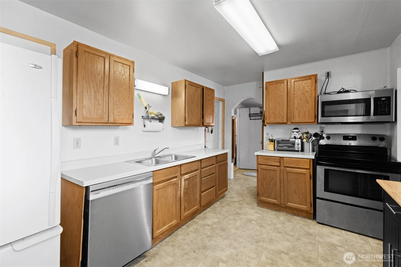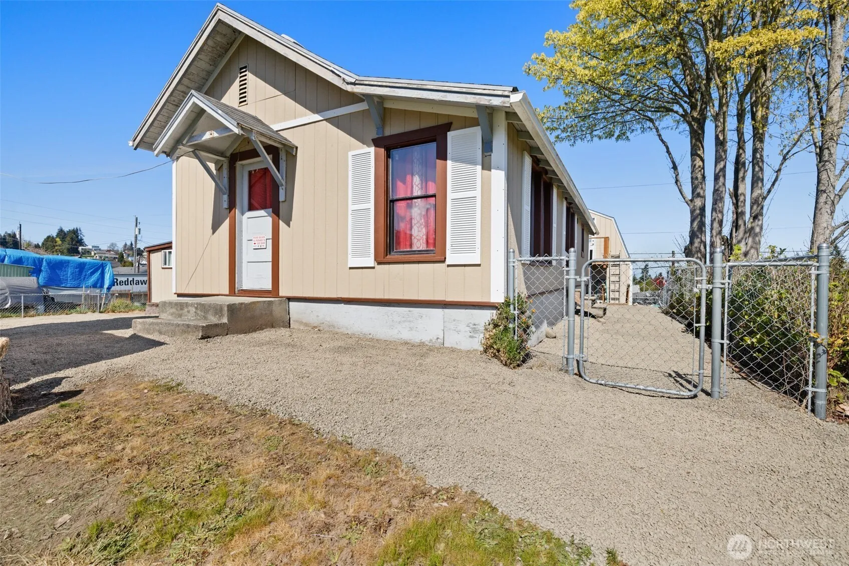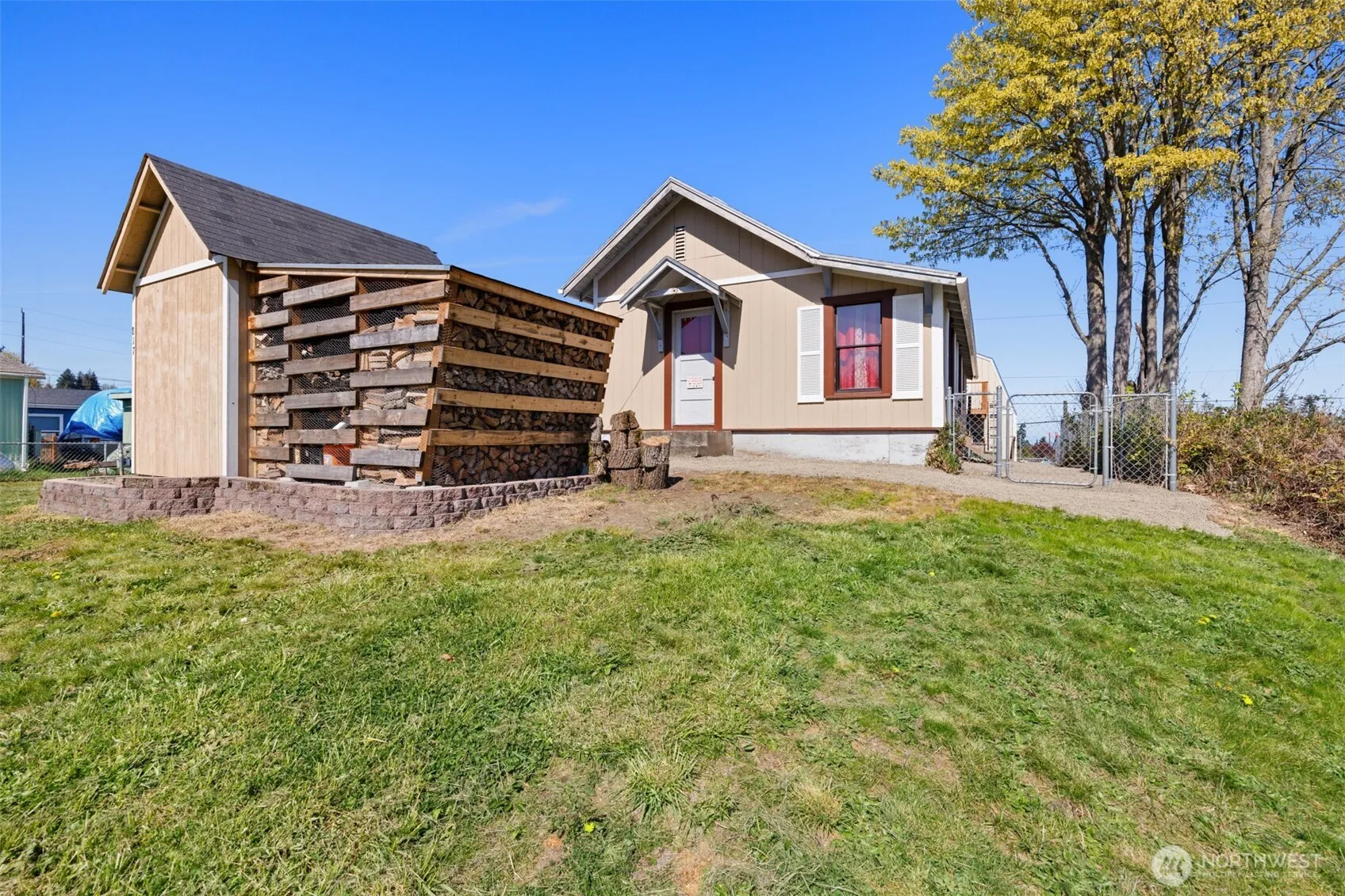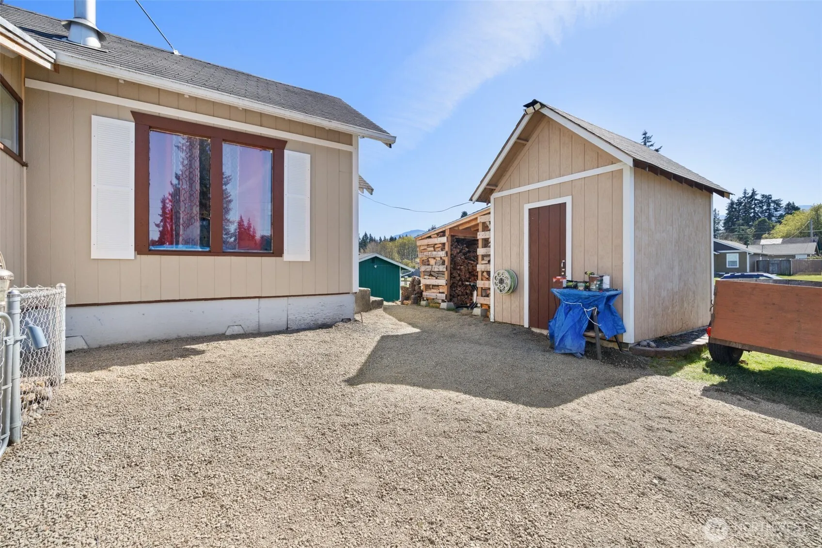 Back on the market with thoughtful cosmetic updates, this home now offers a refreshed feel – Enjoy tranquil city living in this lot-and-a-half home, featuring southern mountain views and ambiance of simplicity. The expansive front yard invites creativity (second living unit, orchard, or?), while partial views of the Straits create a northern backdrop. Enjoy the convenience of street and alley access, finished outbuilding, shed and detached office boasting bird’s-eye views and private deck, perfect for peaceful workdays. Inside, the home features laminate plank floors, custom built-in storage, wood stove and walk-in pantry. The massive bedroom with tall ceilings and oasis mural leads to an organized closet. Step outside to a patio complete with hot tub and grand retaining wall that enhances creativity, privacy, and elevation!