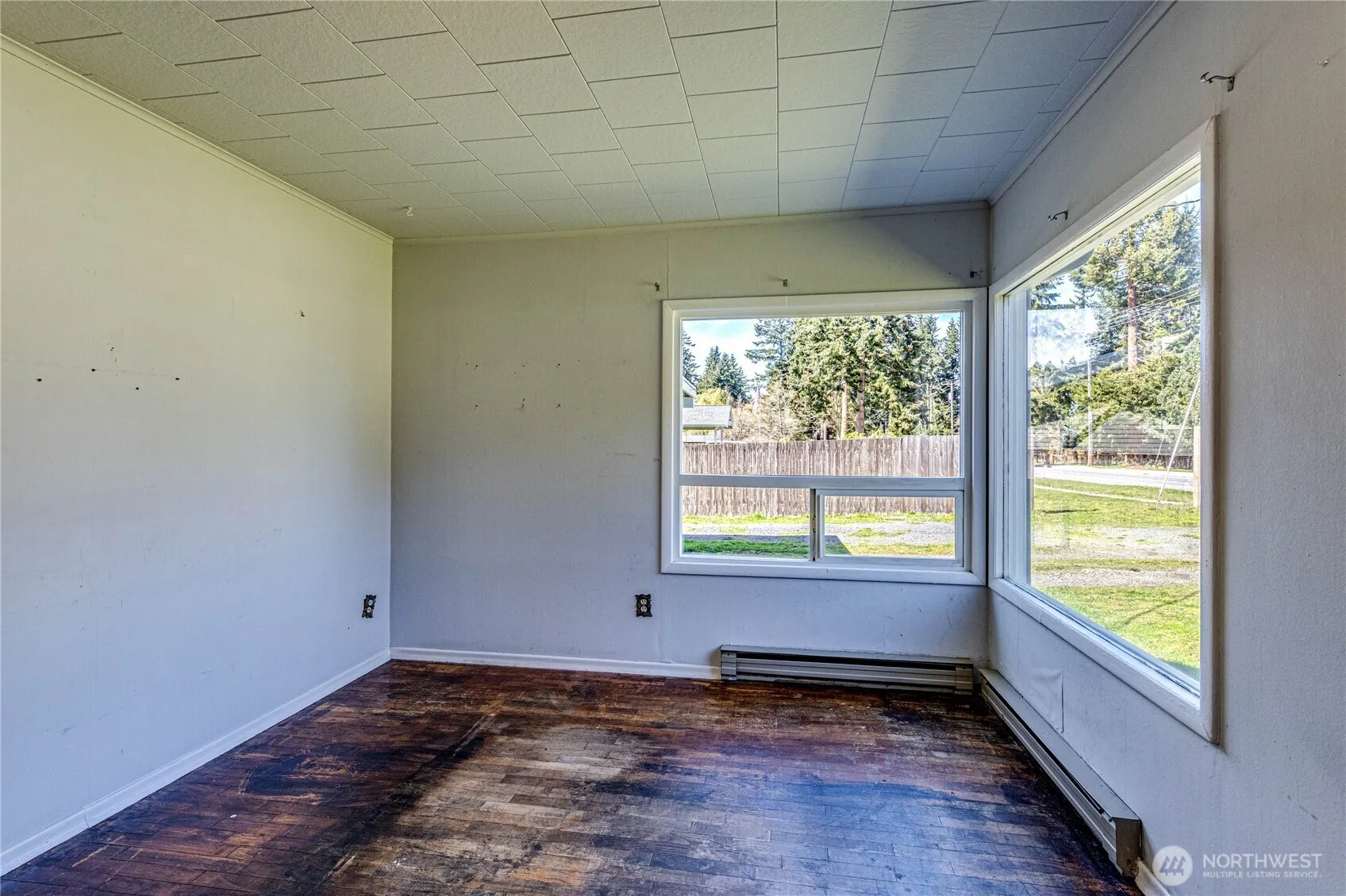 Charming home on just shy of one acre inside the city limits! This 2-bedroom, 1 bath home has LOADS of potential! Original hardwood floors anda cozy wood stove in the living room. Updated kitchen with a separate sunny dining nook, a large utility room, with walk in storage, pantry andlaundry. Don’t miss the bonus room, perfect for an office, studio, game or craft room. Recent improvements include a new septic system anddrain field (2022), new exterior paint, new kitchen sink, and bathroom cabinet. The fully rebuilt bonus room features all-new flooring, electrical,internet, drywall, and windows, creating a versatile, move-in-ready space. The property backs to a greenbelt for added privacy, with ample roomto build a shop, garden, or park your toys. A rare opportunity for an extra large lot and close-to-town convenience.