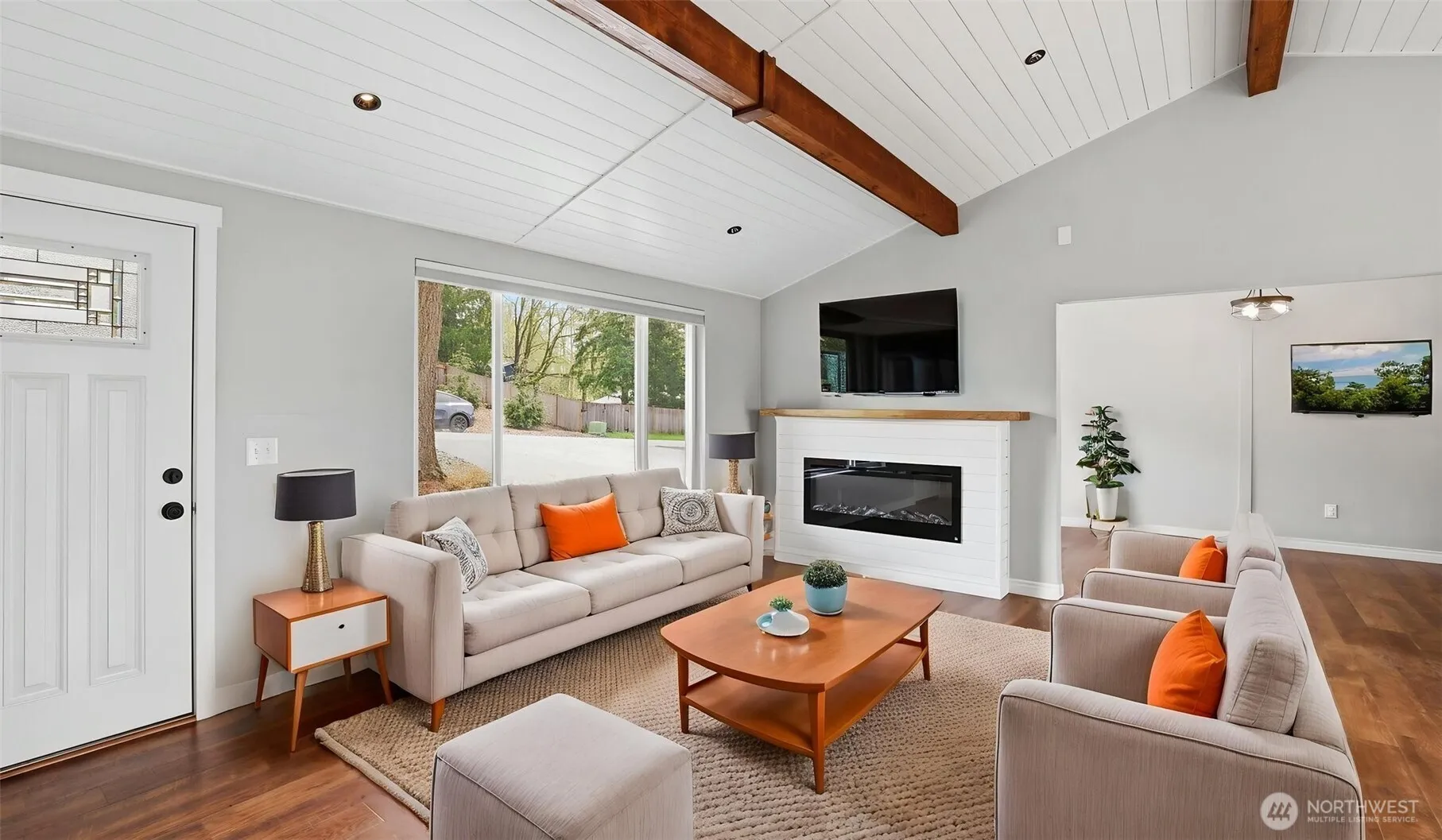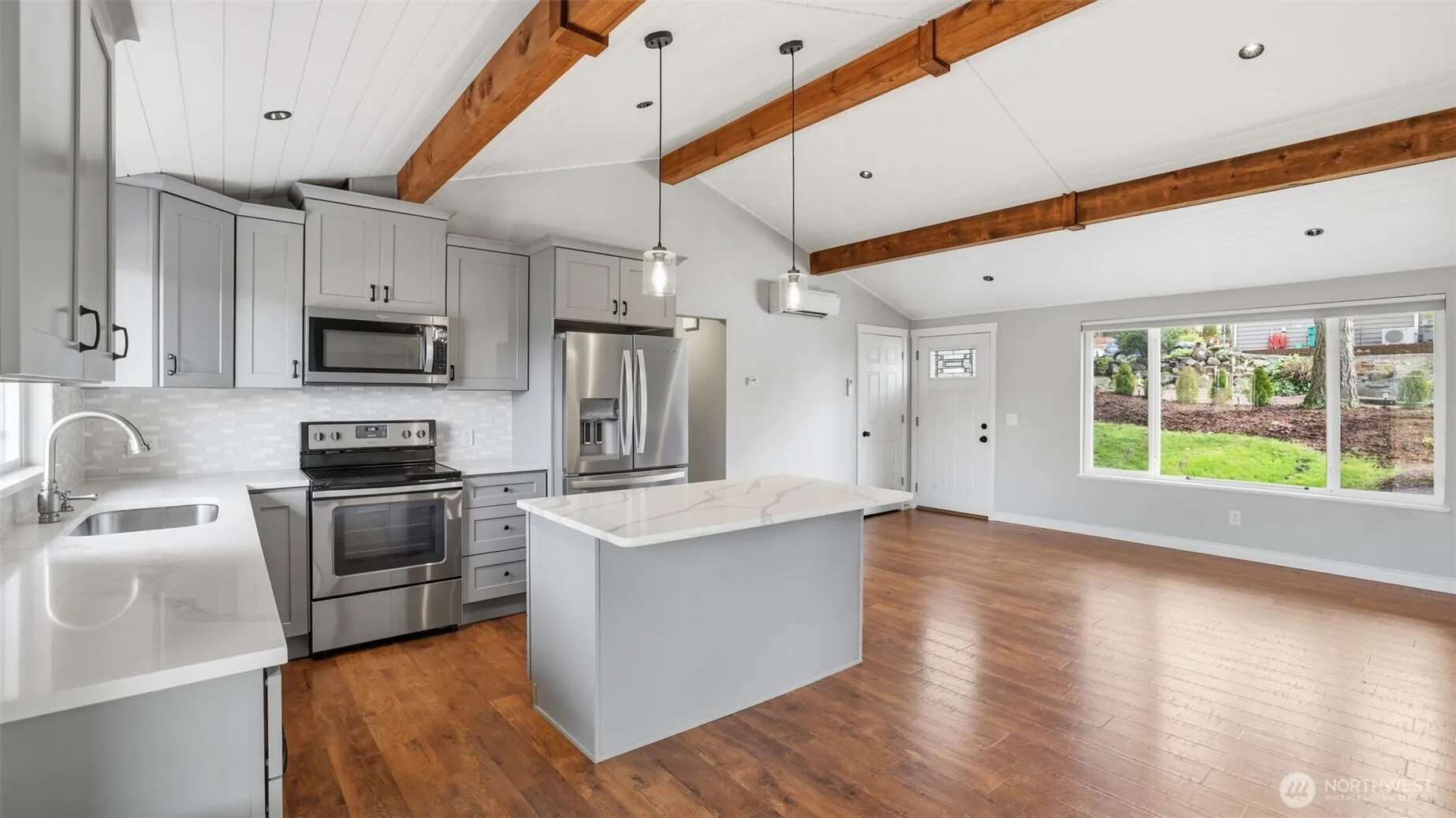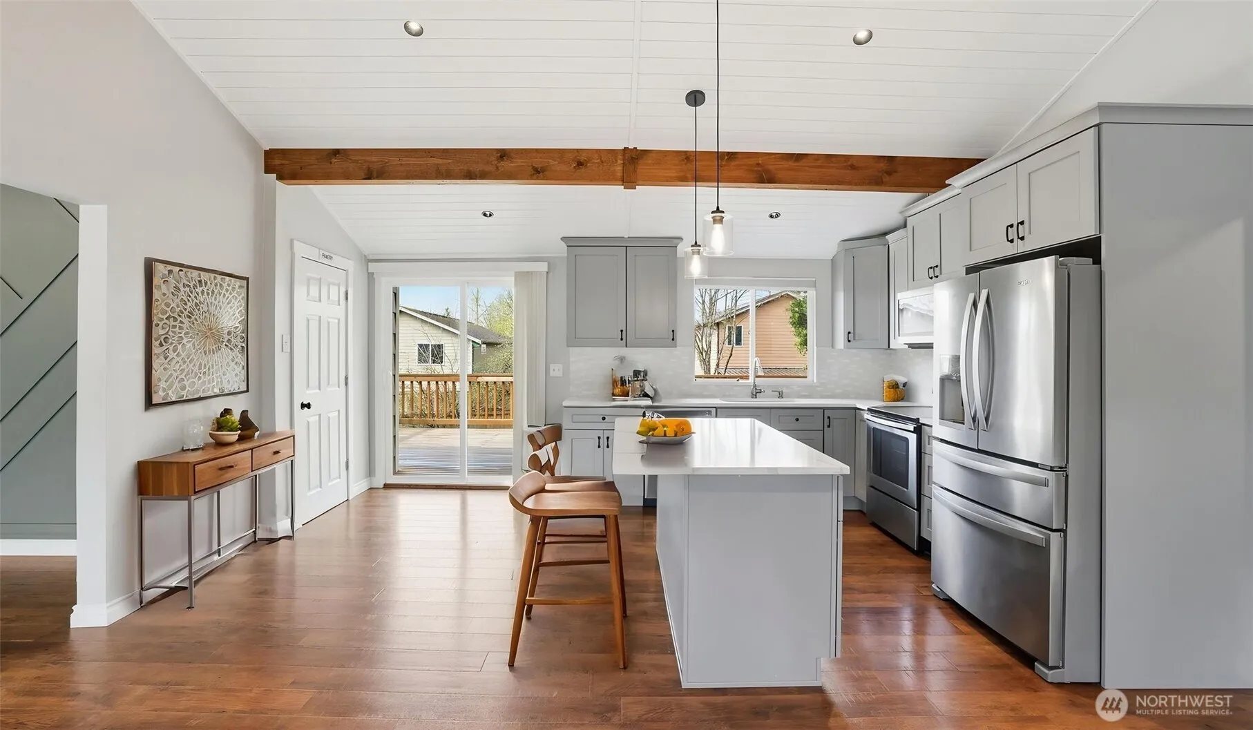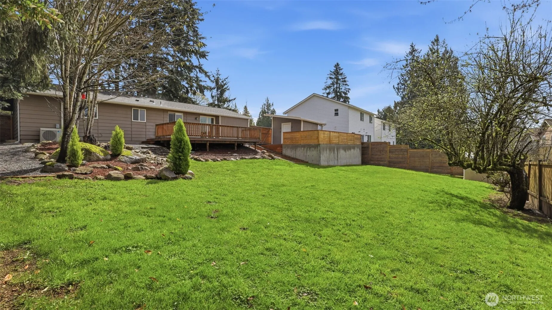 Welcome home to this charming and thoughtfully updated rambler situated on a generous lot in a prime Lake Stevens location. Conveniently located near Highway 9, this home offers an easy commute to Everett and quick access to Costco, schools, shopping, dining, and everyday amenities. The vaulted ceiling in the main family room and kitchen area creates an open, airy feel filled with natural light. The bright kitchen opens to a spacious deck, creating the perfect space for outdoor dining, entertaining, or simply enjoying the expansive backyard. The large yard provides endless possibilities for recreation, gardening, or future enhancements. Two outbuildings add excellent storage and flexibility, including one shed equipped with power for projects or workspace use. Plenty of parking is available with a sizable driveway and additional street parking. Stay comfortable year-round with the efficient mini-split heating and cooling system installed in 2019. Recent exterior updates, including a new roof and fresh paint in 2019, add lasting value and peace of mind.