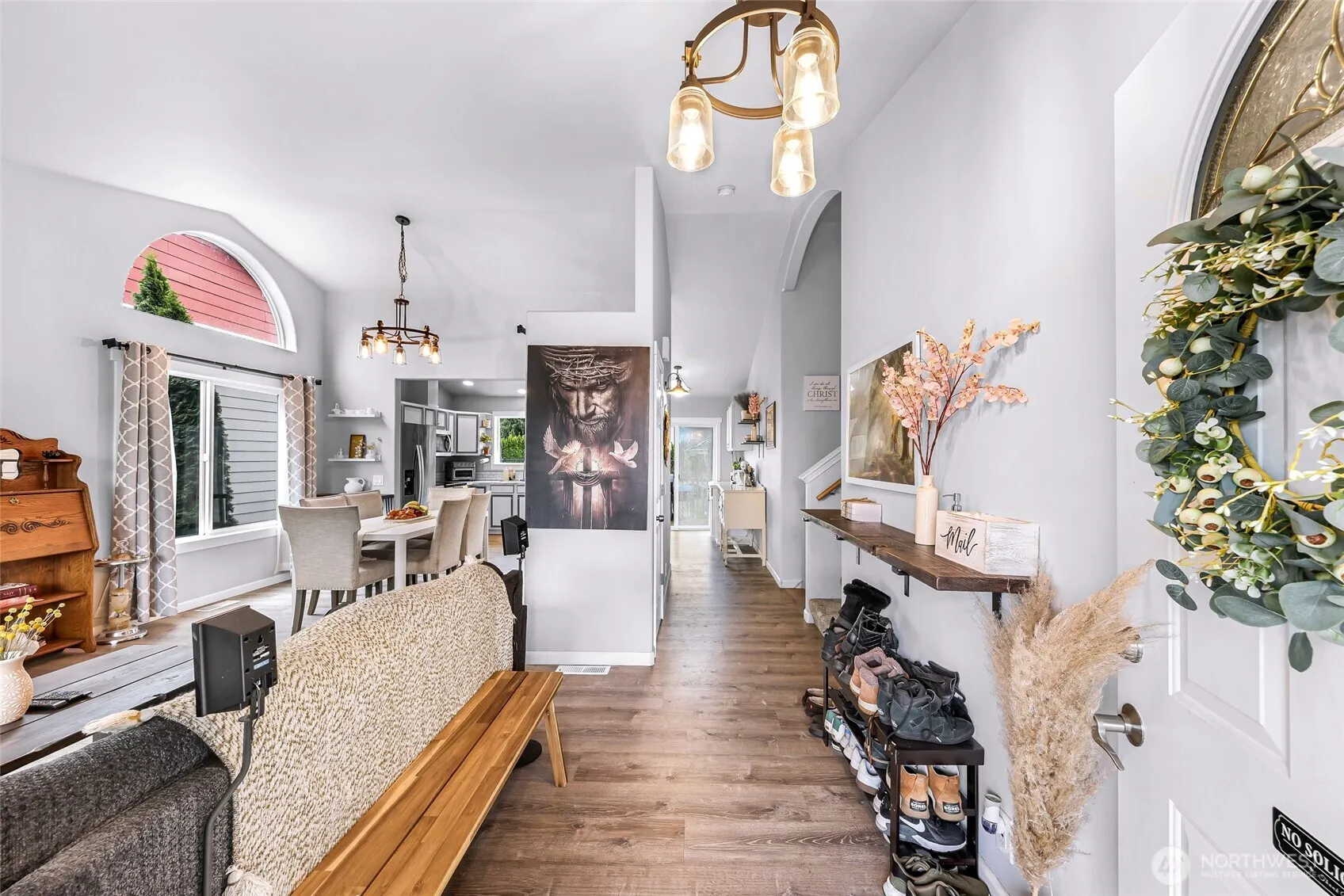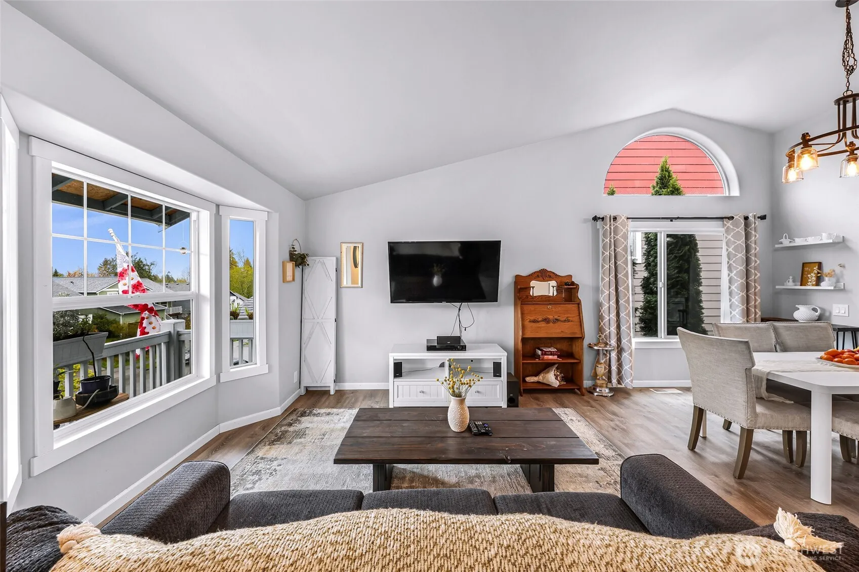 Well-designed and move-in ready, this 4-bedroom home in the sought-after Baker Vista neighborhood delivers space and flexibility in the heart of Lake Stevens. Vaulted ceilings and updated flooring create an inviting main level where the living and dining areas flow seamlessly into a refreshed kitchen, complete with a large pantry with sliding barn door for added style and function. A slider off the kitchen opens to the back deck, overlooking a level, fully fenced yard with dedicated garden space and a newly added firepit patio—perfect for entertaining or relaxing. The property backs to a retention pond, offering added privacy and an open, peaceful backdrop. Upstairs, you’ll find two secondary bedrooms, a full bath, and a primary suite featuring a ¾ en-suite bath and walk-in closet. The lower levels expand your living options with a spacious bonus room anchored by a gas fireplace, plus a generous laundry room. On the bottom level, a fourth bedroom, additional bath, and a large flex space provide incredible versatility, ideal for a potential 5th bedroom, guest suite, or future kitchenette setup for multi-generational living or rental potential. Recent upgrades include a newer roof (22/23), flooring and all new light fixtures throughout. Enjoy Mt. Pilchuck views and a functional floor plan designed to adapt to your needs. Conveniently located min to Frontier Village, and a short drive to Boeing, the Seattle Premium Outlets, I-5, Hwy 9, parks, schools, and Lake Stevens amenities.
