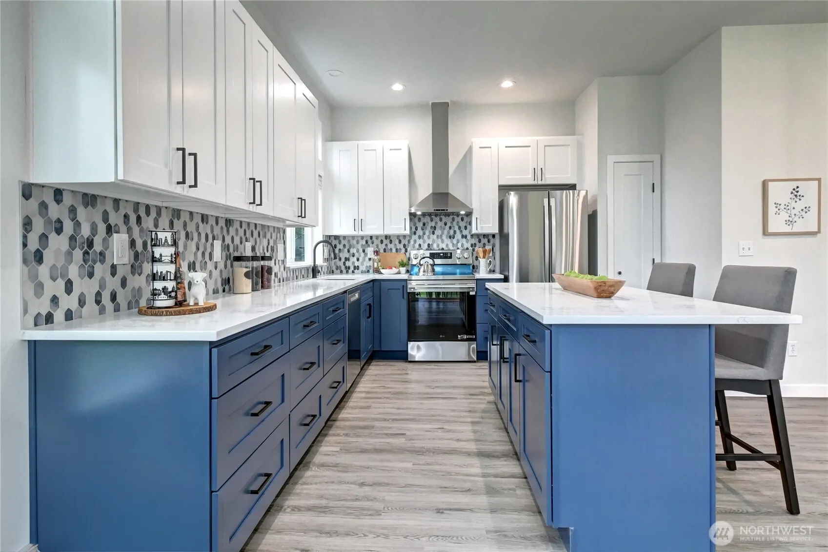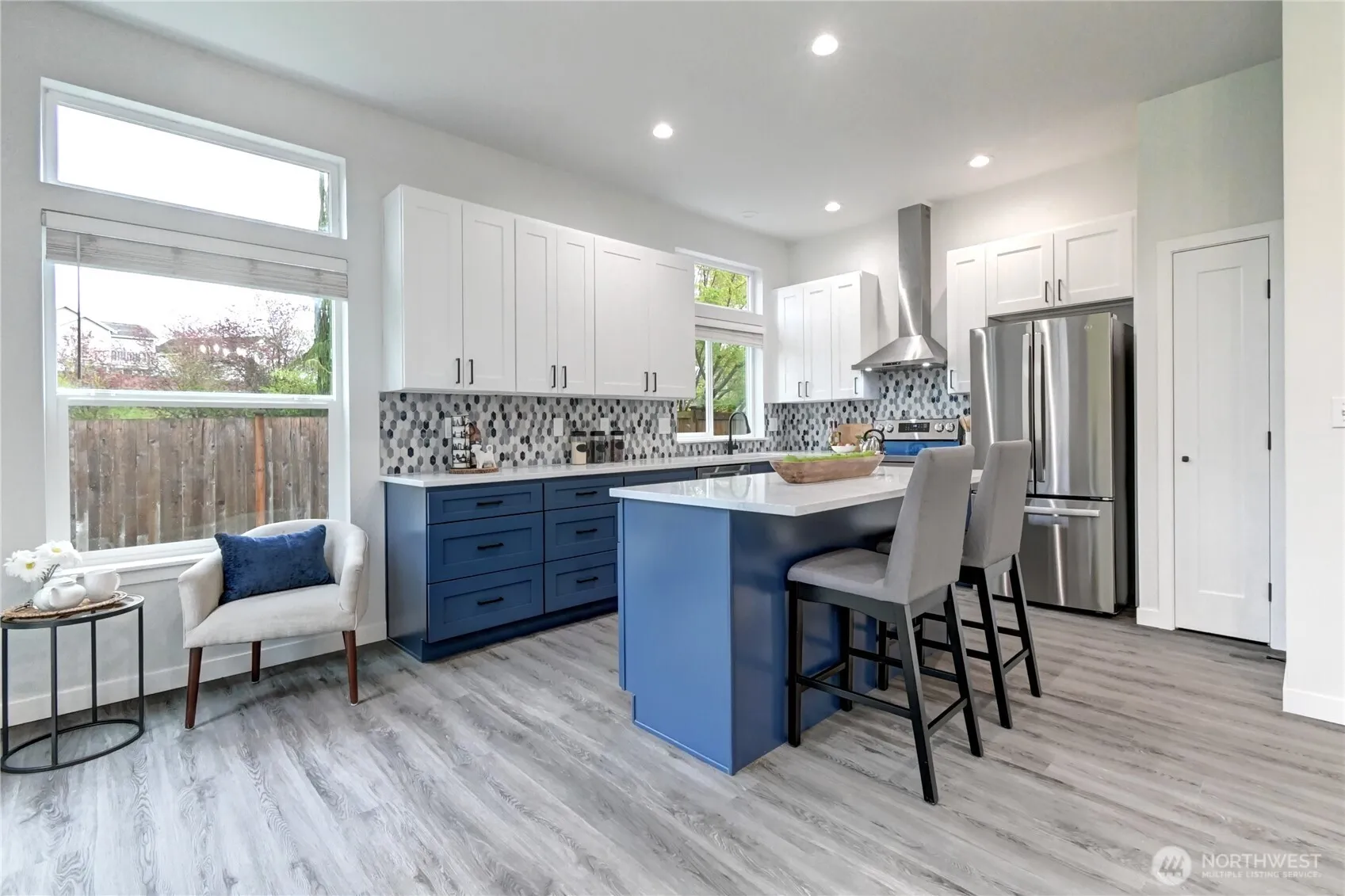 Step into a home thoughtfully designed with comfort, quality and everyday living in mind in this beautifully updated, move-in ready residence in the sought-after Soper Hill area of Lake Stevens. This inviting split-level layout features just four steps between the two levels and has been refreshed from top to bottom with attention to detail throughout. Soaring ceilings and expansive windows fill the open-concept living spaces with natural light, creating a bright and welcoming atmosphere you’ll love coming home to. The stunning remodeled kitchen is the true heart of the home, featuring a large island, quartz countertops, abundant cabinetry and brand-new stainless-steel appliances, perfect for both daily living and entertaining. The spacious primary suite offers a peaceful retreat with a charming bay window, walk-in closet and private ensuite bath. Durable LVP flooring, modern white doors with sleek black hardware, and energy-efficient LED lighting add style and function throughout. Enjoy a fully fenced, level backyard backing to open space, ideal for relaxing evenings, play, or gatherings, on a generous lot tucked in a quiet cul-de-sac. Major updates include a new roof, siding, fresh interior/exterior paint, and a new furnace. Pre-inspected with a one-year home warranty, this home offers comfort, convenience and peace of mind. Located in a highly rated school district, this Lake Stevens gem offers easy access to I-5, Paine Field, public transit, shopping, dining and the lake.