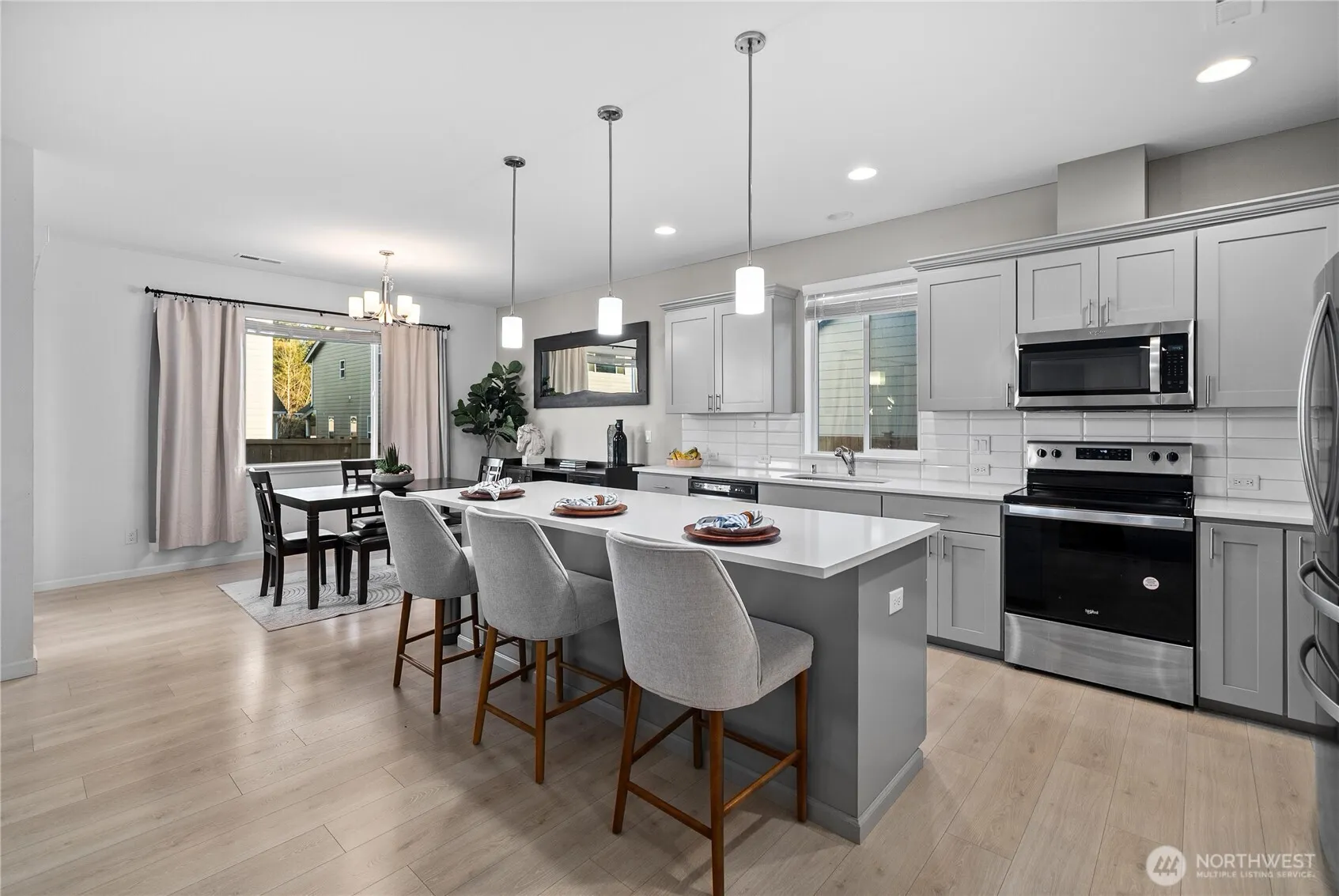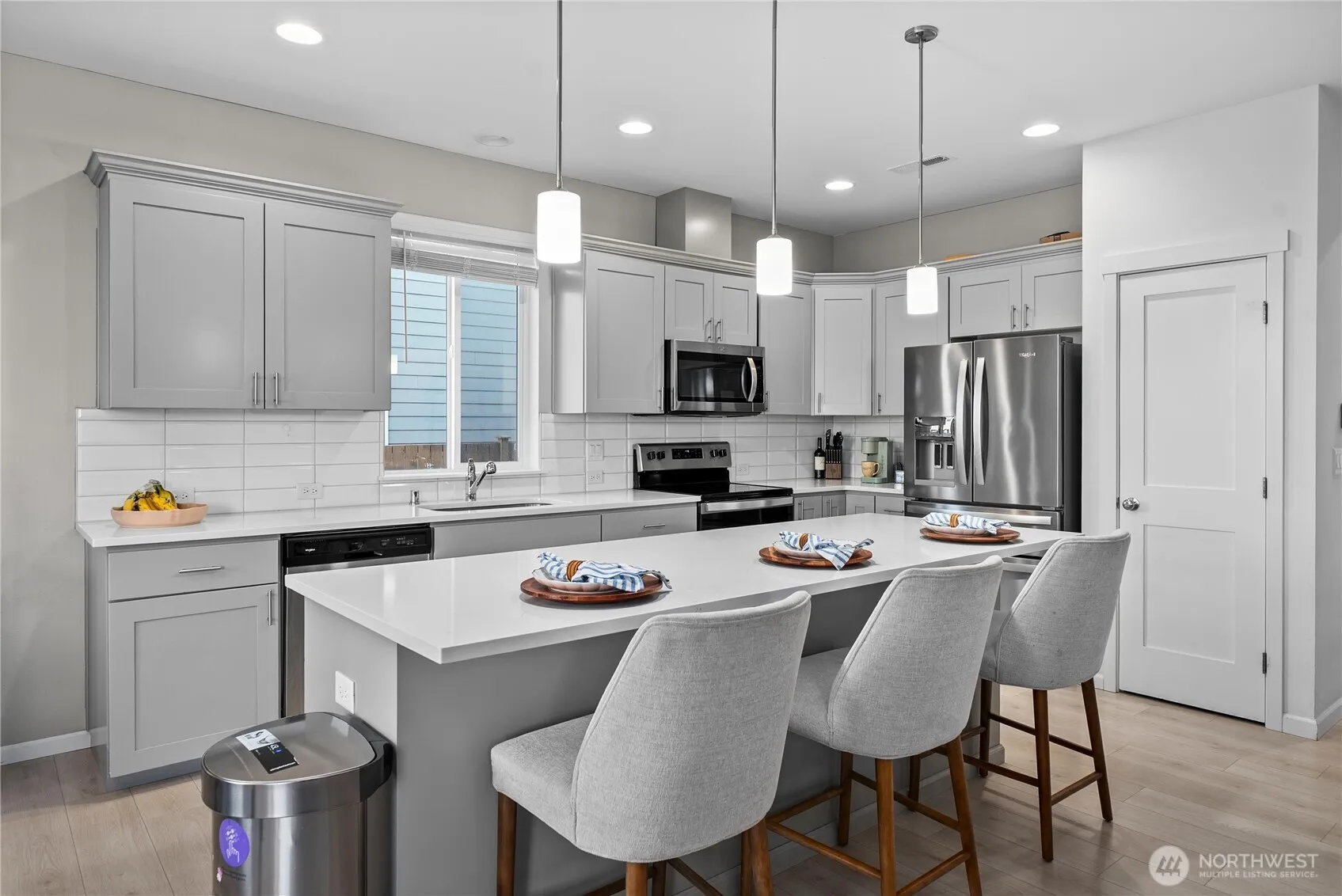 Don’t miss this sprawling, like-new 3-story home offering 2,737 sq ft of living space, featuring a rare 3-car garage in Yelm’s newest premium neighborhood and it happens to be Soundbuilt’s BEST floor plan they are no longer building! This massive 4-bedroom home offers an open-concept main level with a seamless living and dining area, highlighted by quartz countertops, LVP flooring, and stainless steel appliances. Upstairs, you’ll find generously sized bedrooms and living space, while the third floor boasts an expansive bonus room with a full bathroom—perfect as a second primary suite, guest retreat, or media space. Enjoy year-round outdoor living with a covered back patio-plus a fully fenced backyard. Stay comfortable all year with an efficient heat pump and central A/C. Modern finishes, flexible living spaces, and thoughtful design throughout make this home stand out from the rest. Short sale subject to lender approval. List price not yet approved by lender and may not reflect payoff amount. Allow time for third-party approval. Property sold as-is.