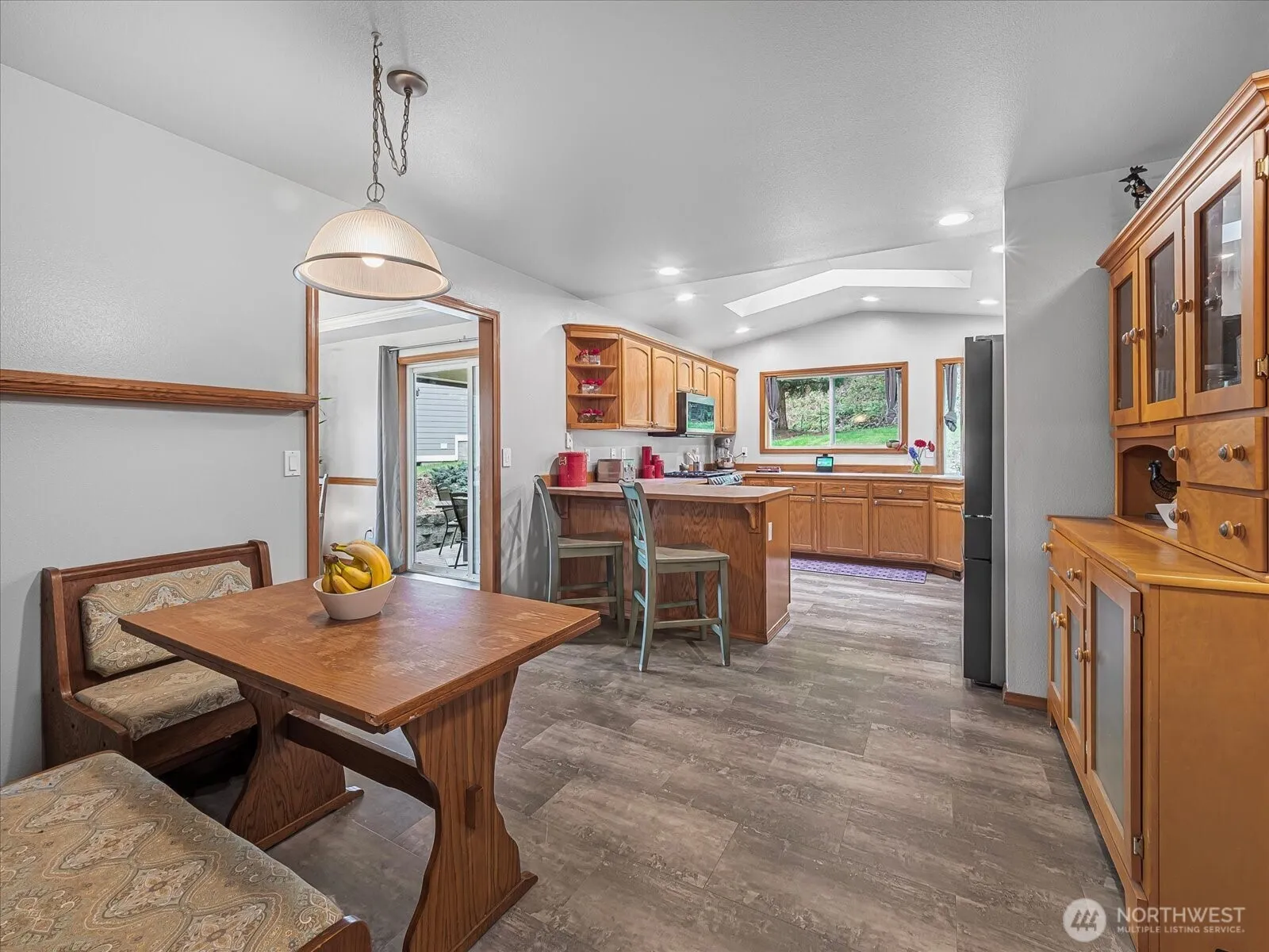 Welcome to a home designed for entertaining with room to grow and views of the Orting Valley. Set within the quiet, gated Horizon Ridge community, this beautifully maintained five bedroom home offers generous living spaces, including a large home office/library, media and gaming room, three car garage, air conditioning, and your very own PUB. At the heart of the home is a spacious eat-in kitchen featuring a gas range, newer stainless appliances, pantry, skylight, bar seating, and space for a dinette table, perfect for busy mornings. The light filled dining room features a coffered ceiling and opens to the covered back porch, extending your living space for year round enjoyment. The primary suite is a true retreat with vaulted ceilings, space for a king size bed and sitting area, plus a jetted tub, double shower, and large walk in closet. Media and gaming enthusiasts will love the dedicated media room with the adjoining in house PUB, ideal for entertaining or game nights. Additional highlights include a laundry room with window and utility sink, skylights throughout, and an easy to maintain backyard with sprinkler system. Enjoy watching Fourth of July fireworks from the living room, primary bedroom, or library, and celebrate local favorites like Orting’s Pumpkin Fest and July 4th Festival. Easy commute to JBLM or the Sumner Sounder / rail station.