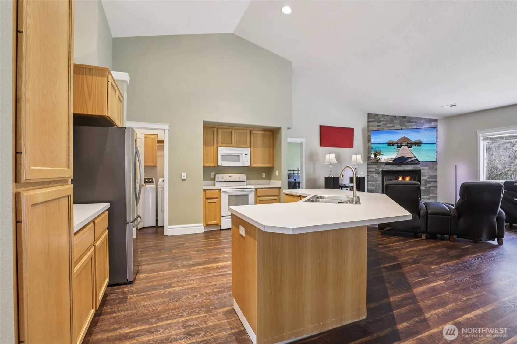 **UP TO $6K CREDIT OR 1% DISCOUNTED INTEREST RATE FOR THE FIRST YEAR OF LOAN WHEN YOU USE PREFERRED LENDER. CALL LA FOR DETAILS**Beautifully maintained and full of natural light, this inviting one-level home sits on 5+ private acres—perfect for anyone looking for quiet, space, and lots of privacy. The open layout features high, vaulted ceilings and tons of windows that bring in natural light and showcase the peaceful surroundings. The floor-to-ceiling custom rock fireplace is a standout feature and makes the living space feel warm and welcoming. The home also has new flooring and fresh paint, so it’s ready to move right in. The 40+ ft tandem drive-through garage is currently being used as a shop and offers incredible flexibility—perfect for projects, storage, or hobbies. There’s also plenty of room for RV parking and all your toys. Step outside onto the deck—an ideal spot to relax and take in the serene, private setting.
