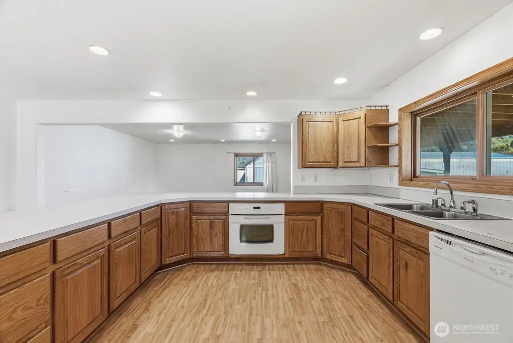 Dont miss your chance to own this nearly 2500 sq ft home with a SHOP, large lot, and situated on a dead end street for added privacy! Home was added onto/remodeled in 2002 and features; Huge kitchen, peninsula seating, dual ovens, custom hardwood cabinetry throughout, large primary bed/bath combo, with large bedrooms and bonus rooms. Wood burning stove keeps the place cozy in the winter months. Outside you will enjoy big covered deck for entertaining, an oversized yard, and a 24×50 shop with power! Lots of room for RV parking and or trailers. This home has lots to offer and is ready for you!
