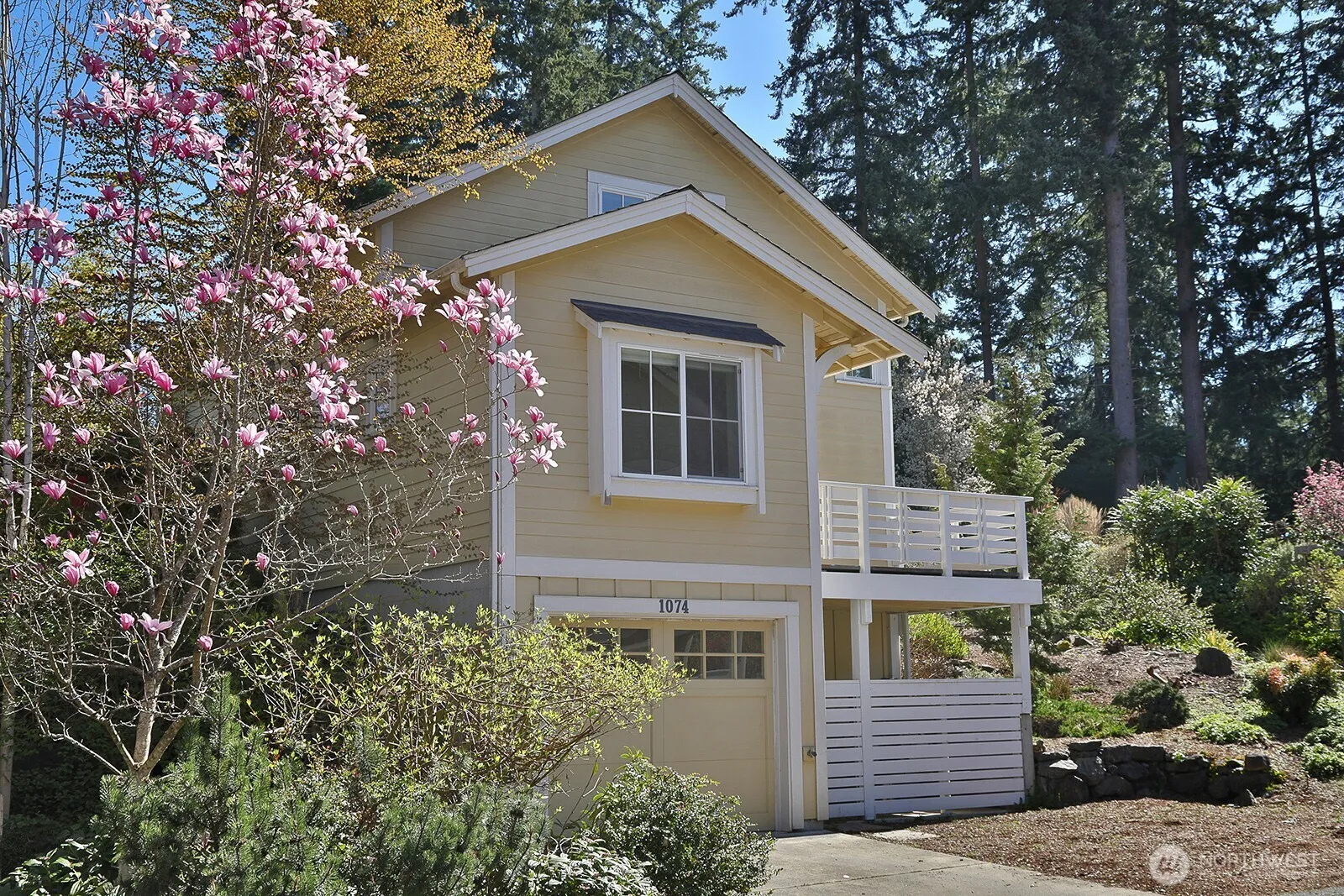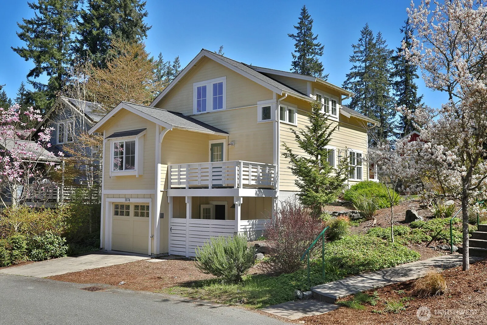 Welcome to The Highlands, a thoughtfully designed community in the seaside village of Langley on beautiful Whidbey Island. Architect Ross Chapin’s cottage-style homes are known for their light-filled, imaginative, and neighborly design, and this newly refurbished residence is a wonderful example. This home features new flooring throughout, two bedrooms, two bathrooms, and a welcoming living room with a fireplace and built-in shelving. The updated kitchen includes a new refrigerator, microwave, fixtures, and more. A spacious dining area provides room for gatherings, while the upstairs bonus room offers flexible space for an office, studio, or guest area. Enjoy views of the common areas and native landscaping from the upper-level deck. The oversized garage provides abundant storage along with space for vehicles and gear. Residents of The Highlands enjoy open spaces, trails, common areas, and shared work accommodations. Just minutes away is the vibrant heart of Langley, offering unique shops, restaurants, art galleries, wine bars, coffee cafés, an ice cream shop, live theatre, glassblowers, a museum, a marina, and more. This is a thriving artistic community with endless opportunities for enjoyment.