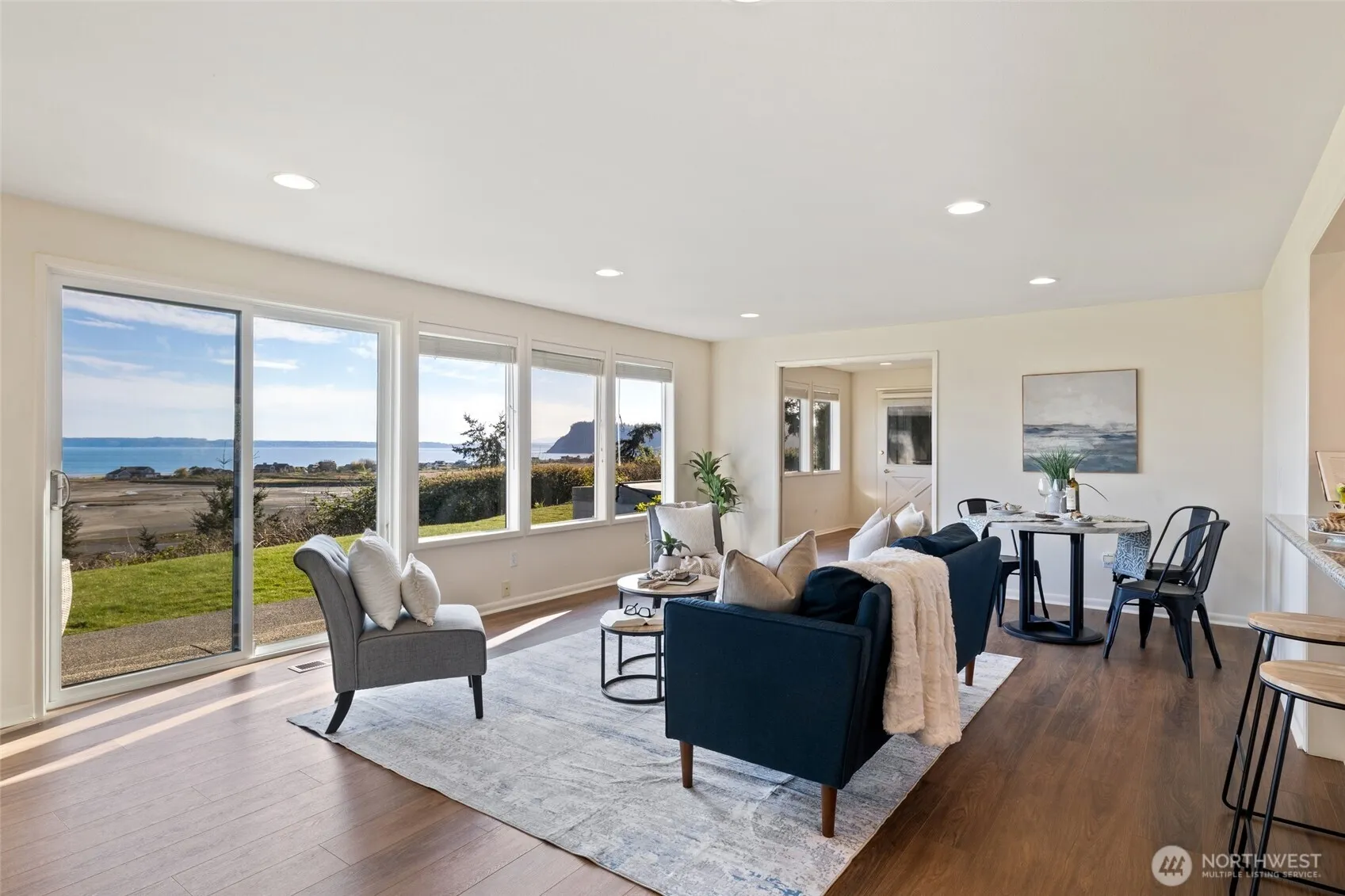 Stunning south-facing bluff home with breathtaking front-and-center views of Seattle, Mount Rainier, the Olympic Mountains, the Kitsap Peninsula, and Double Bluff. Enjoy a front-row seat to the shipping channel from this quintessential Whidbey Island bluff property. This rarely available, beautifully updated home sits on the desirable water side of Useless Bay Colony. Recent upgrades include beautiful new floors throughout the main living areas, including the office. The spacious layout offers an ideal setup for holiday gatherings and effortless entertaining. Additional highlights include a massive garage with shop space and ample parking. Living in the Colony gives you the opportunity to join the Useless Bay Golf and Country Club and enjoy its outstanding amenities. A fantastic golf course, along with a pool, tennis and pickleball courts, and a fabulous on-site restaurant. This is true Whidbey Island living at its finest—spectacular views, water-side location, and access to exceptional club amenities. Don’t miss this special opportunity!