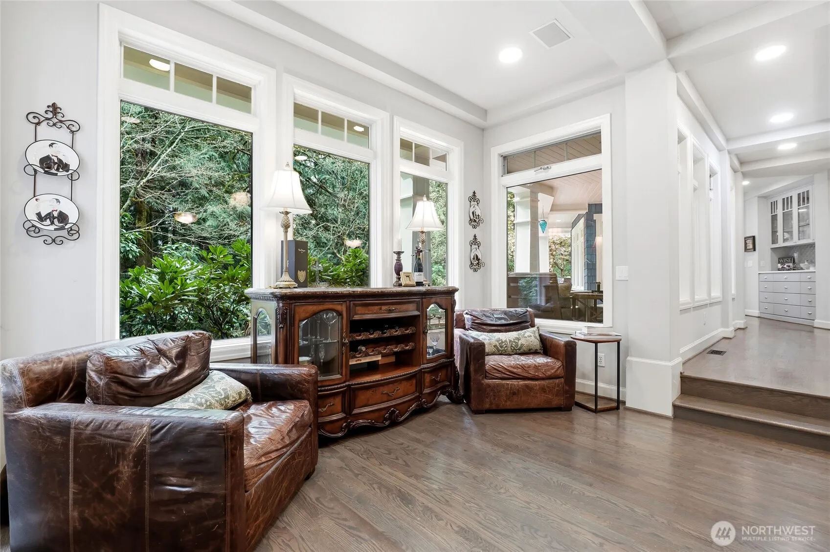 Private Luxury Retreat on 4.38 Acres in Coveted Blakely Ridge. Discover unparalleled privacy and sophistication in this stunning 4-bedroom, 2.25-bath, 4,195 sf home. Step inside to vaulted ceilings, expansive millwork, and beautiful built-in cabinetry throughout—including the bedrooms. Floor-to-ceiling windows flood the main level with natural light, while hardwood floors flow seamlessly from room to room. Two fireplaces set the perfect tone: a cozy gas fireplace in the family room and a robust insert in the living room. The chef’s kitchen is a true showstopper, featuring double Wolf ovens, a 5-burner Wolf range, Cambria Quartz counters, a walk-in pantry, and a wine fridge. The luxurious primary offers a private balcony, a spa-like bath with a claw-foot tub, and walk-in closet w/ Closet Factory shelving. 4th bed makes a great media/bonus rm. Alexa voice-controlled lighting throughout the home adds modern ease. Outdoor living shines: a covered porch perfect for enjoying nature, low-maintenance landscaping, and your own swim spa for year-round exercise and relaxation. Attached 3-car garage w/ an additional 1-car garage (currently a home gym) w/a huge storage loft, providing flexible space. Detached garage is plumbed for potential ADU. Two driveways, extra parking, quiet neighborhood. This home delivers resort-style living with every thoughtful upgrade—Fenton Glass chandeliers, smart features, and uncompromising quality. Don’t miss your chance to call this private estate home.