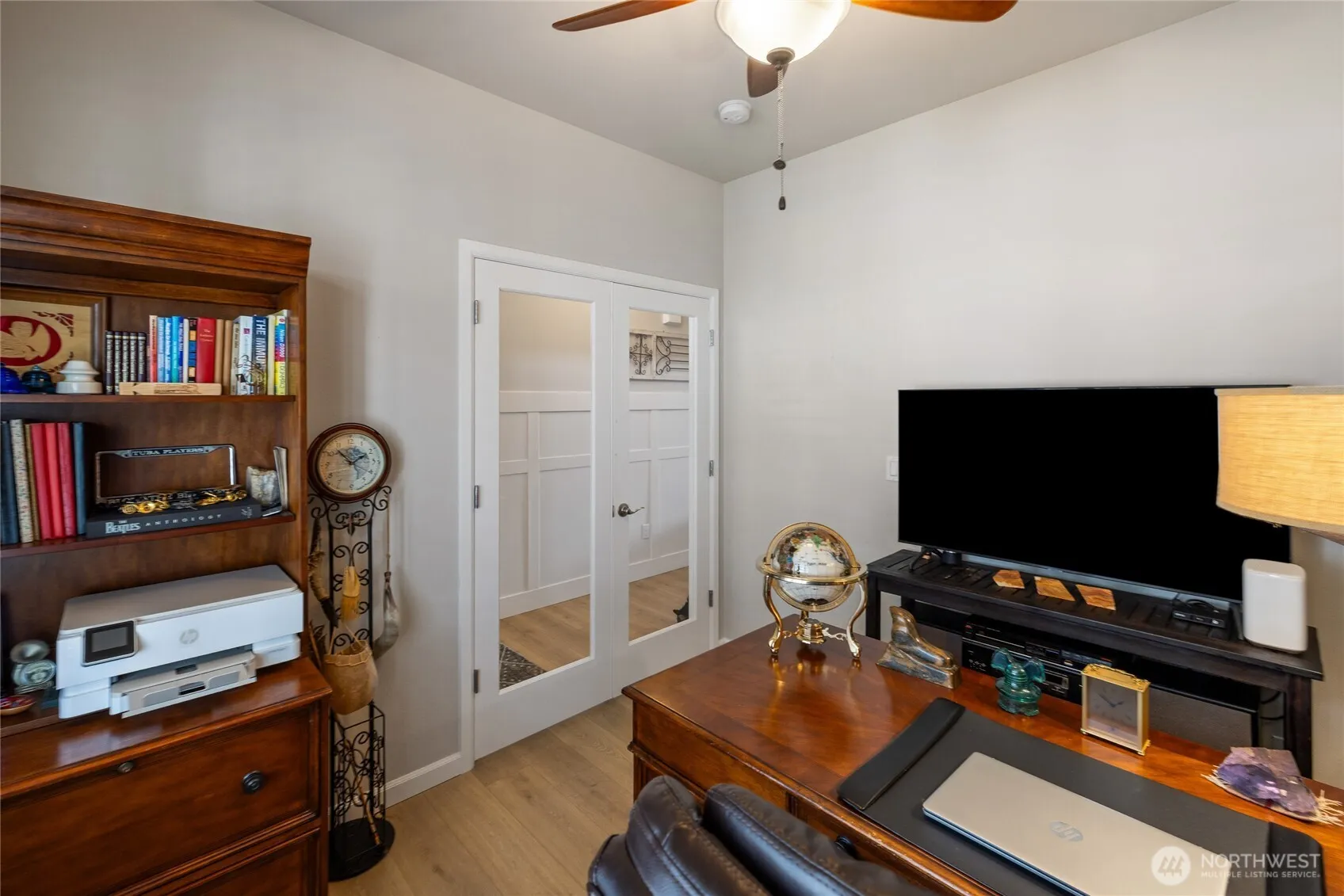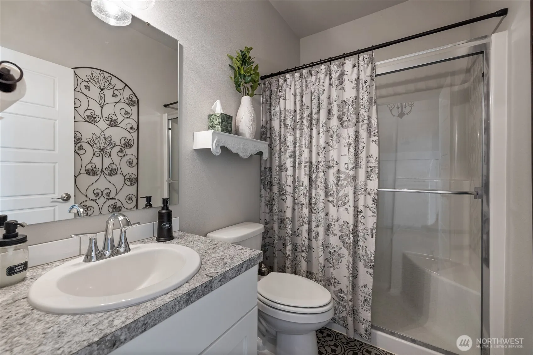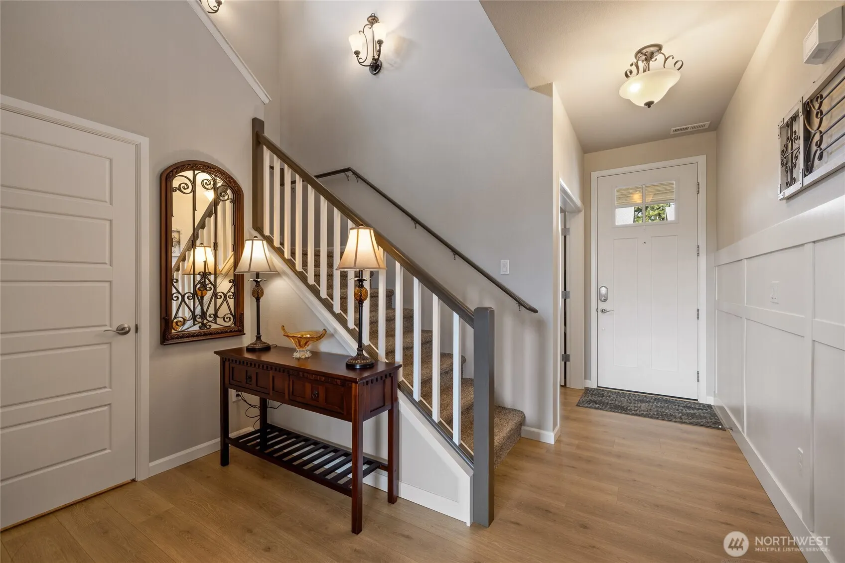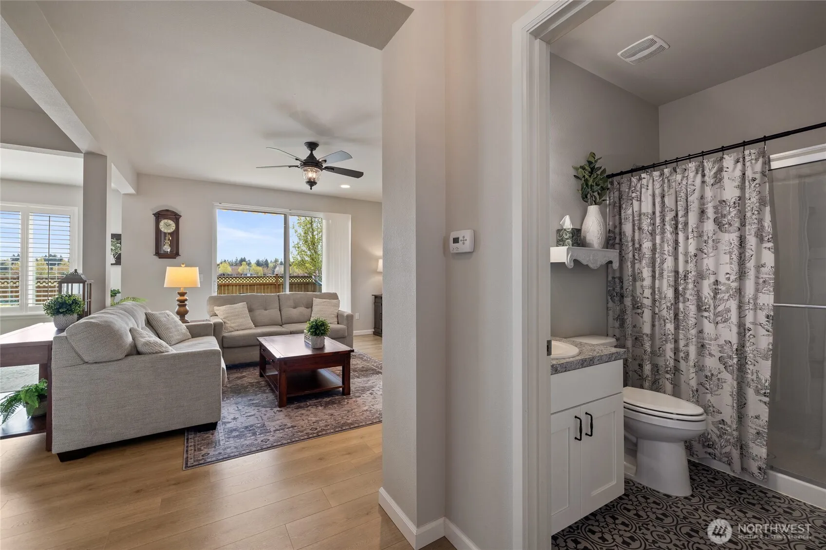 Welcome home to this exquisitely maintained residence in Horizon Pointe, offering space, functionality, and privacy, with beautiful plantation shutters throughout. This property features laminate hardwood throughout the main level, a dedicated downstairs office with French doors, and a well-appointed kitchen with granite countertops, staggered cabinetry, and a walk-in pantry for added storage.Upstairs, all bedrooms include walk-in closets, while the expansive primary suite showcases vaulted ceilings, an oversized walk-in closet, and a 5-piece bath with separated dual sinks and a tiled shower.Step outside to a truly private backyard with no neighbors beyond the rear fence, plus an expandable awning over the patio—perfect for relaxing or entertaining year-round. Just steps from Horizon Pointe Park, enjoy easy access to open space and recreation. Conveniently located near JBLM and shopping, this property offers privacy where it matters and access to everything else. NO HOA DUES! Pre-inspection available for your piece of mind.