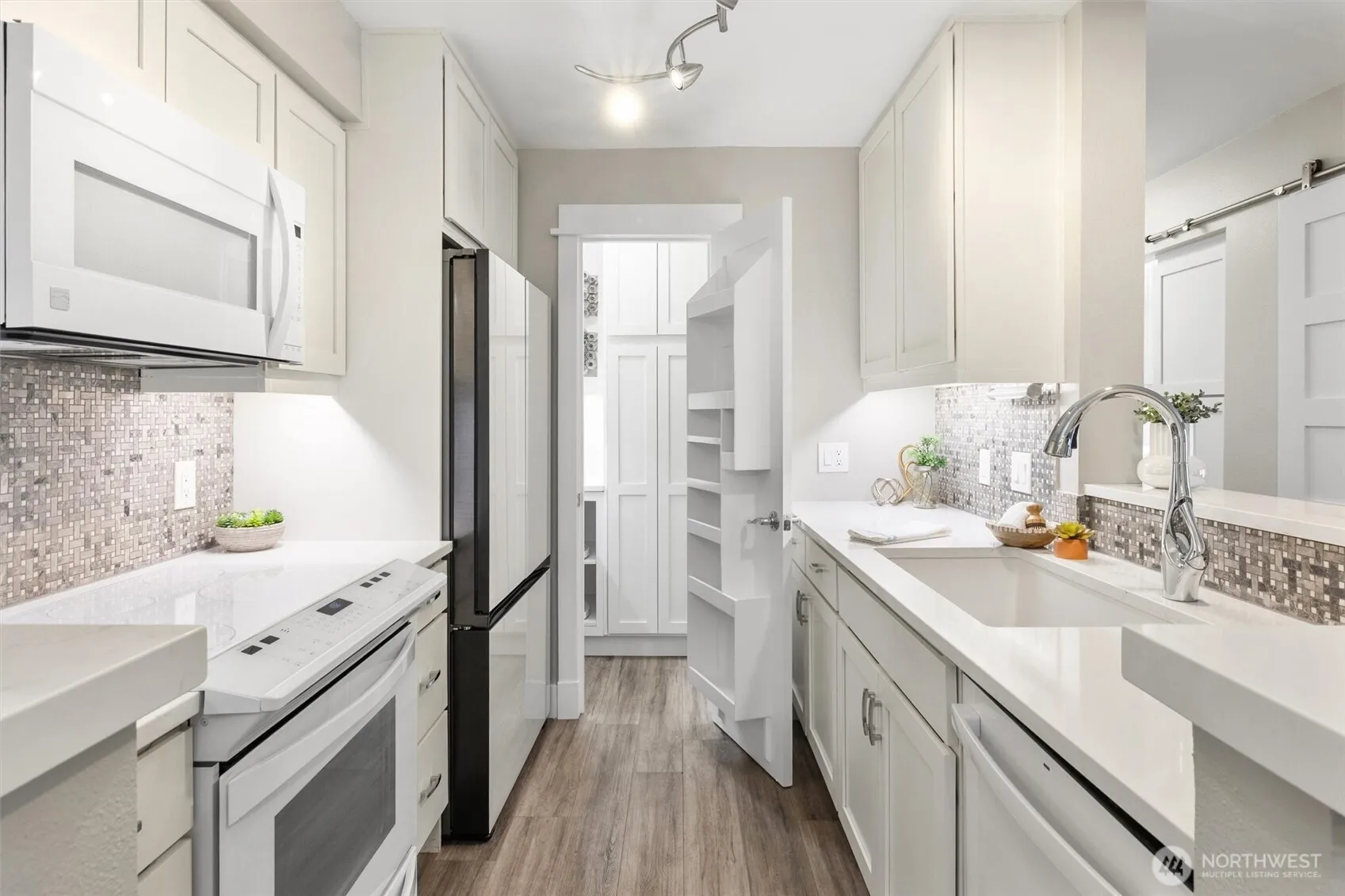 Beautifully updated ground-floor 3 bed, 1.75 bath condo in Front 9 on Harbour Pointe Blvd in Mukilteo. Located in the award-winning Mukilteo School District. This one-of-a-kind unit stands out with custom Canyon Creek cabinetry throughout, offering exceptional amount of storage beyond typical 3-bedroom layouts. Enjoy waterproof, scratch-resistant laminate flooring, fresh interior paint throughout, upgraded lighting and custom window coverings. The kitchen features a custom backsplash, new refrigerator and dishwasher, and a walk-in pantry with shelving, cabinets and workspace. Inviting living area with a stunning electric fireplace wrapped in stone tile and built in beverage refrigerator. Bathrooms include slip-resistant marble tile and updated vanities. Primary bedroom features a beautifully updated walk-in tile shower and custom walk in closet. Includes 1-car garage and 1 uncovered space. Community amenities include indoor and outdoor pools, hot tub, sports court, exercise room and more. No rental cap. This one is a must see in person!!