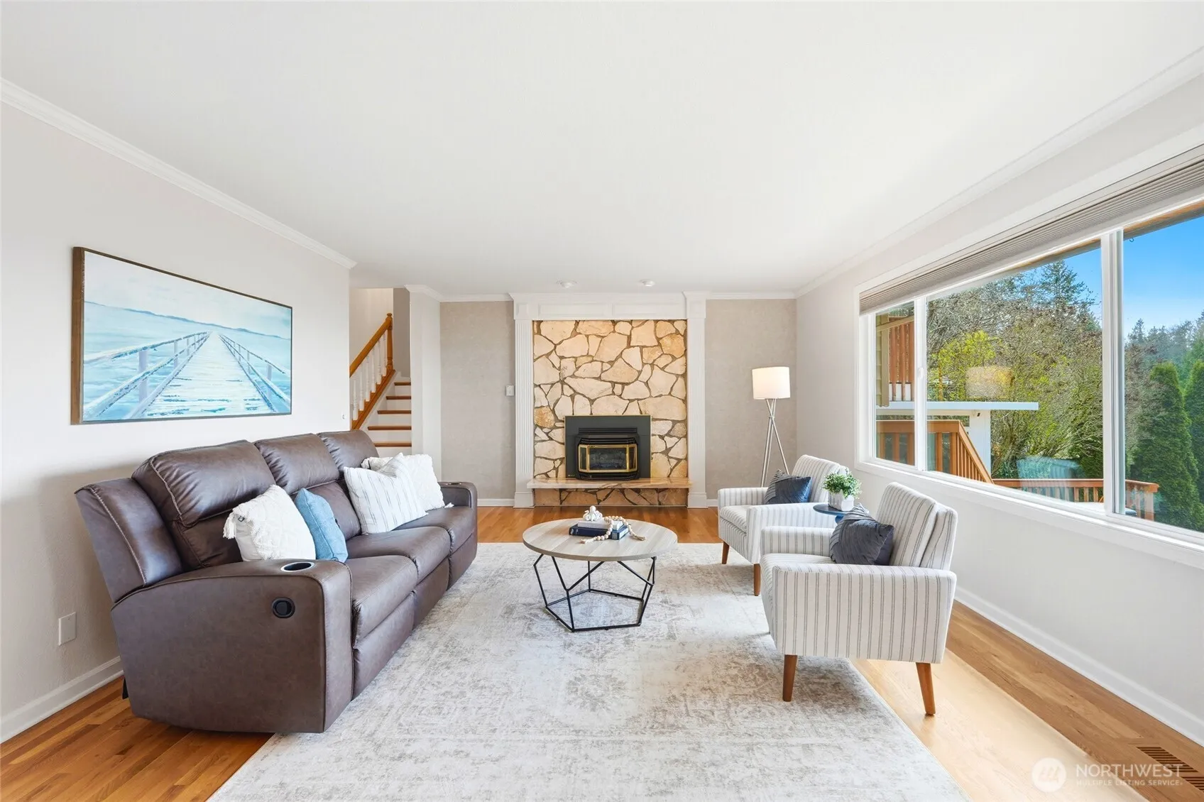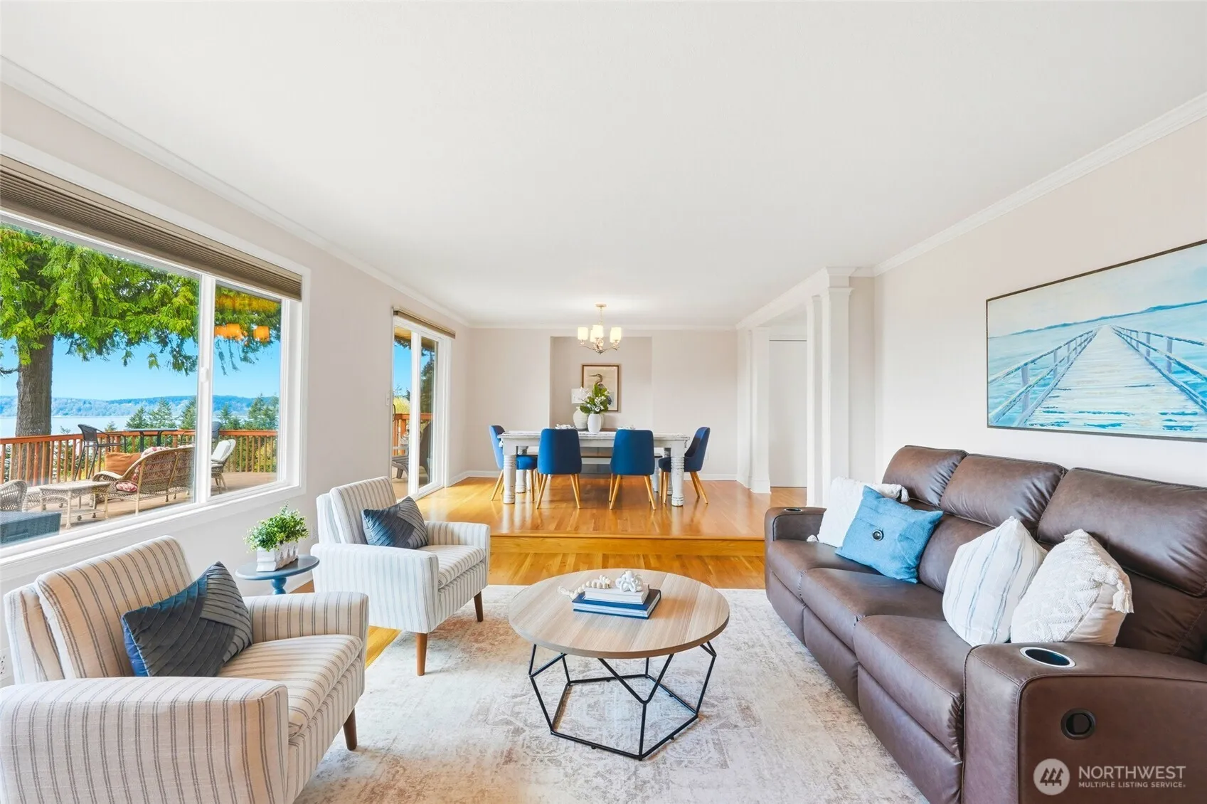 Discover a rare blend of luxury, privacy, and unforgettable Northwest beauty in this exceptional 4 bedroom, 3 bath view home set on a sprawling .76 acre lot. Tucked away on a quiet dead-end cul-de-sac in the highly sought-after Mukilteo School District, this remarkable property offers 2,356 square feet of thoughtfully designed living space framed by sweeping views of the Sound, the Olympic Mountains, and the southern tip of Whidbey Island. The beautifully updated kitchen is both stylish and functional, featuring newer cabinetry, quartz countertops, tiled backsplash, stainless appliances, gas cooktop, undermount stainless steel apron sink, and a moveable island ready for everyday living or effortless entertaining. The primary suite is a true retreat with a private bath and its own veranda deck where the views steal the show. Downstairs, a spacious second primary suite offers ideal flexibility for guests or multi-generational living, alongside a bathroom with laundry and a generous bonus room with gas fireplace and access to the attached sun room. Outdoor living shines with a multi-tiered entertainment deck, fully fenced grounds for your furry friends, large level driveway, and RV parking. A fully finished 575 sq ft garage, Presidential 50-year roof, gas furnace, gas fireplaces, gas hot water tank, pre-inspection already completed, and an incredible setting combine to create a home that is as impressive as it is inviting.
