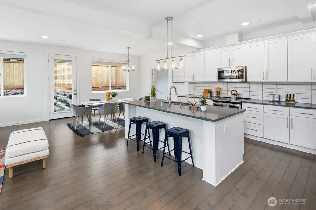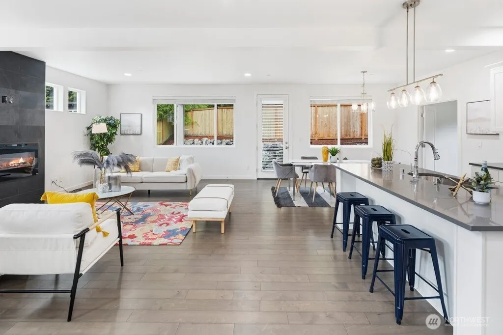 Sun-drenched, move-in ready, and bursting with thoughtful upgrades, welcome home to this stunning Built Green treasure in the heart of Gregory Heights. Five spacious bedrooms, 3.5 baths, and 3,350 sq ft of beautifully appointed living space await, featuring soaring ceilings, gleaming hardwood floors, and an open floor plan bathed in natural light. The main-level guest suite offers rare and wonderful flexibility for multigenerational living or visitors, while the upper-level primary retreat impresses with a recently updated spa-inspired bath. Brand new carpet, fresh sod, lush new landscaping, and a new dishwasher mean the hardest decision is where to put the couch. The jaw-dropping 3-car garage with vaulted 14′ ceilings will make every car enthusiast swoon, plus additional RV parking means adventure is always within reach. Efficient heat pump delivers comfort in every season. Solar and EV ready. Fully fenced backyard perfect for summer evenings and four-legged friends. Moments from Three Tree Point beaches, PCC, and Trader Joe’s. And the crown jewel, an assumable 2.75% VA loan, a rare financial advantage in today’s rate environment.