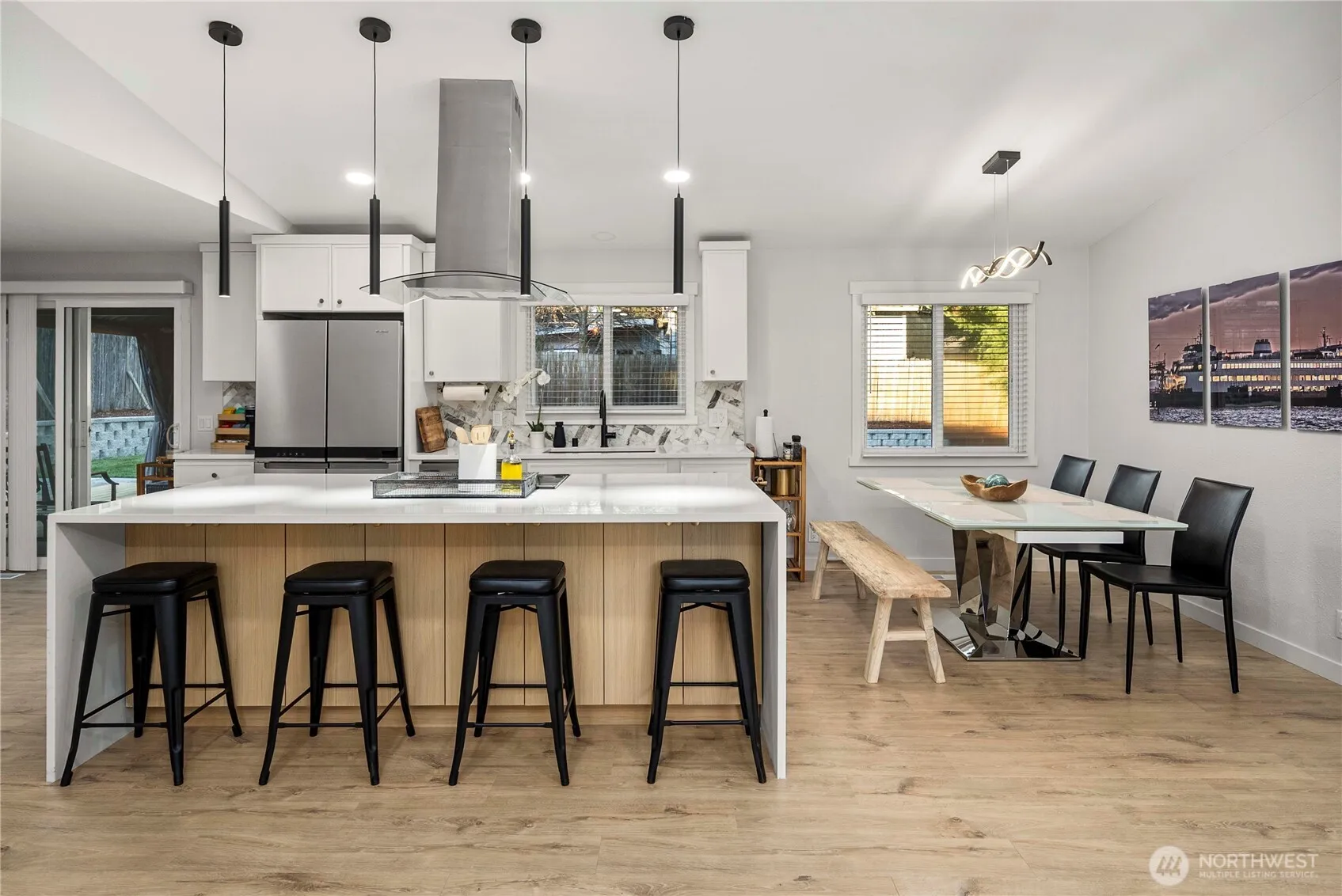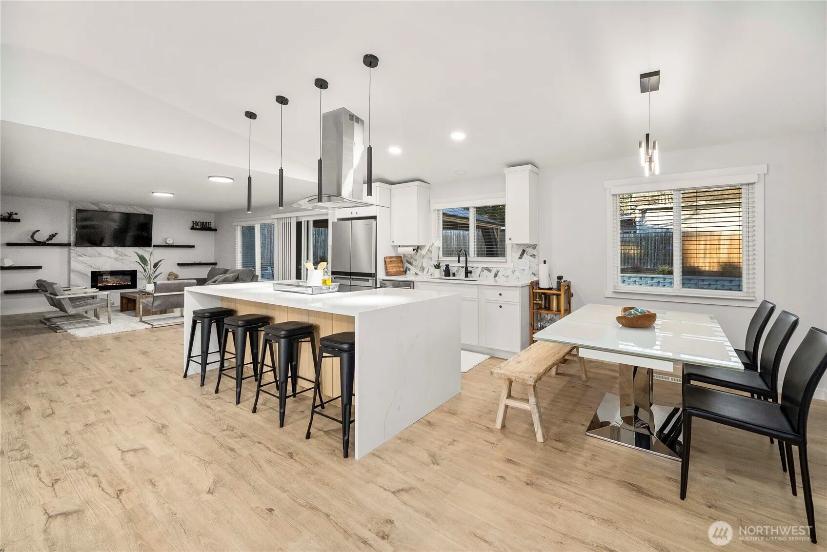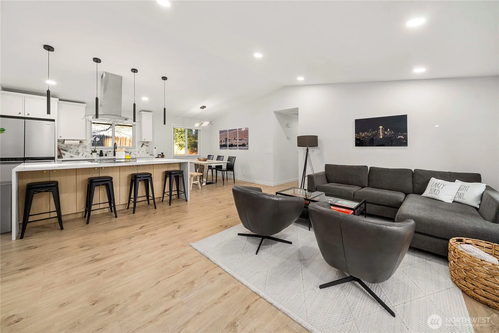 Welcome to this beautifully designed 3 bedroom, 2 bath home nestled in the heart of Burien. Enjoy no stairs for access and walk into a open floor plan, light-filled living areas, completely remodeled home with tasteful color schemes throughout. Step outside to a large custom patio overlooking the stunning redesigned backyard—perfect for entertaining or gardening. The generous lot offers privacy and room to garden or play with additional parking out front for an RV and/or boat. Just minutes from the freeway entrance, Downtown Seattle, Downtown Burien, South Center Mall, and SeaTac Airport. This home combines convenience with true neighborhood charm. A opportunity to own in one of the South Sound’s prime location! Updates include – New Roof, Countertops, Custom Cabinets, Custom Tile, Interior/Exterior Paint, Siding, Flooring.