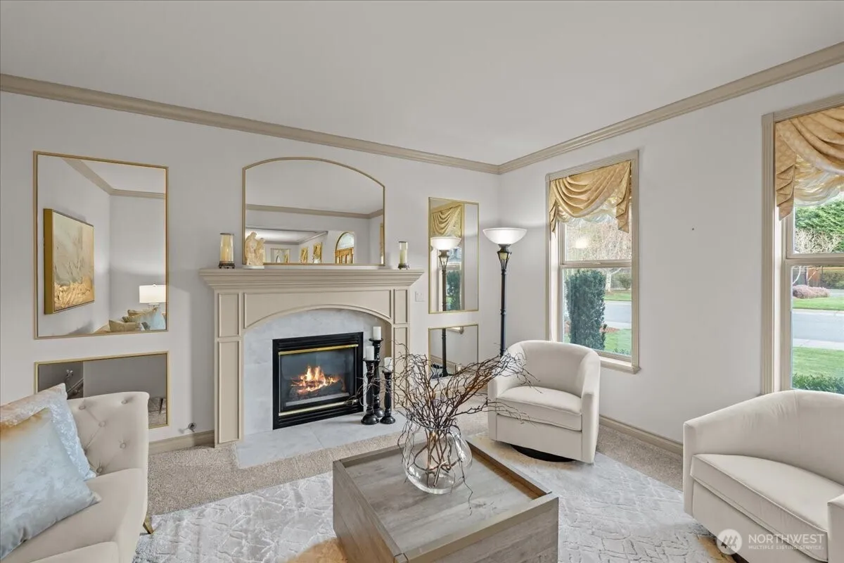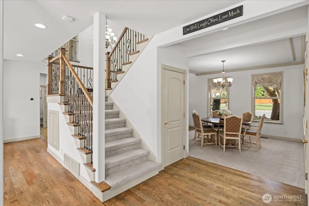 Ideally located in the desirable GOLD CREEK community an east facing grand entry welcomes you. This beautifully updated custom home offers a versatile floor plan creating a warm inviting atmosphere. Extensive hardwoods flow to the stunning remodeled kitchen with an abundance of cabinets featuring granite counters, upgraded appliances, designer lighting & an 11′ x 5′ center island – blending style & function. The open concept family room is enhanced by large west facing windows & floor to ceiling custom cabinetry. Rounding out the main level are formal living & dining rooms plus a private office with fireplace — ideal for either a media or game room. Upstairs are four spacious secondary bedrooms (one with an en-suite) a laundry room & three quarter bath. The luxurious primary suite doubles as a retreat with its own sitting area & fireplace – the private spa-inspired bath has a heated tile floor, a freestanding tub, double sized shower & enormous walk in closet. The 3 car garage features professional grade amenities – perfect for the hobbyist. A private staircase off the main floor hall leads to a standing height crawl space of over 500 sq ft. Beautiful backyard is fenced with an entertaining size patio & covered area. The Gold Creek community offers parks, playfields, sport courts, & greenbelt walking trails. Only minutes to Willis Tucker County Park; plus a short jaunt to Mill Creek Town Center shopping or historic downtown Snohomish. This home is an exceptional property.