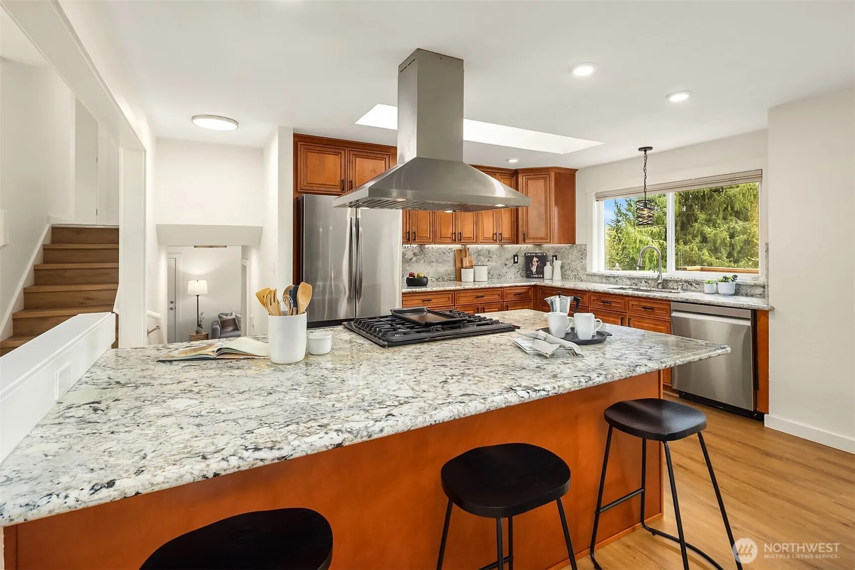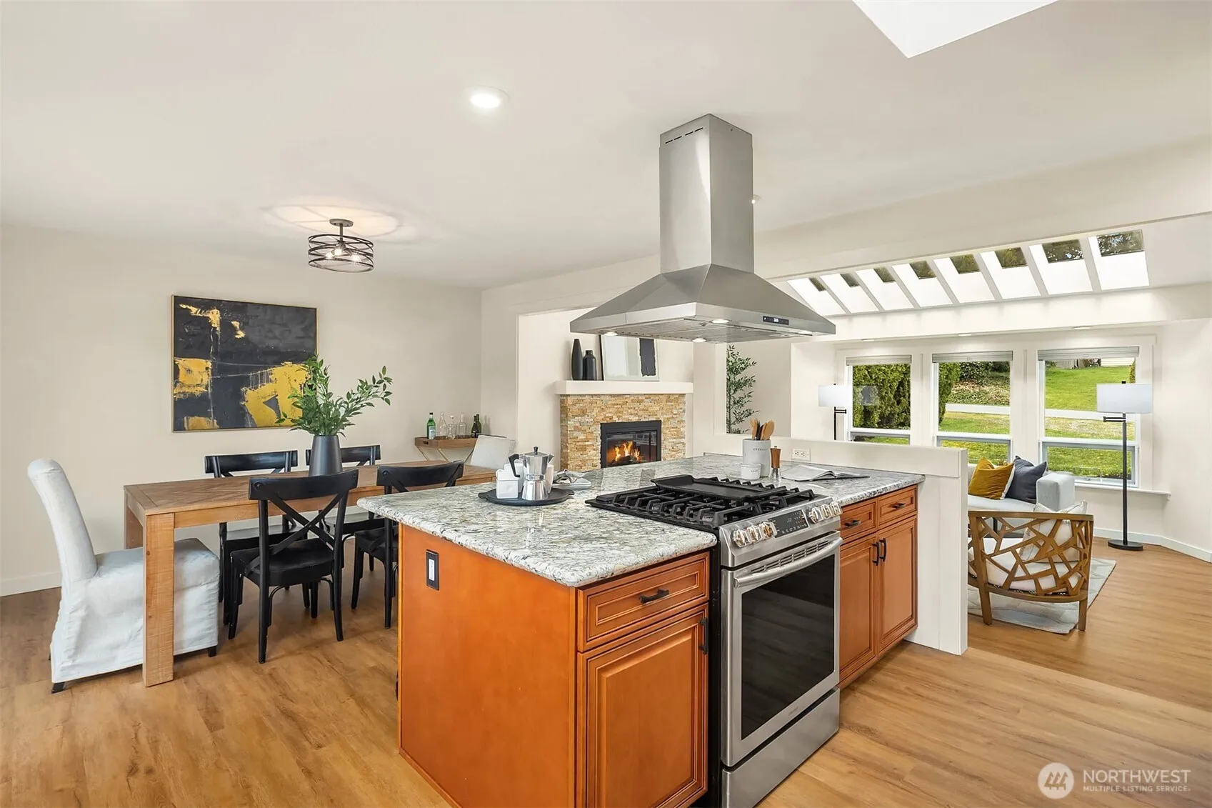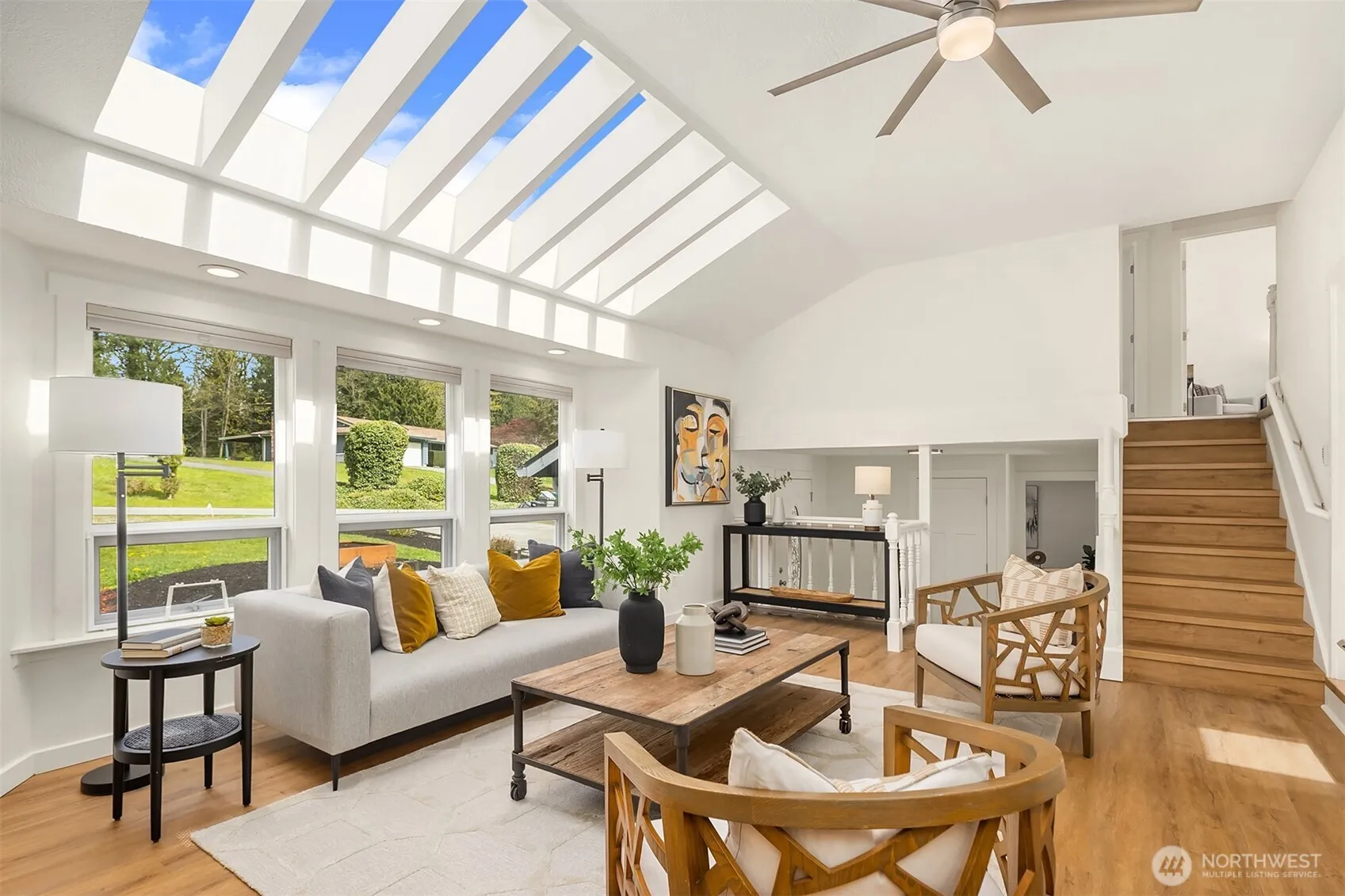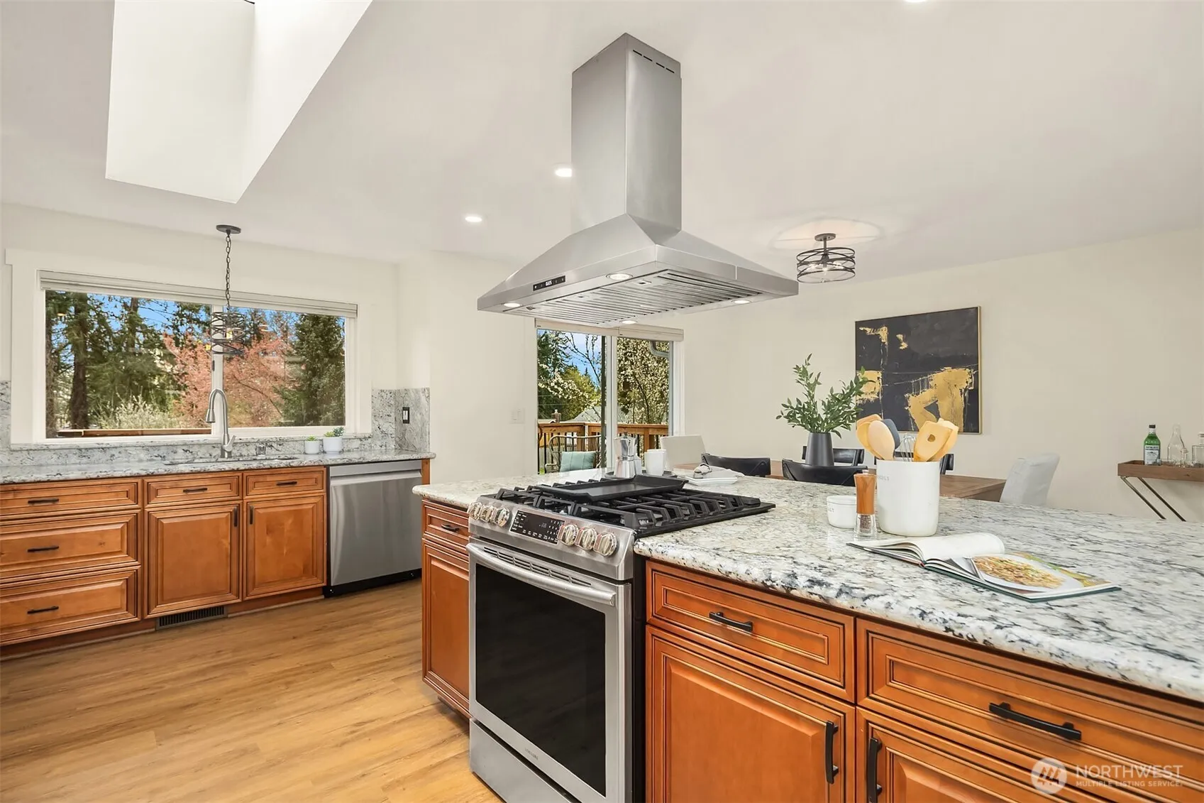 Nothing to do but move in — welcome to desirable Robinhood. This beautifully updated home checks every box: every major system upgraded, every surface refreshed, all sitting on nearly half an acre with the outdoor space to match.Step inside to soaring vaulted ceilings, skylights flooding the living room with natural light, and brand-new laminate flooring, carpet, and interior paint — all completed in 2026. The open kitchen is built for real cooking and easy entertaining, anchored by a 5-burner gas range, new refrigerator and dishwasher, and stainless steel appliances throughout. A slider off the dining area opens to a massive wraparound deck with a hot tub–reinforced section — the ideal backdrop for summer evenings.The fully fenced backyard feels like a private retreat: fruit trees, raised garden beds, and a charming 2-story barn-style shed ready for storage, hobbies, or play. Flexible main-level space works as an office or bedroom, with three bedrooms upstairs including a primary suite with attached ¾ bath.The big stuff? All done. Roof, gutters, and deck (2022). Central A/C and many new windows (2021). New water heater (2025). New electrical panel (2019). Furnace (2018). New insulation in the crawl space and attic (2026). Attached 2-car garage, ample driveway parking, and room for an RV or boat.Conveniently located between Snohomish and Monroe — the best of both.