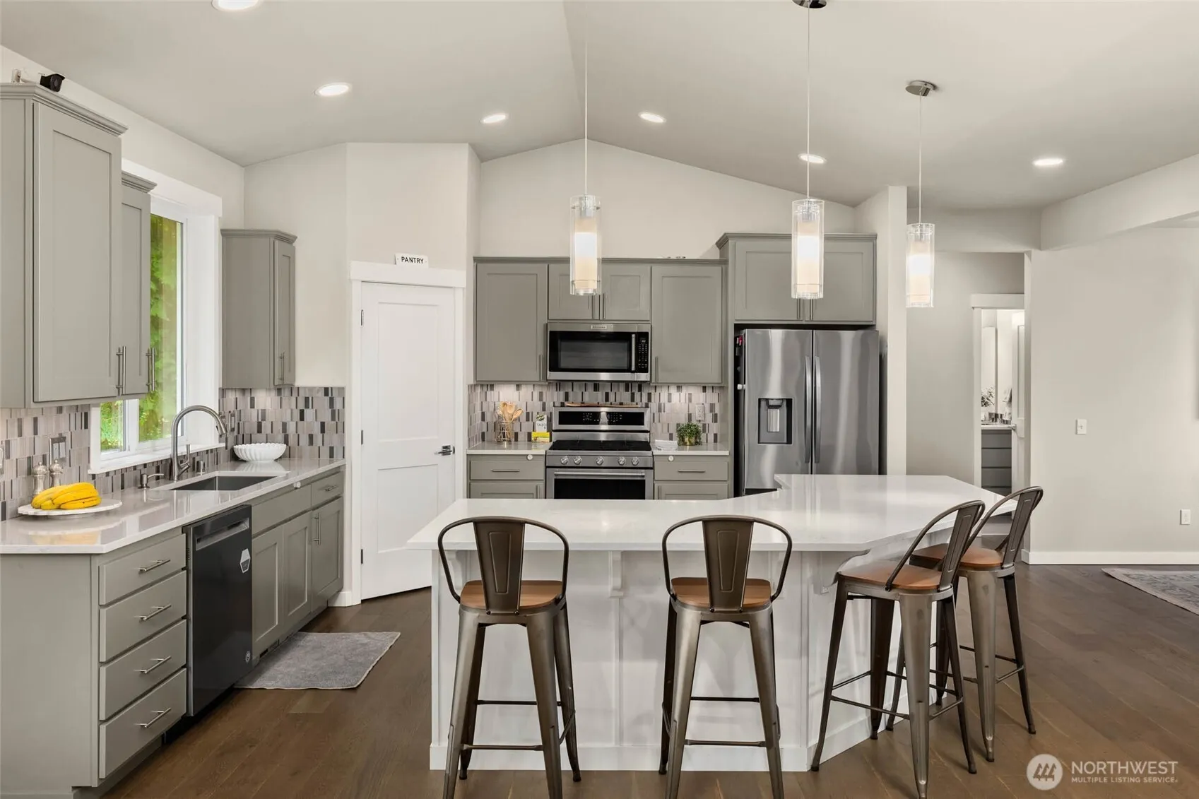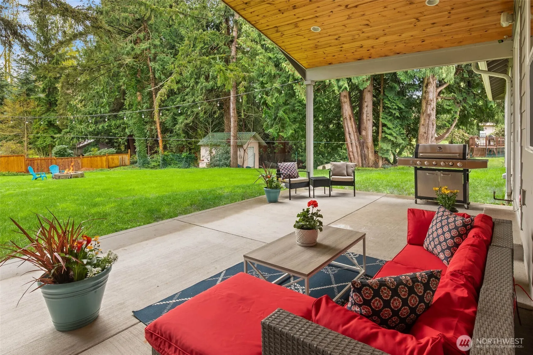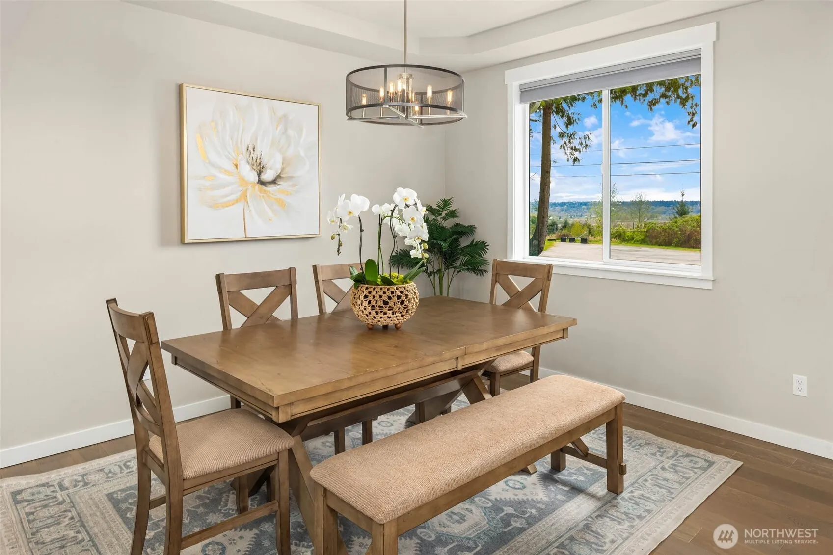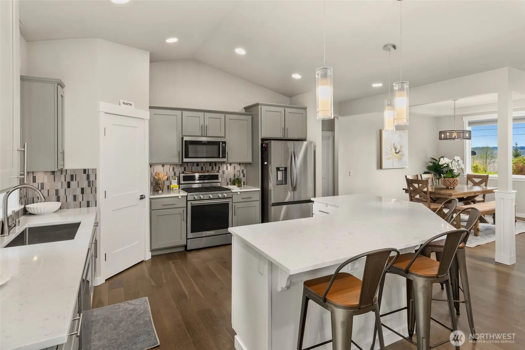 Beautiful newer construction rambler with 4 beds + office and bonus media room situated on a spacious half-acre lot, offering the perfect blend of comfort, privacy, and Northwest charm. This thoughtfully designed home features four large bedrooms, including a luxurious primary suite with a soaking tub, separate shower, expansive closet, and private access to the back patio overlooking the generous backyard.The open-concept living space is filled with natural light and showcases beautiful hardwood floors, a cozy fireplace with custom built-ins, and soaring vaulted ceilings. The dining area is perfectly positioned to take in scenic views of the Olympic Mountains and Snohomish Valley. The spacious kitchen flows seamlessly into the living area and opens to a covered patio—ideal for year-round entertaining. Additional highlights include a dedicated office, a large media room off the main level, and a three-car attached garage with plenty of extra parking. Located on a quiet dead-end street for added privacy, yet just minutes from downtown Snohomish and convenient freeway access.