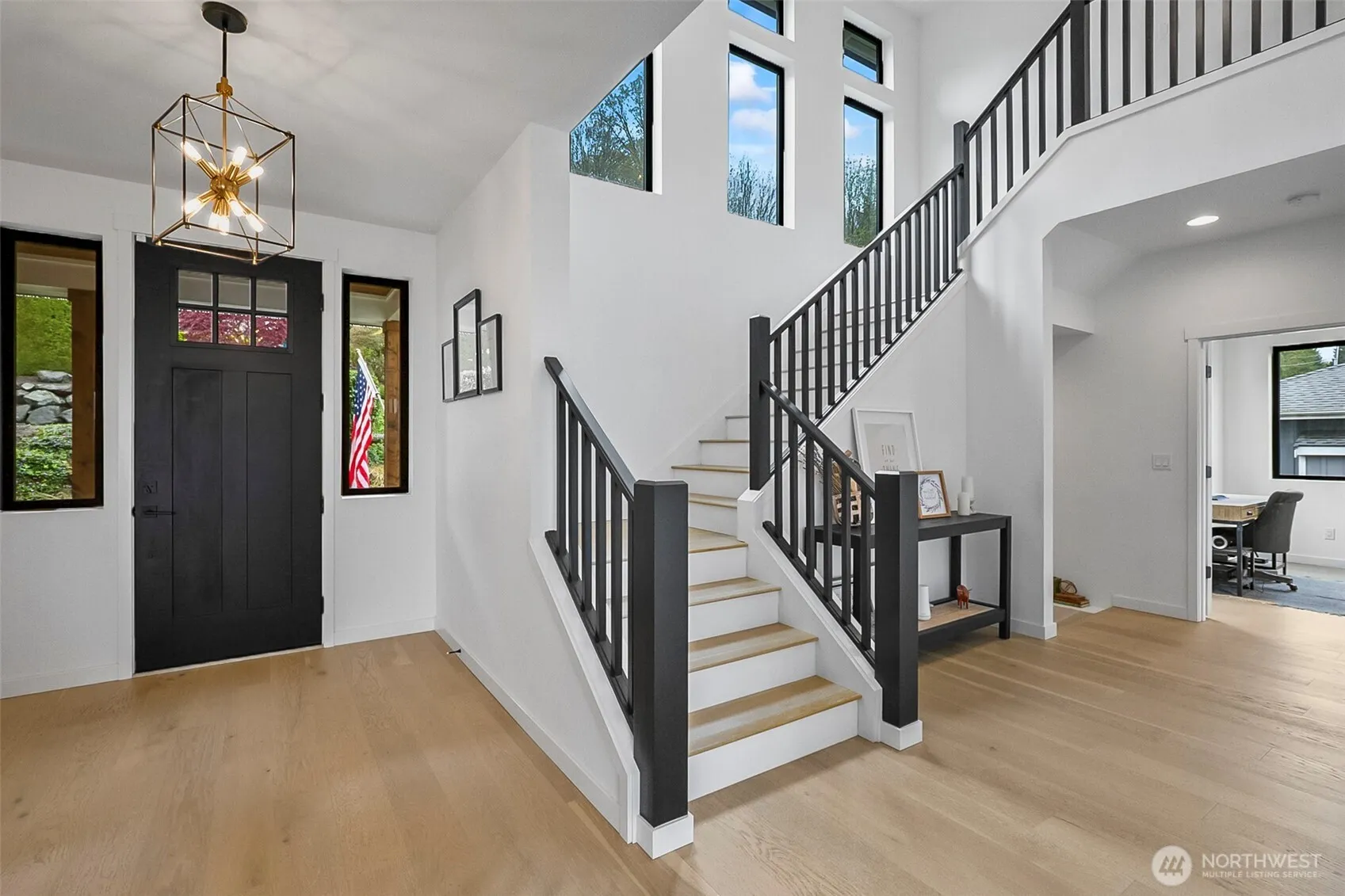 This stunning Sound and Mountain View Mukilteo custom built 5 year old home is a must see. Incredible Water and Sound Views. Watch the ferry from your living room or whale watching from your Sun Deck. This home offers 4-spacious bedrooms, 3.25 bathrooms, 3,904 living space, a gym with special rubber floorings, A versatile den/office ideal for remote work or quiet study. Elegant flooring flows seamlessly throughout, while an abundance of windows fills the home with natural light, creating a bright and inviting atmosphere. The open-concept great room and kitchen are designed for both everyday living and entertaining, showcasing custom cabinetry, sleek stainless steel appliances, a large center island, floating shelves, and beautiful quartz countertops. A cozy gas fireplace with a custom surround and classic wood mantel anchors the great room, complemented by modern black railings that add a sophisticated touch. The luxurious primary suite provides a relaxing retreat with a spa-inspired bathroom featuring a soaking tub, a tile shower with dual showerheads, and a spacious walk-in closet. Downstairs, enjoy a fully finished lower level complete with a bedroom, rec-room, and full bath—perfect for guests or multi-generational living. A bonus room includes a projector & screen, creating the ultimate home theater experience. The 3-car garage offers ample storage and parking. Step outside to a large deck designed for outdoor entertaining, gatherings, or simply unwind in comfort.