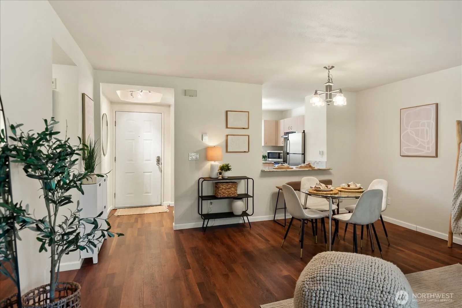 Welcome to this charming ground-level condo in desirable Mukilteo! The inviting living room offers a warm, comfortable atmosphere with a cozy fireplace and direct access to the back patio. The kitchen features stainless steel appliances and a convenient serving peninsula, providing ample counter space for both everyday living and easy entertaining. Beautiful LVP flooring throughout the main living spaces. The bedroom has nice carpet and built-in closet storage. The bathroom offers an oversized vanity with generous counter space and a walk-in shower. Additional highlights include a newer and full sized in-unit washer and dryer with extra storage on the patio, and COVERED parking! This 1 bedroom unit is larger than the other 1 bedroom units in the complex, and you will feel the spacious difference! This is a convenient location near schools, shopping, and dining. No rental cap!
