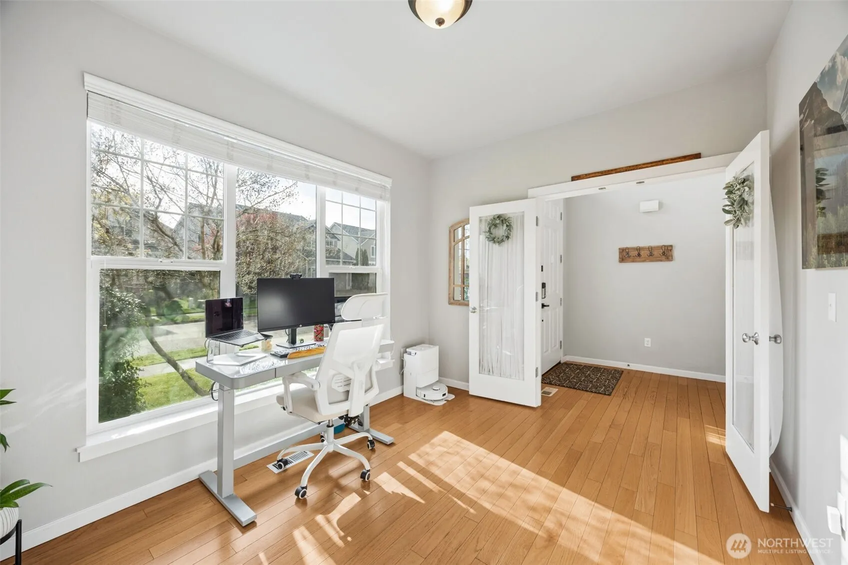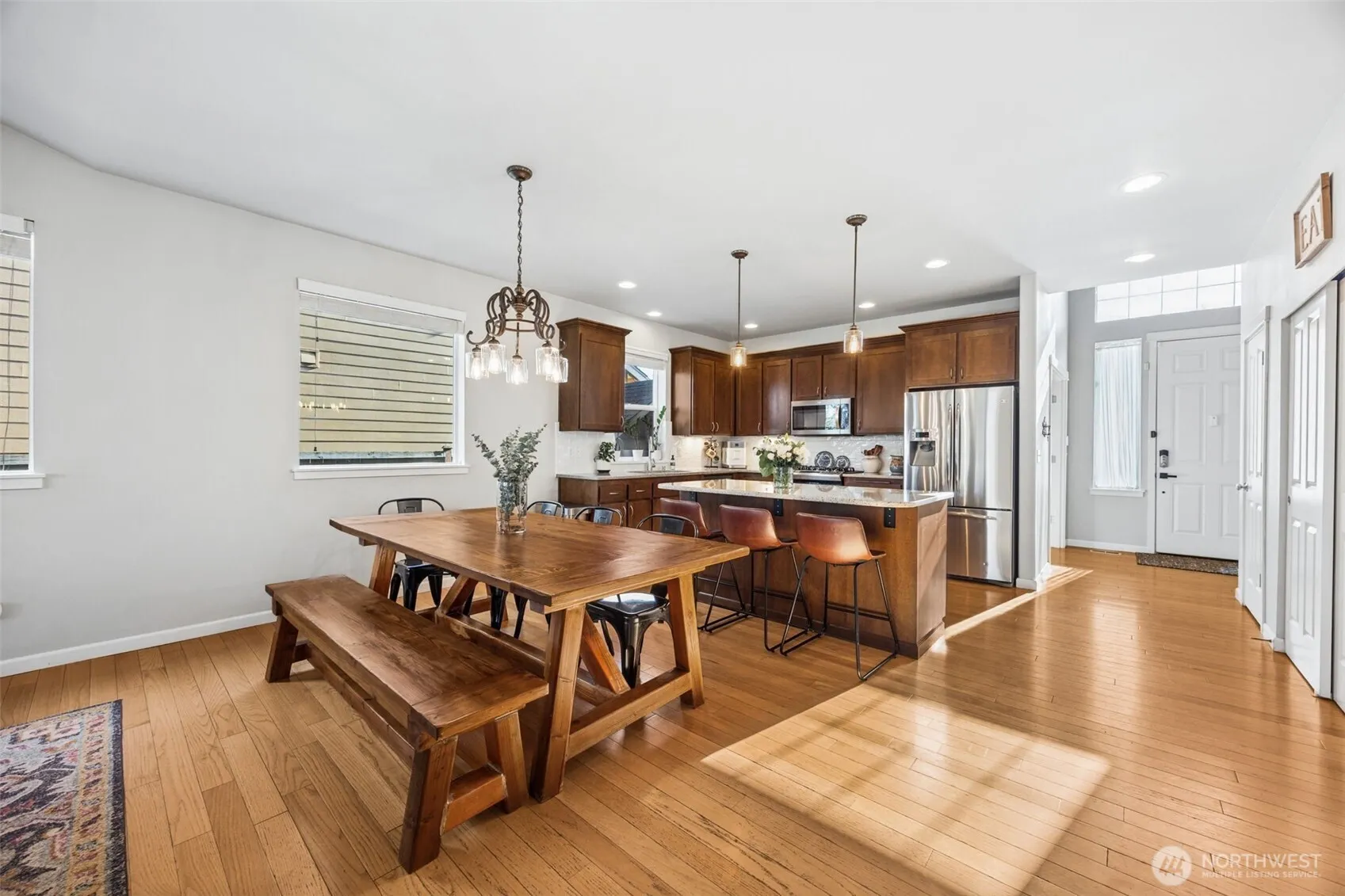 Spacious & meticulous 4 bedroom home including main floor primary suite sits right at 2300 sq ft. Thoughtful designed home features spacious kitchen with tons of counterspace, island with breakfast bar, granite countertops w/ full tile backsplash, stainless steel appliances including gas stove & dining room area. The bright open floorplan maximizes natural light, perfect for relaxing & entertaining. Additional features for this home include: new interior & exterior painting, new carpeting, new lighting, new tankless hot water tank, air conditioning, hardwood floors, gas fireplace, main floor office and hot tub. With four generous bedrooms & 2.5 baths, including primary suite on the main level, this home offers comfort & privacy. Upstairs find 3 other spacious bedrooms – one of the largest bedrooms upstairs could be used as a bonus room, private sanctuary, gym, home theater, you name it. Backs up and overlooks the serene pond for privacy, fully fenced, large covered composite deck & low maintenance yard. Easy commute to JBLM and all the shopping, restaurants & stores you can imagine!